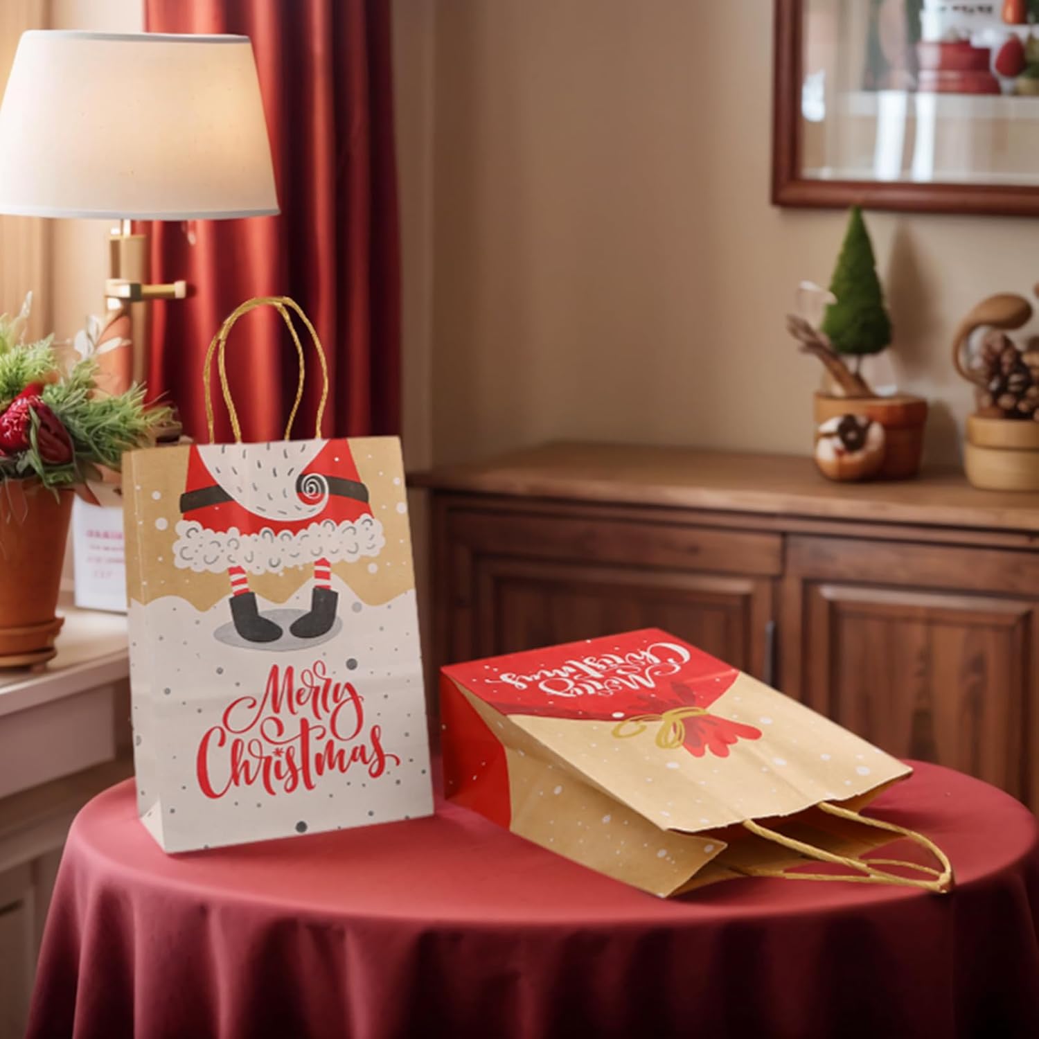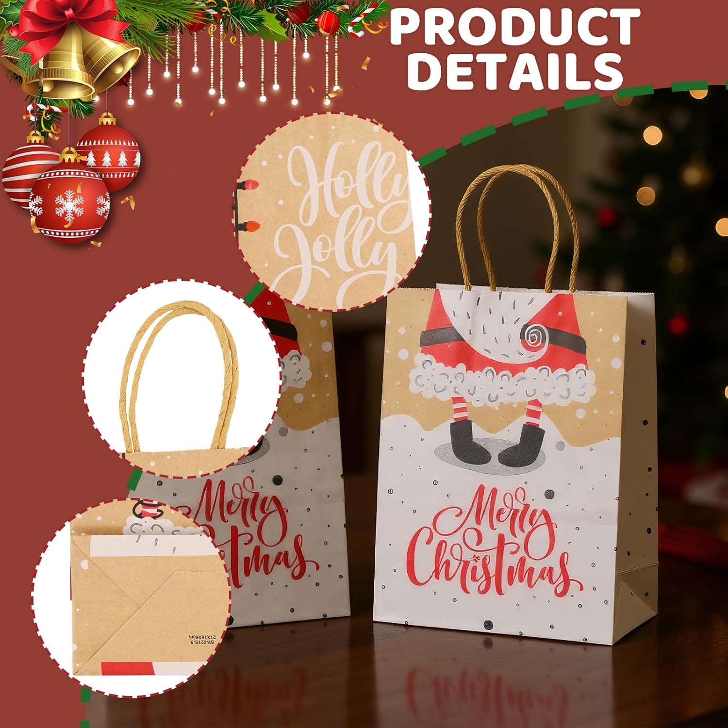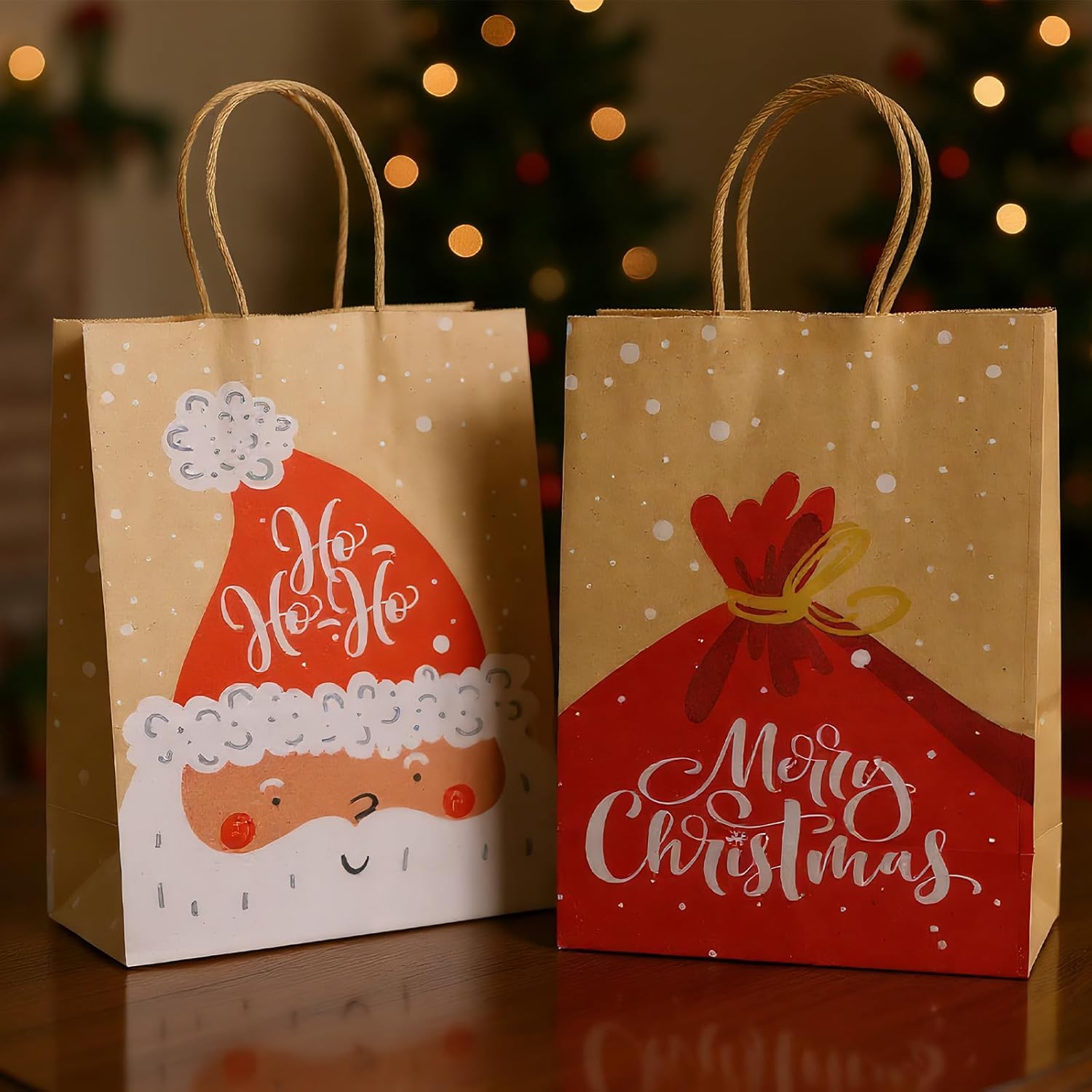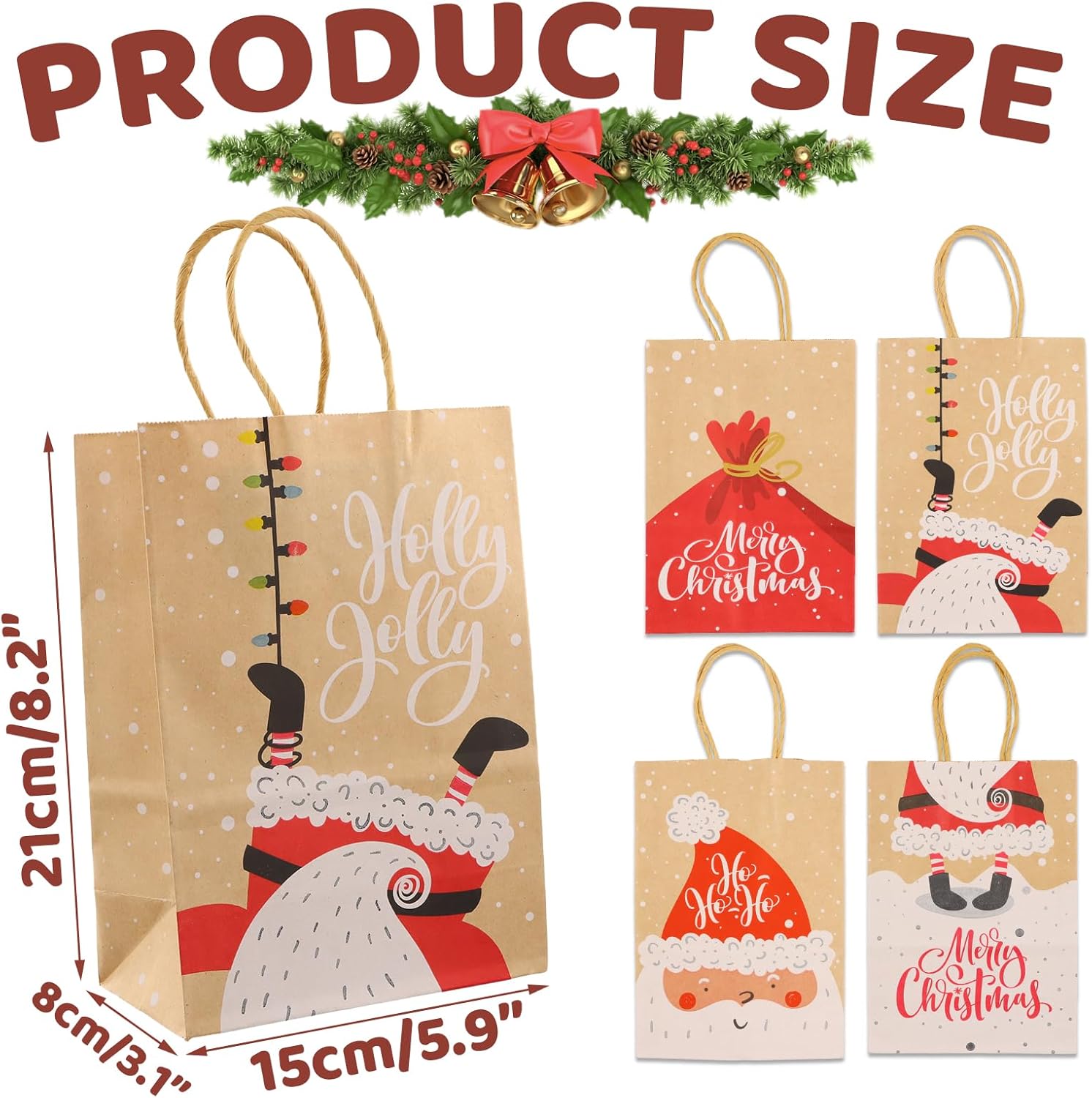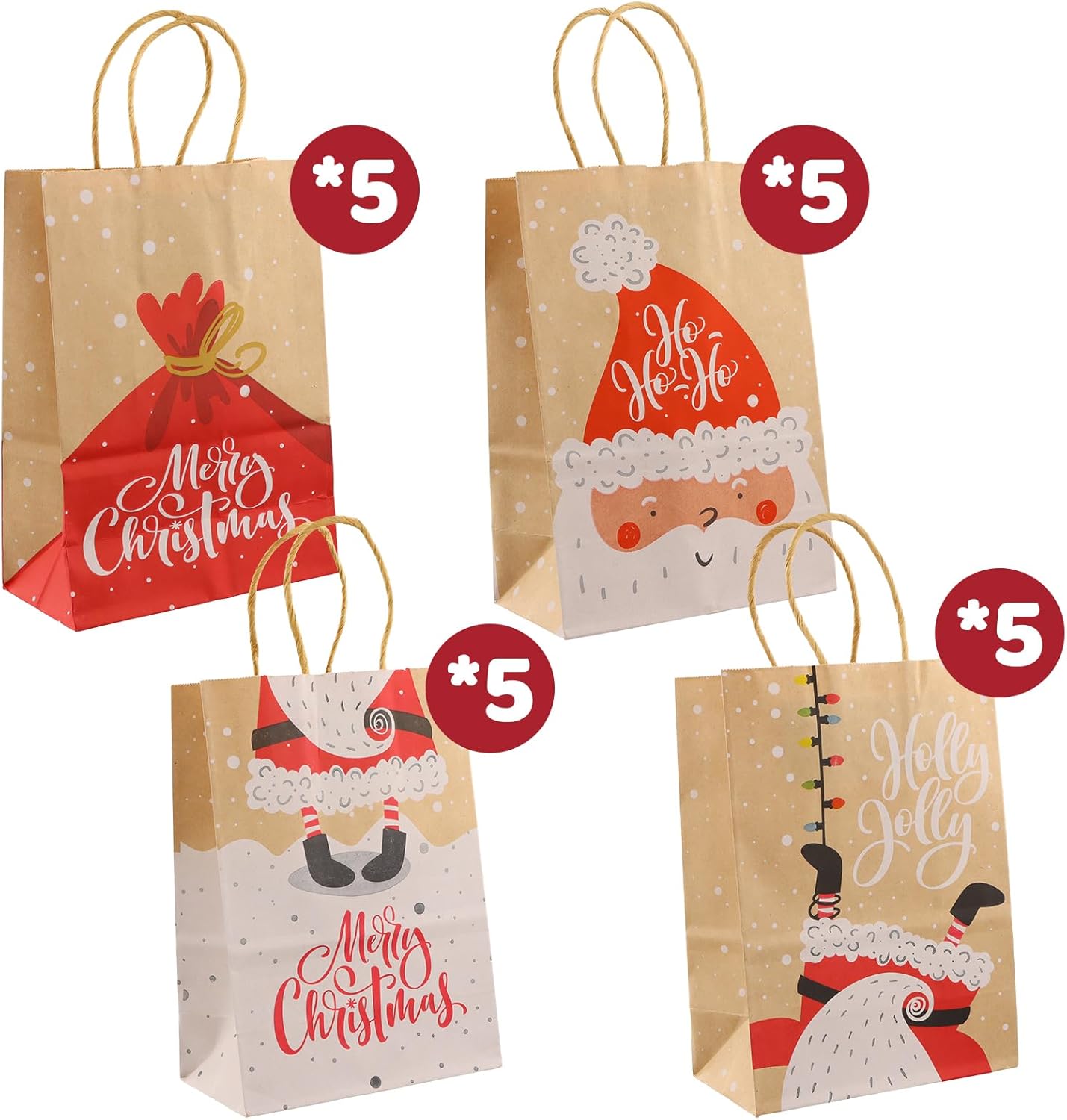 Uso versatile: questi sacchetti regalo di Natale sono perfetti per tutte le tue occasioni festive, che si tratti di feste di Natale, confezioni regalo o decorazioni eleganti. Quattro bellissimi motivi: il set contiene 20 sacchetti in quattro diversi motivi natalizi disegnati con amore che danno alla tua festa un tocco speciale. MATERIALE DI ALTA QUALITÀ: Realizzate in robusta carta kraft, queste borse sono resistenti ed ecologiche, ideali per molteplici usi. Dimensioni pratiche: con dimensioni di 15 x 8 x 21 cm, queste borse offrono spazio sufficiente per regali di varie dimensioni e sono facili da trasportare grazie alle robuste maniglie. Atmosfera festosa: i design luminosi e festosi di questi sacchetti regalo aggiungono spirito natalizio e lasciano un'impressione duratura sui tuoi ospiti.
