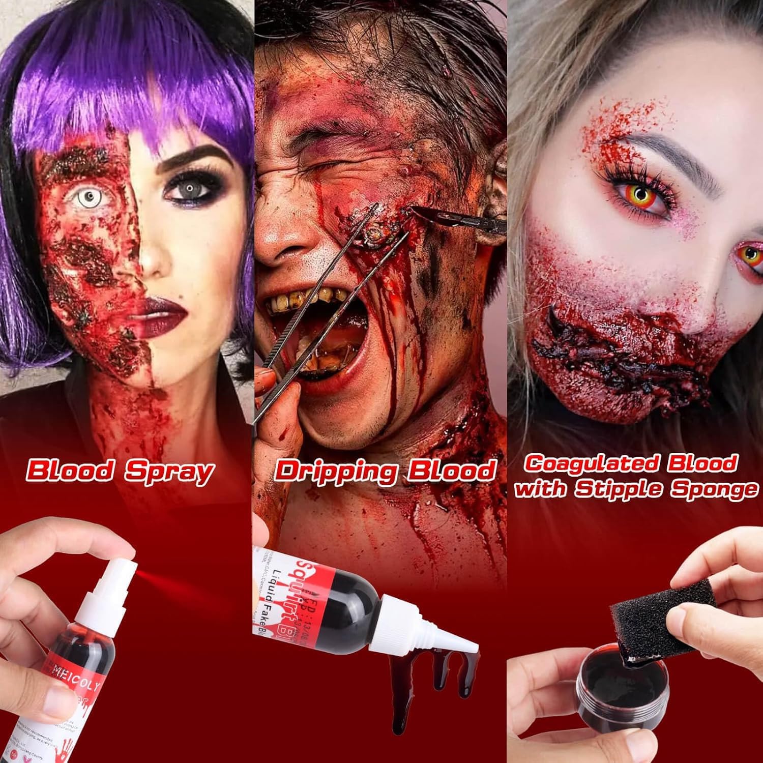 Set completo di sangue artificiale: include 60 ml x 2 sangue artificiale, 30 g di finto gel sangue, 1 benda Materiali di sicurezza: i nostri prodotti per la sintesi del sangue sono realizzati con materiali per il trucco atossici e resistenti alle allergie, delicati sulla pelle. 【Facile da usare】 Applica la punta in dotazione e puoi semplicemente spremere il sangue artificiale per ottenere un effetto sanguigno che scorre liberamente. Applicare sulla pelle con una punta delle dita per creare abrasioni e una struttura realistica della ferita. 【Facile da rimuovere】: il sangue artificiale si rimuove facilmente con sapone o acqua tiepida, i vestiti possono essere facilmente lavati in acqua tiepida e sapone. Molte occasioni: il nostro sangue artificiale è perfetto per Halloween, può essere utilizzato anche in altre scene, come cosplay, costumi da zombi, pagliacci, costumi, carnevale o scherzi quotidiani, ti aiuta a creare un effetto sanguinante e terribile.