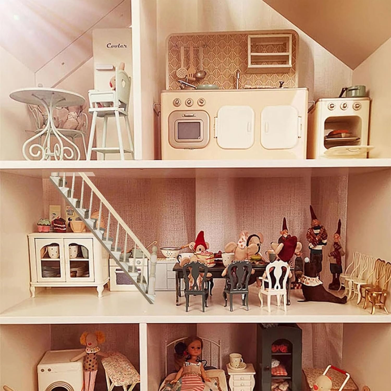 Si abbina perfettamente a scene di camere da letto in miniatura o interni in stile vittoriano, migliorando l'autenticità nelle configurazioni dei modelli in scala 1/12 Realizzate con materiali in legno naturale, queste scale in legno non finite forniscono un potenziale di tela per la pittura garantendo al contempo una durata sicura per i bambini Il design staccabile con ringhiere classiche, offre un layout flessibile per gli appassionati di case delle bambole Set di scale per case delle bambole in scala 1/12 (2 pezzi) realizzato in legno con finitura bianca autentica per una maggiore longevità in display in miniatura Ideale per collezionisti in miniatura, hobbisti e genitori che cercano un giocattolo sicuro per giocare creativo con i bambini