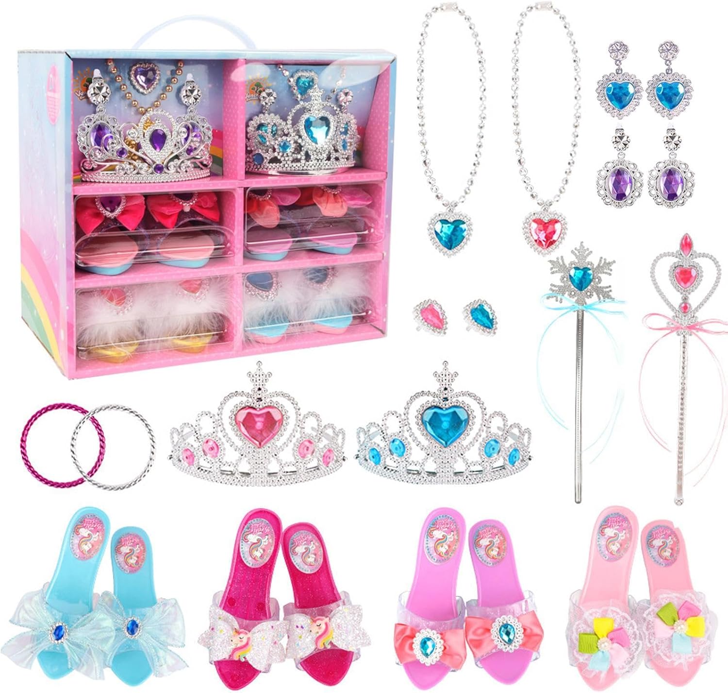 Accessori colorati: il gioco di giochi Princess Shoes crea un'atmosfera romantica per i tuoi preferiti con molti contenuti. Ad esempio, 4 paia di scarpe da principessa, 3 corone, 2 bacchette, 2 collane, 2 anelli, ecc. Materiale confortevole: le scarpe disgusto principessa sono realizzate in PP e tessuto a maglia, un aspetto liscio e non rispettoso, quindi non danneggiano la pelle di. La sua vita di servizio incontra la freschezza del gioco. Realizza le scarpe Princess Dream: Girls Dress Up ha tipi diversi, non solo scarpe da principessa ma anche altri gioielli Princess, che possono aiutare le bambine a realizzare il loro desiderio di diventare una principessa. Imparare buone qualità: la bambina gioca i tacchi alti può essere un buon aiuto per i genitori, puoi usarlo per coltivare le abitudini di conservazione e smistamento e imparare le buone qualità delle principesse. Bel regalo: un regalo per ragazze, il nostro set di tacchi da principessa è il miglior regalo per la principessa cosplay, feste di ragazze, feste di vestire, feste di compleanno, Natale o qualsiasi altro festival.