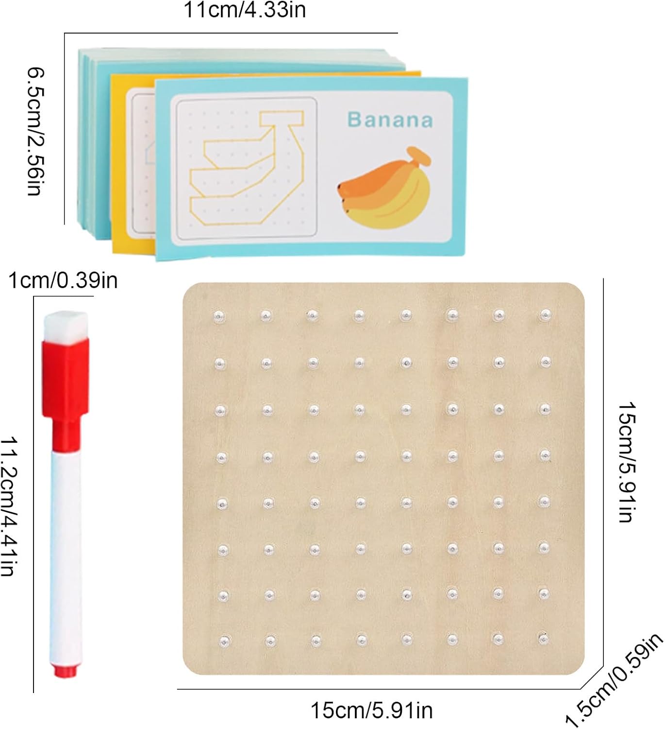 【Robusto e durevole】 64 chiodi rotondi incorporati non danneggiano facilmente le dita dei bambini. Il cinturino in gomma è abbastanza resistente da essere sicuro da toccare. Le carte hanno gli angoli arrotondati. Geo Boards For Classroom Dai un gioco completo all'immaginazione di tuo figlio in tutta sicurezza. 【Pratica delle abilità motorie fini】 Costruisci forme diverse sulla tavola geometrica in base alle carte , Geoboards With Rubber Bands è una grande opportunità per i bambini per promuovere le capacità motorie e la coordinazione occhio-mano 【Giocattoli per la prima educazione】Poiché Geo Board Set può costruire abilità di differenza di colore e dimensioni nelle forme e aiutare i bambini a imparare a modellare e colorare, questo è un giocattolo per la prima educazione adatto a bambini di età compresa tra 3 e 6 anni, 【Informazioni sulle forme geometriche astratte】 TheRubber Band Board è progettato per avere forme geometriche astratte davanti e dietro. La giustapposizione deliberata aiuta i bambini a sviluppare il pensiero geometrico astratto 【Funzioni multiple】 Oltre all'apprendimento della geometria in età prescolare, una varietà di oggetti diversi di Geoboard in legno può anche aiutare i bambini a imparare il vocabolario di oggetti di uso quotidiano, come animali, veicoli, verdure, ecc., Quindi questo è strumento di apprendimento versatile