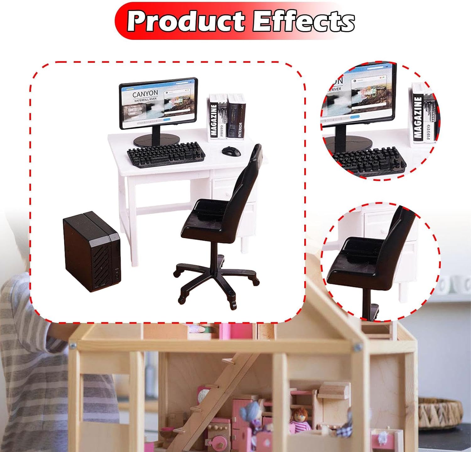 . Multiuso: i giocattoli da tavolo da gioco in miniatura sono adatti per giocattoli paesaggistici sandbox, modellini ferroviari, modelli architettonici, giardini fatati, micro paesaggi, modelli di scene fai-da-te. . 【Fai da te per divertimento】Il modello di mini sedia da scrivania può essere combinato in diverse scene per, tavolino da caffè e giardino fatato come preferisci. . 【Materiale】 Tutti i modelli di mobili in miniatura sono realizzati con materiali di alta qualità e consentono layout creativi delle stanze e giochi fantasiosi. 【Dettaglio elevato】: modello in miniatura in scala 1:12 della sedia da scrivania del computer ricco di dettagli, che aggiunge un tocco realistico alla scena del micro paesaggio. 【Supporto per la decorazione della sala studio】 Set di mini sedie da scrivania. Include un modello di computer, un modello di scrivania, un modello di sedia, una cartella di file e un modello di tastiera.