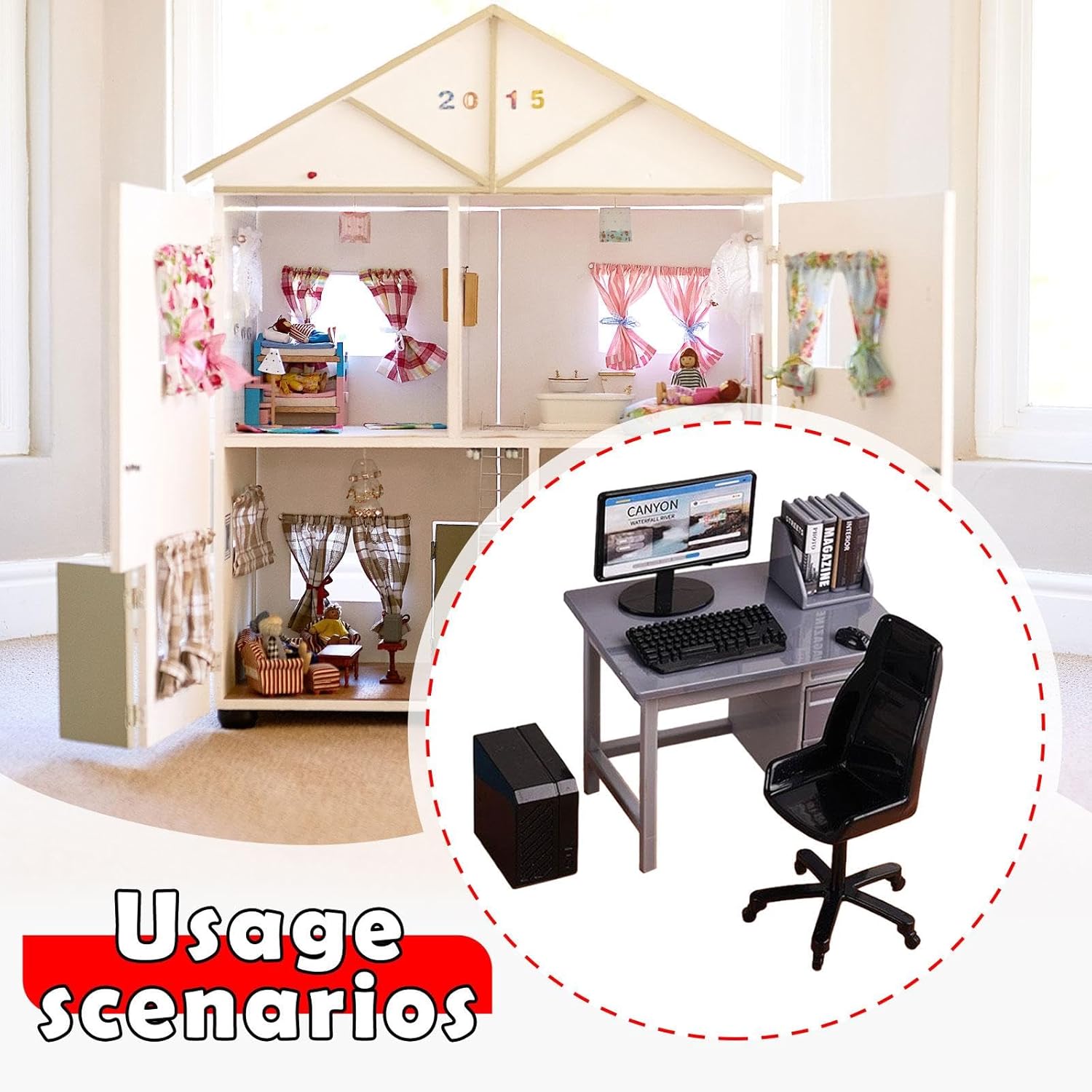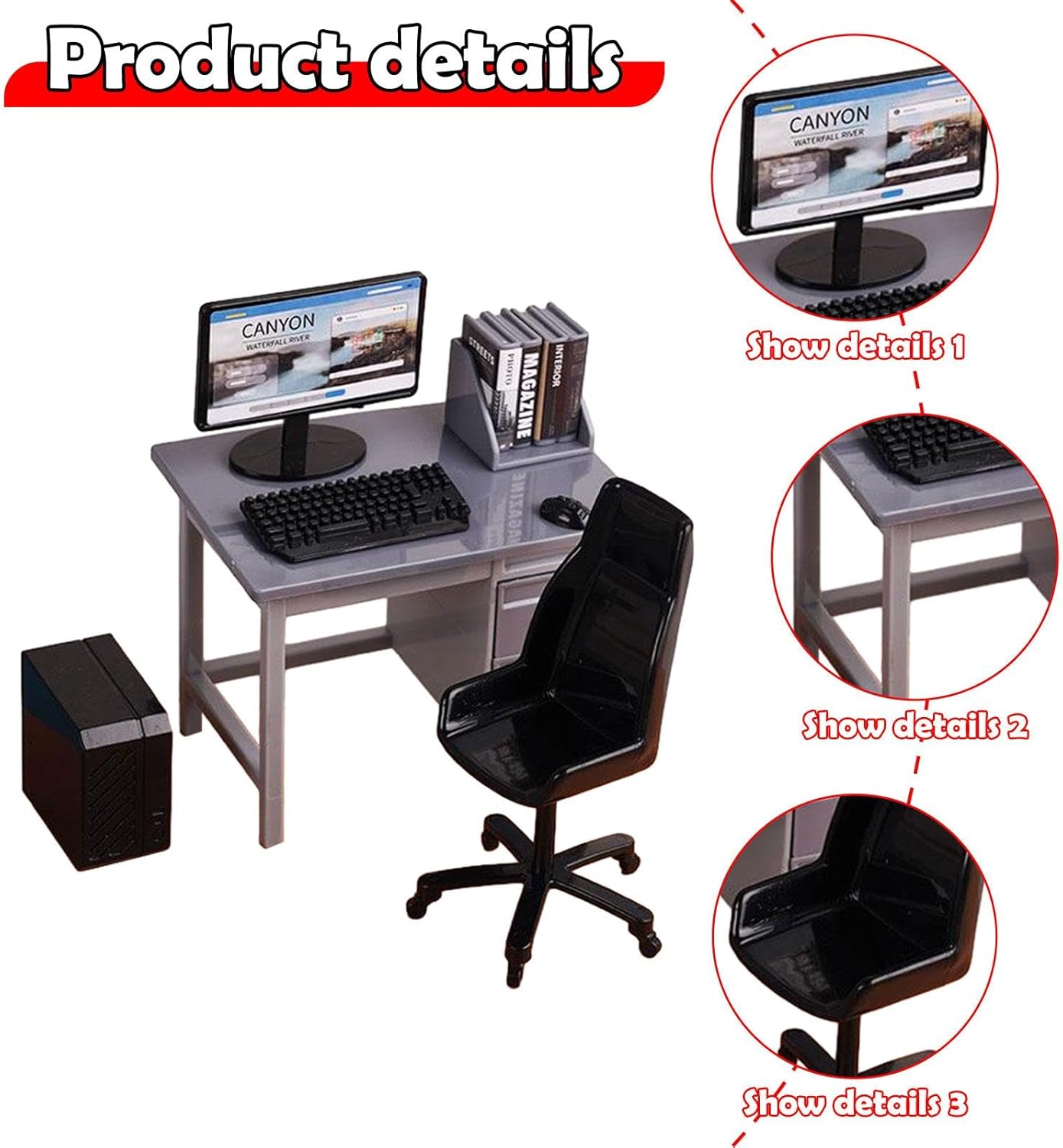 . Multiuso: i giocattoli da tavolo da gioco in miniatura sono adatti per giocattoli paesaggistici sandbox, modellini ferroviari, modelli architettonici, giardini fatati, micro paesaggi, modelli di scene fai-da-te. . 【Fai da te per divertimento】Il modello di mini sedia da scrivania può essere combinato in diverse scene per, tavolino da caffè e giardino fatato come preferisci. . 【Materiale】 Tutti i modelli di mobili in miniatura sono realizzati con materiali di alta qualità e consentono layout creativi delle stanze e giochi fantasiosi. 【Dettaglio elevato】: modello in miniatura in scala 1:12 della sedia da scrivania del computer ricco di dettagli, che aggiunge un tocco realistico alla scena del micro paesaggio. 【Supporto per la decorazione della sala studio】 Set di mini sedie da scrivania. Include un modello di computer, un modello di scrivania, un modello di sedia, una cartella di file e un modello di tastiera.