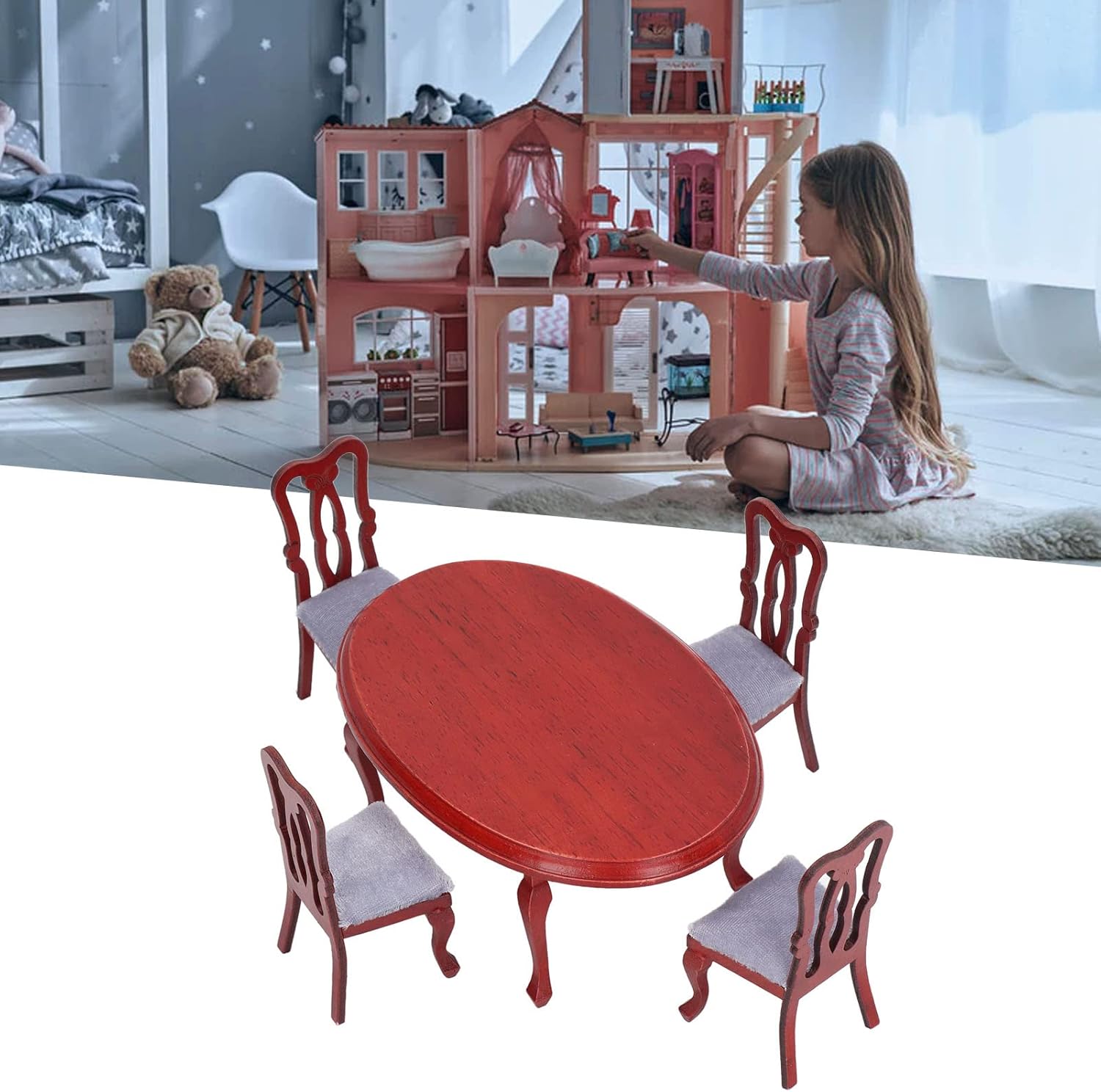 Accessori per la casa delle bambole: progetti artigianali e realizzati, tradizionali, ben realizzati e attraenti. Squisito: ogni bambina ha un grande interesse a giocare con le Box/Cover delle bambole. Questo può rendere la casa delle bambole molto attraente ed elegante. 1:12 mobili per bambole a bambola di design realistico in legno, è il migliore per gli amici. Decorazione delle Box/Cover delle bambole: questo mobile per bambole è molto amato e ogni collezione presenta squisiti falegnameria e dettagli affascinanti. Perfettamente integrato in tutti i micro mobili e mini decorazioni per la casa Quantità: riceverai un set di mobili in sala da pranzo da 1 pezzi, il set include 1 tavolo, 4 sedie.