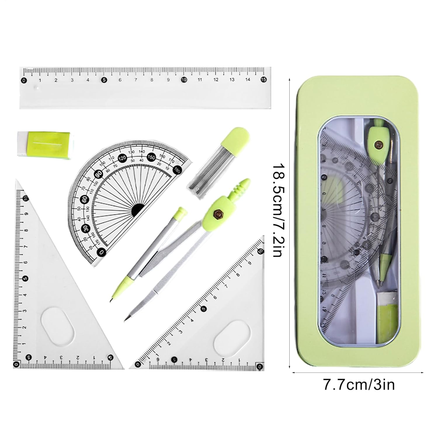 Materiale avanzato: strumento di geometria Set per prestazioni perfette che dura, il nostro set di righelli è realizzato con robusto materiale in acciaio inossidabile e PP, fornendo strumento robusto e sicuro per soddisfare le tue esigenze di misurazione Chiara identificazione: kit di strumenti di misurazione Garantire una lettura rapida e accurata, questo set di sovrani vanta una chiara numerazione che è facile da identificare. Misurare senza sforzo con precisione utilizzando un prodotto progettato per un facile utilizzo da parte Conveniente da trasportare: set di sovrani Student Set sperimenta la comodità di un sovrano portatile impostato con il nostro design elegante e compatto. Dotato di una robusta scatola di protezione in metallo che impedisce la caduta degli oggetti, è per studenti e professionisti Ampiamente applicabile: strumenti di disegno geometrici adatti a bambini e studenti, questo set di sovrani è per varie attività di disegno, garantendo precisione e facilità in ogni progetto Presente straordinario: il sovrano matematico impostato il nostro sovrano set per i bambini è la scelta ideale per coloro che cercano di incoraggiare la creatività e la precisione nei progetti scolastici e nei mestieri, rendendolo un compleanno e un regalo per le vacanze