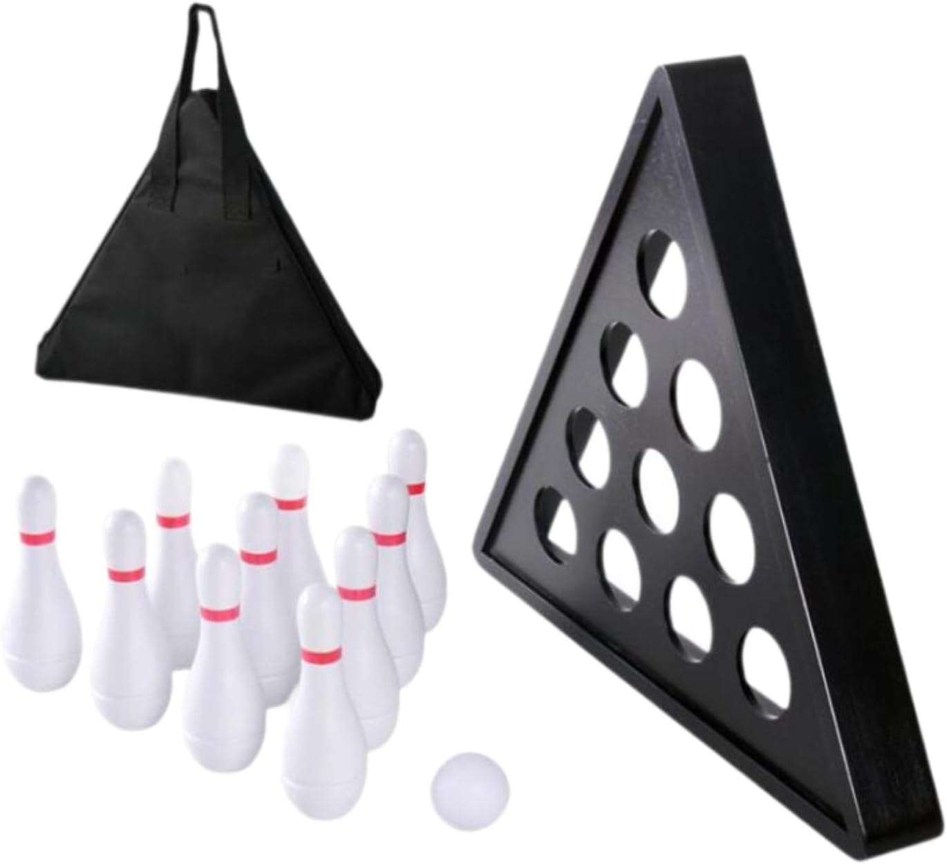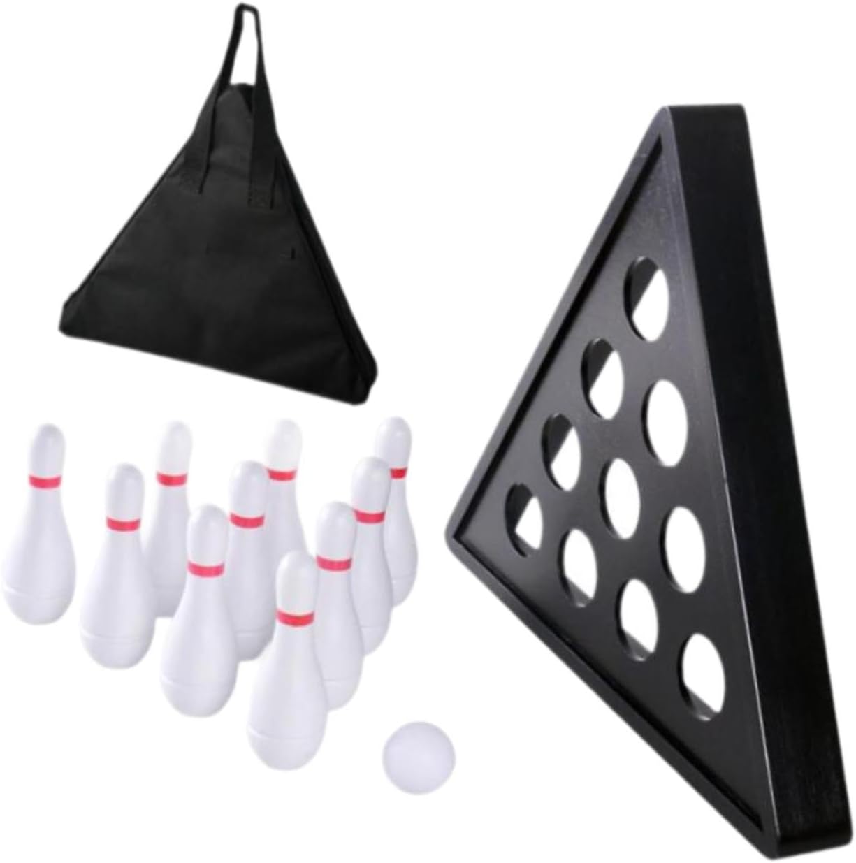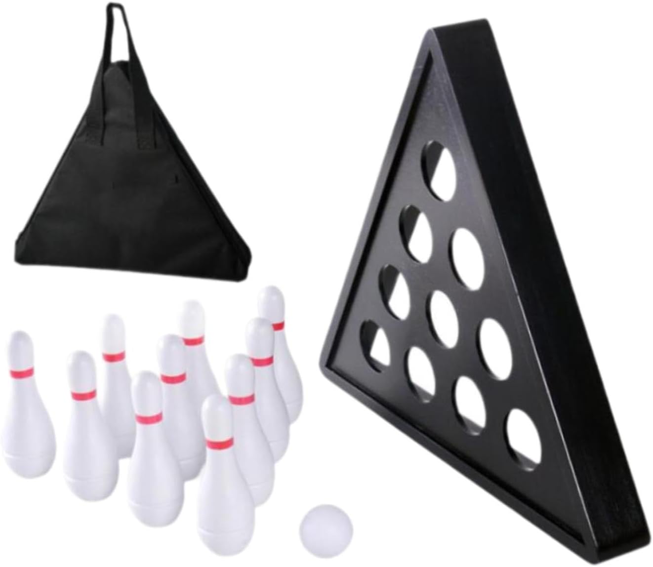 Set completo per divertimento: questo set da bowling da tavolo include 10 birilli da bowling in legno, una pinsetter triangolare, una palla da bowling e una comoda borsa per il trasporto. Ideale per bambini e adulti per divertirsi a casa o in viaggio Design compatto e portatile: con una lunghezza laterale triangolare del telaio pinsetter di 36,5 cm, dimensioni delle forcine da bowling di 4 x 11,2 cm e un diametro della palla di 3,6 cm, questo set è abbastanza compatto da adattarsi a qualsiasi superficie del tavolo ma abbastanza grande da fornire un'autentica esperienza di bowling Ottima idea regalo: confezionato ordinatamente in una borsa per il trasporto inclusa, questo set è un regalo ideale per compleanni o vacanze per chi ama i giochi o le attività sportive che possono essere godute all'interno o all'esterno Facile installazione con pinsetter triangolare: la struttura in legno inclusa funge da pinsetter, rendendo facile organizzare rapidamente i perni in grande formazione in modo da potersi concentrare maggiormente sul gioco piuttosto che sull'impostazione Materiale di alta qualità: realizzati in legno duro di qualità, questi birilli da bowling sono progettati per resistere a innumerevoli giochi mantenendo la loro forma e durata. La palla da bowling garantisce un rotolamento fluido ogni volta