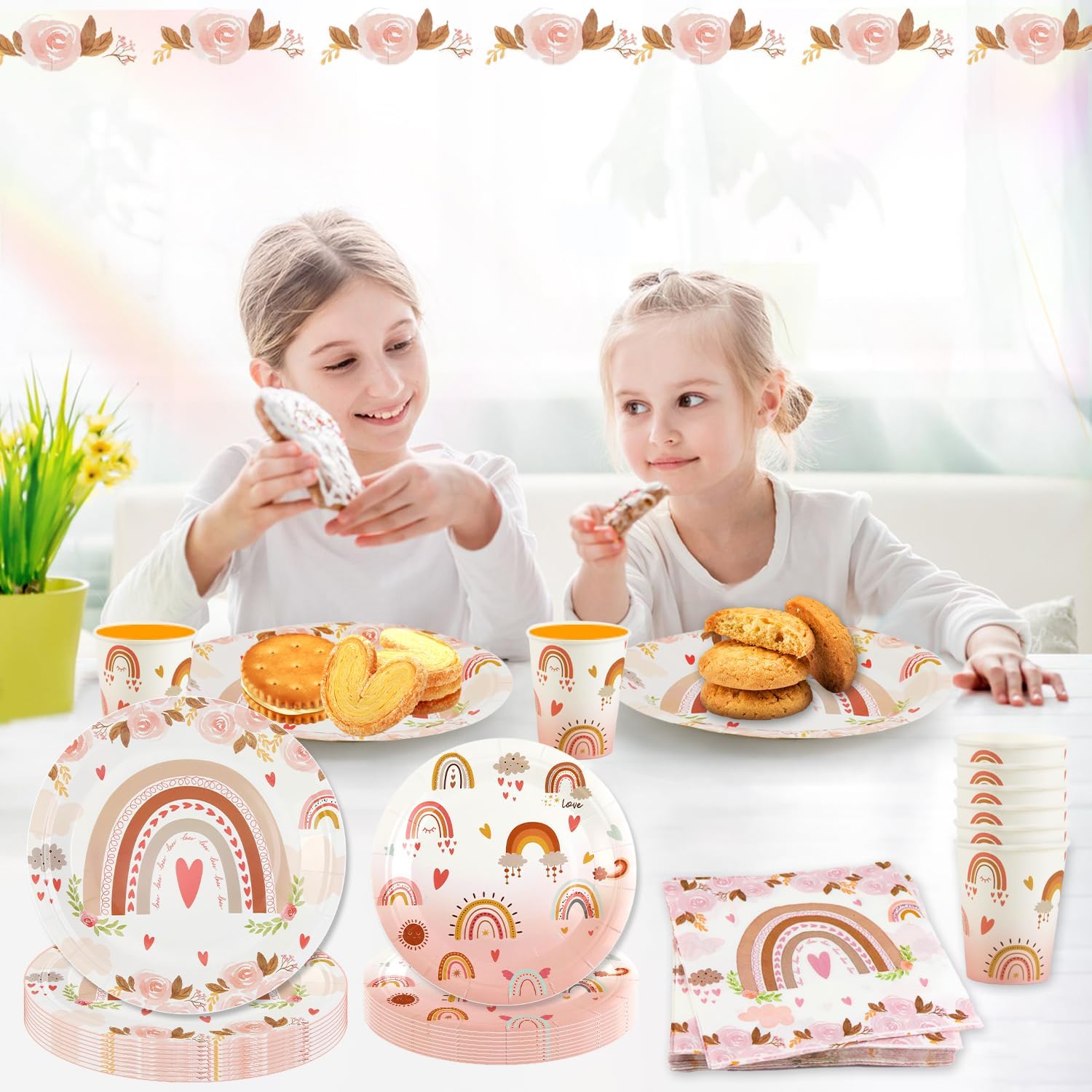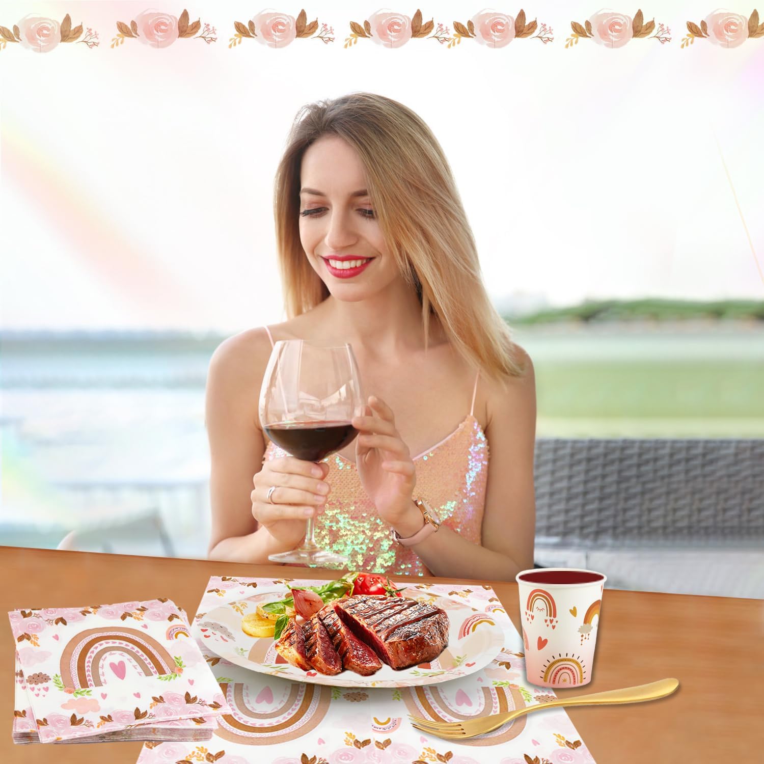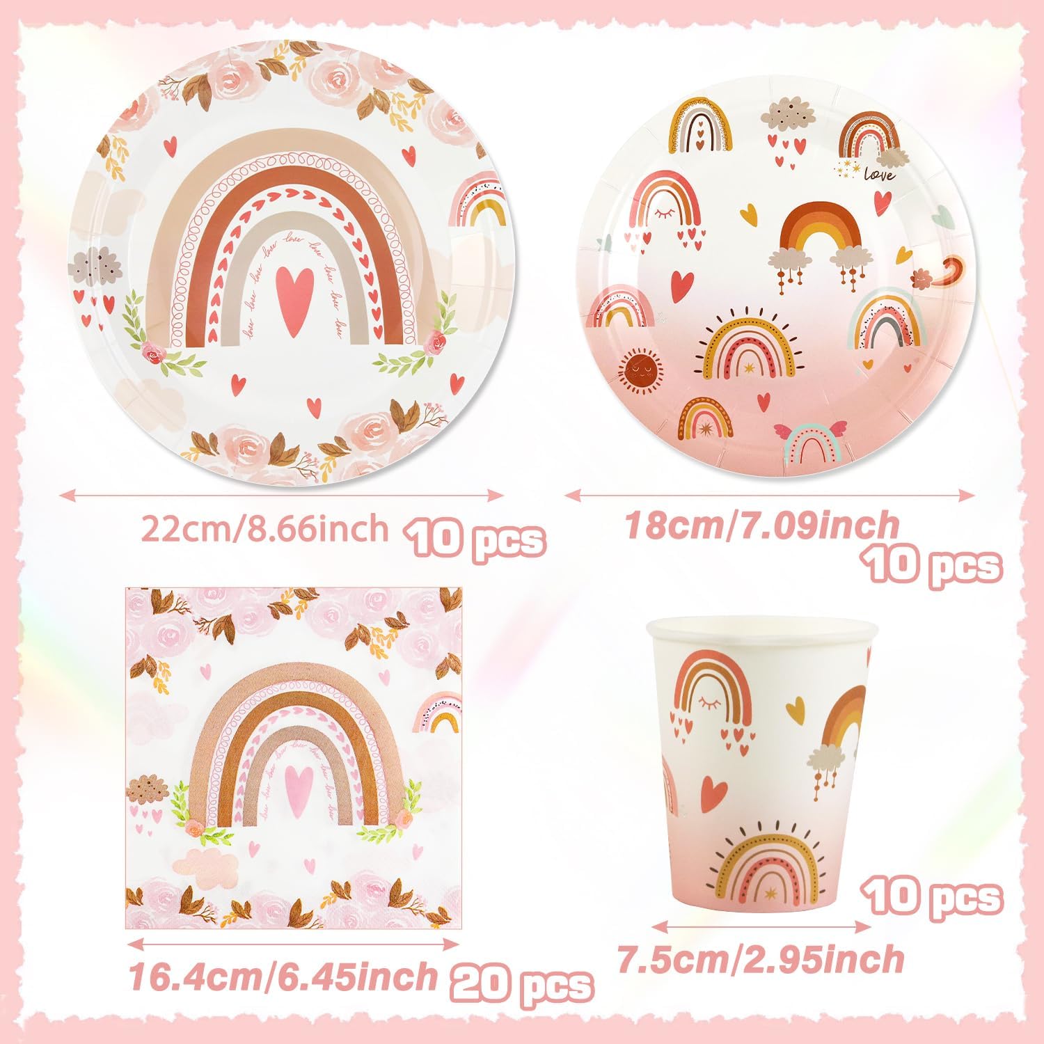 【Set di stoviglie Bohemian Rainbow Party】 Questo set comprende 10 piatti di carta da 18 cm, 10 piatti di carta da 23 cm, 10 bicchieri di carta e 20 tovaglioli. Un set di decorazioni di compleanno arcobaleno, carine e colorate. Il tuo tavolo da festa è dotato di bicchieri di carta, piatti di carta, piatti da dessert e tovaglioli, perfetti per la decorazione di compleanno per 10 ospiti. 【Alta qualità】 Le forniture per feste di compleanno sono realizzate con materiali ecologici e sicuri per gli alimenti. Tazze e piatti sono realizzati in carta biodegradabile. Gli asciugamani sono realizzati in polpa di legno vergine morbida e assorbente. I motivi stampati sono chiari e vivaci, rendendo la tua festa più interessante e attraente.,Adatto a tutti gli scenari: Questi piatti, tazze e tovaglioli di carta sono adatti per feste di compleanno, picnic, barbecue, feste di pesca estive, feste all'aperto, vacanze, club, ecc. per la maggior parte delle fasce d'età. Sono la scelta ideale per Natale, Ringraziamento, Capodanno, compleanni, lauree e feste.,Risparmia tempo: piatti colorati per compleanno e tovaglioli per feste ti fanno risparmiare tempo nella pulizia e nell'organizzazione degli utensili. Nota: non posizionare i piatti e le tazze nel microonde per riscaldarli.,Articoli Bohemian Rainbow: questo set da tavola arcobaleno è una decorazione ideale per feste di compleanno per bambini, ideale per feste di compleanno e cene a tema dolce.
