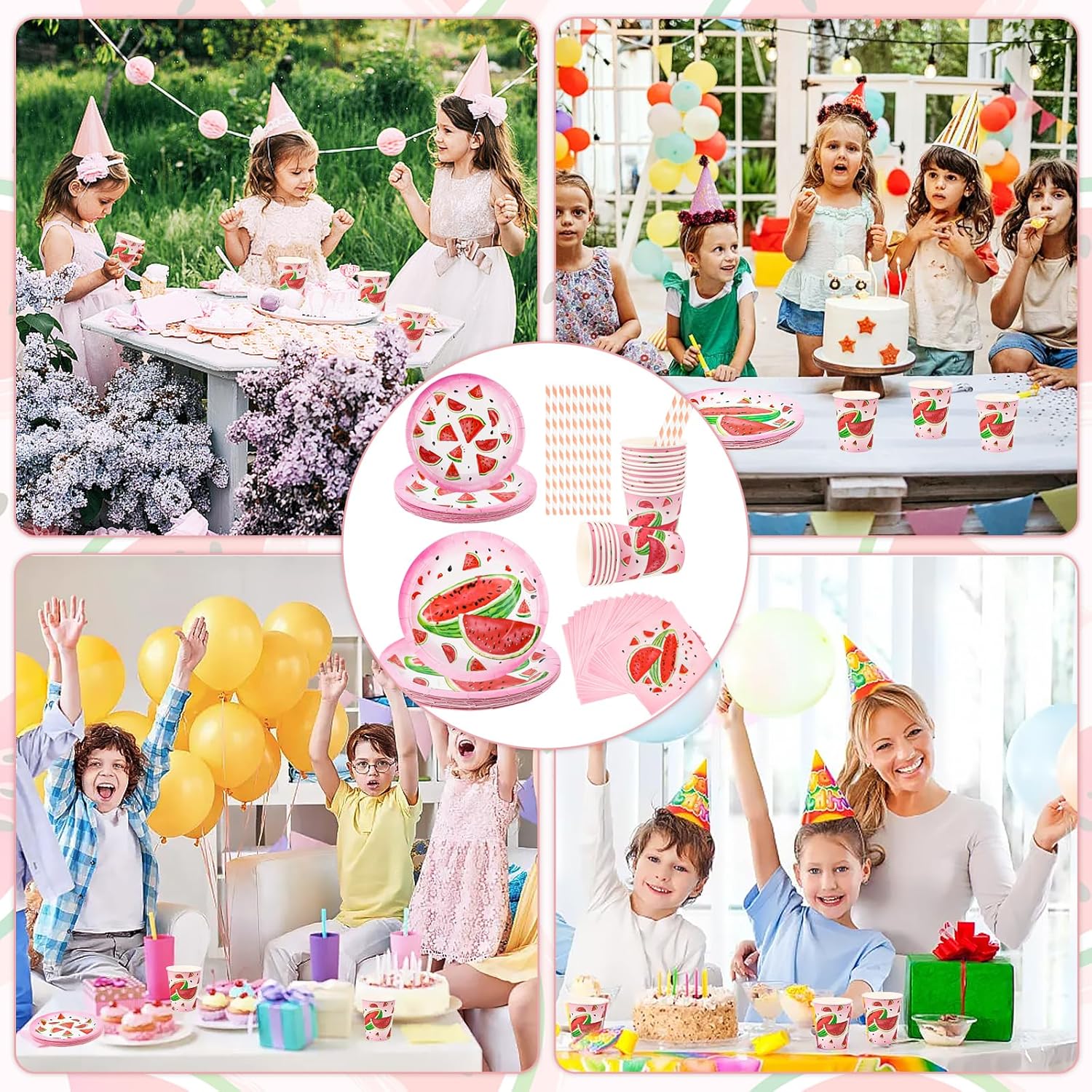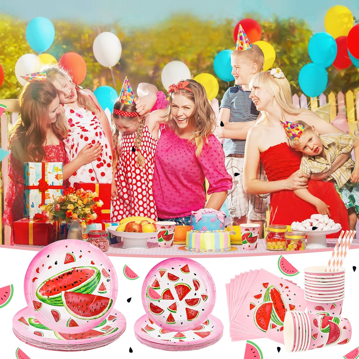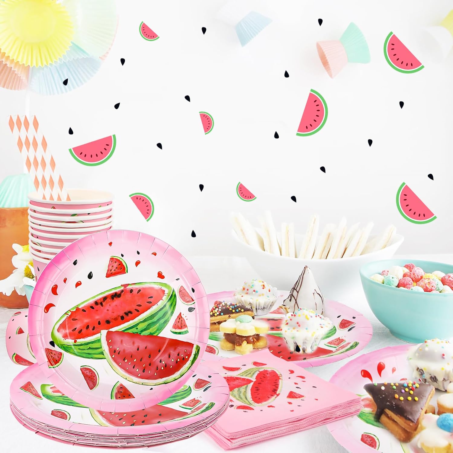 Decorazione per compleanno di anguria: la confezione contiene 16 piatti da 9", 16 piatti da 7", 16 tovaglioli, 16 tazze, 16 paglia. Include tutti gli utensili e le decorazioni di cui hai bisogno per la festa. Decorazione da tavolo a forma di anguria: decorati con anguria, questi simpatici tovaglioli e piatti a tema anguria sono la decorazione perfetta per la collezione di feste e sono un ottimo modo per creare un'ispirazione da tavolo con amici e familiari. 【Sicurezza dei materiali】 Realizzato in carta per alimenti, sicura e durevole, senza BPA, sicura da usare. Perfetto per servire una varietà di piatti per feste, dessert, torte e bevande. Facile da pulire: i piatti per feste a base di anguria sono comodi da trasportare, facili da pulire e possono essere utilizzati per decorare qualsiasi tipo di festa. Ciò consente a te e alla tua famiglia di risparmiare tempo ed energia e permetterà a te e alla tua famiglia di trascorrere una giornata indimenticabile. Perfetto complemento per feste a tema anguria: questi simpatici pacchetti a tema anguria sono l'aggiunta perfetta alla decorazione della tua festa a tema anguria. Possono essere perfettamente abbinate alle altre decorazioni per feste a tema anguria, come tovaglie per feste a tema anguria, sacchetti per feste con anguria, sfondi per feste di anguria, ecc.