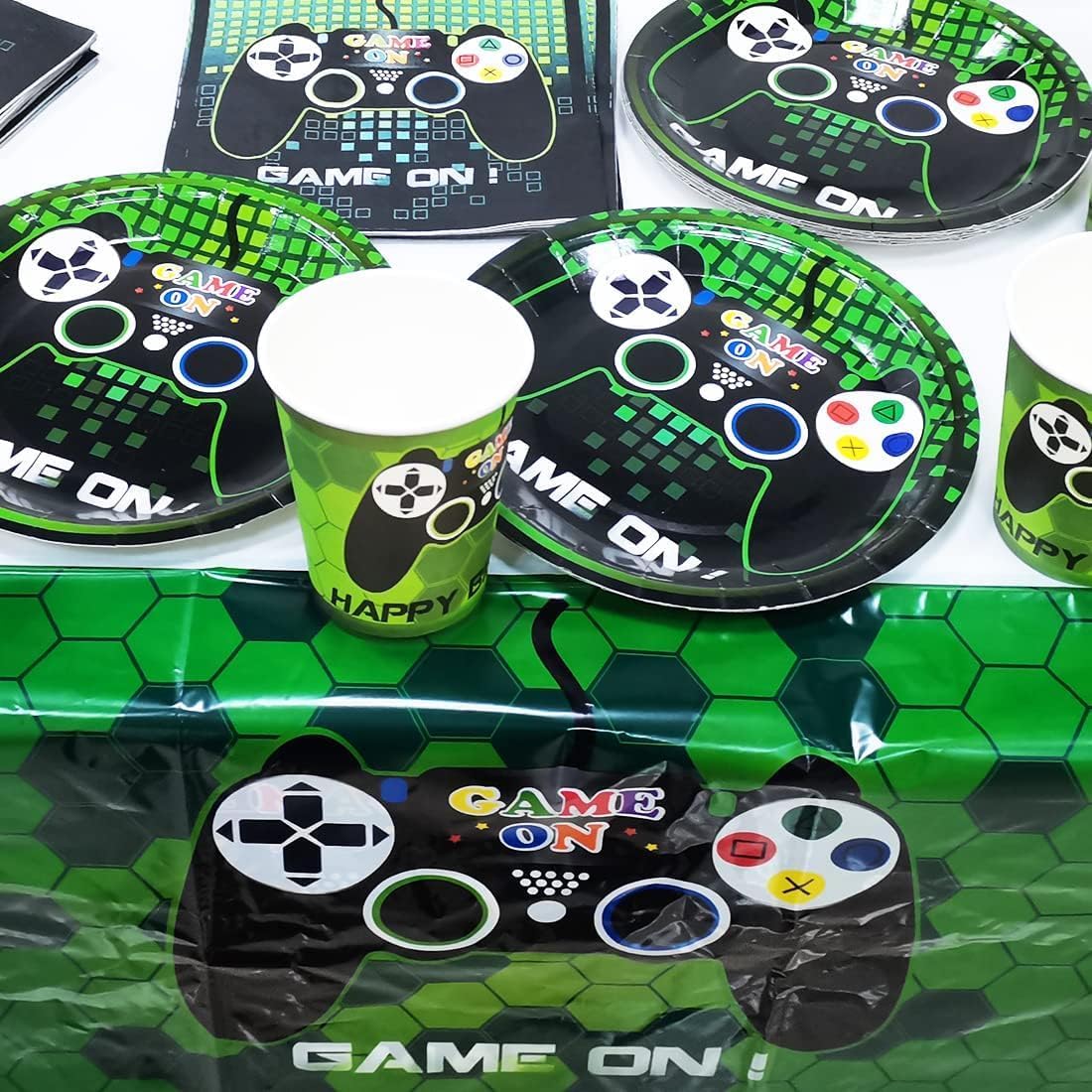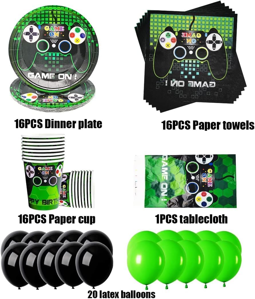 Meravigliosa festa di compleanno: questo bellissimo kit di decorazioni di compleanno metterà in risalto magnificamente la tua festa. Materiale premium: queste stoviglie per feste sono realizzate in carta, spesse, resistenti e riutilizzabili. Adatto per 16 persone: La decorazione compleanno del videogioco contiene 20 palloncini in lattice (neri, blu, azzurri), 16 piatti, 16 tovaglioli di carta, 16 bicchieri, 1 tovaglia come decorazione per la festa di compleanno. Decorazioni per feste per videogiochi: palloncini in alluminio con design di personaggi 3D e colori vivaci rendono la tua festa più vivace e attraente. Occasioni adatte: le decorazioni per le feste dei videogiochi sono molto apprezzate da tutti, meravigliose per le feste di compleanno dei bambini.