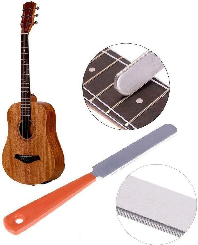 1.Guitar Luthier Set di strumenti Include: 1 file di coronatura di di chitarra, 2 protezioni tastiera e 1 livellatore di di chitarra, 2 pietre di macinazione, adatto per liutaio, utente di strumenti a corda, chitarra, DIY per molte opere di . 2.FILE FET: realizzato in acciaio inossidabile, con impugnatura ergonomica in gomma per una presa confortevole.Dimensione: la superficie della limatura è di 10,16 cm di lunghezza, la maniglia di gomma è di 8,89 cm di lunghezza, che viene su corone strette dopo il livellamento. 4.L'impugnatura ergonomica rende le comode e comode da , e lo strumento di livellamento del bordo dritto ti aiuta a rilevare eventuali differenze nell'altezza del suono. 3.Adatto per bassisti, chitarristi, liutai e molti lavori in difficoltà DIY.Perfetto per strumenti di cura, manutenzione e pulizia per chitarra, basso, ukulele, mandolino, banjo e altro ancora. 5. I pad protettivi vengono utilizzati per proteggere la chitarra o la tastiera dei da graffi o danni durante la noiosità e la lucidatura.
