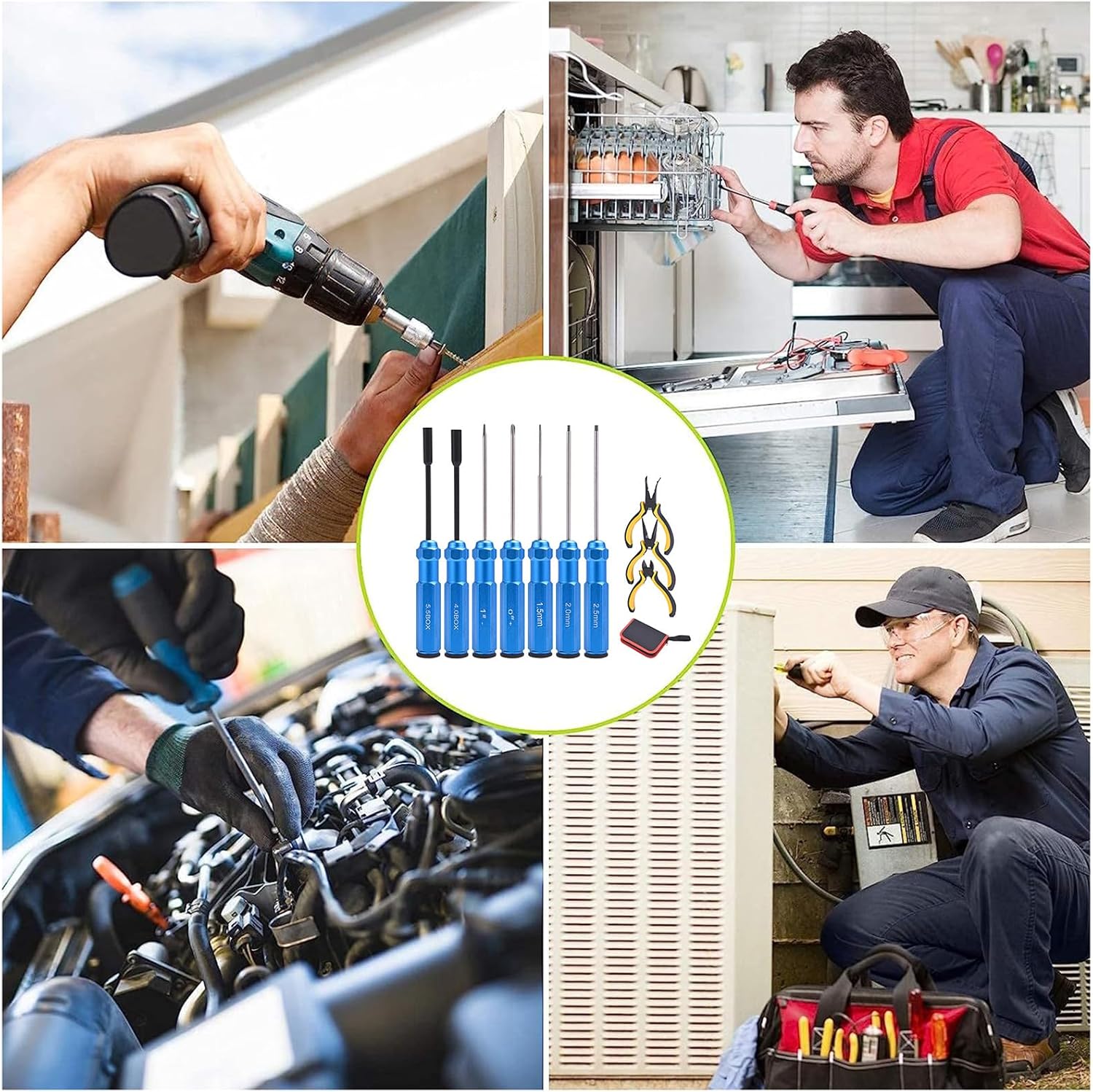 Include 10 strumenti professionali che coprono le funzioni di taglio, assemblaggio e finitura. Ogni strumento è realizzato in acciaio ad alta resistenza, risolve efficacemente il problema che gli strumenti tradizionali sono soggetti a usura, particolarmente adatto per gli appassionati di modellini di aeroplani e i produttori. Il design di ogni strumento tiene conto della precisione operativa, con una precisione massima regolabile di 1 mm. L'esclusivo design dell'impugnatura esagonale blu è in linea con l'ergonomia ed è più confortevole. Questo design aiuta gli utenti a ridurre l'affaticamento durante l'uso a lungo termine ed è adatto a studenti e adulti che amano i modellini di aeroplani, facilitando l'esecuzione di operazioni complesse. Adatto per l'assemblaggio e la manutenzione di vari modelli come aerei telecomandati e modellini di navi, soddisfacendo esigenze diverse. Che tu stia creando una casa o partecipando a concorsi, il toolkit può fornire agli utenti in modo completo ed è adatto a una varietà di appassionati di modellini di aerei. La speciale borsa portaoggetti può ospitare tutti gli strumenti, con dimensioni e portabilità ridotte. La modalità di conservazione evita la perdita o il danneggiamento dell'utensile, garantendo che lo strumento rimanga pulito e facilmente accessibile in ogni momento