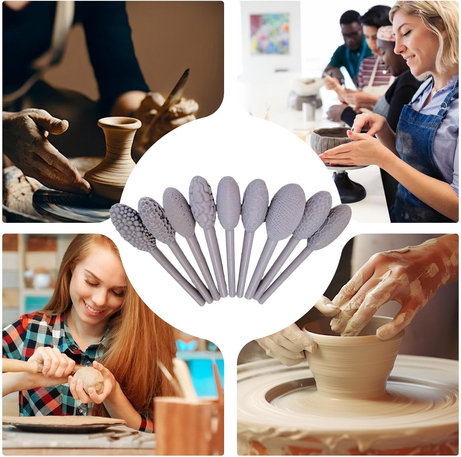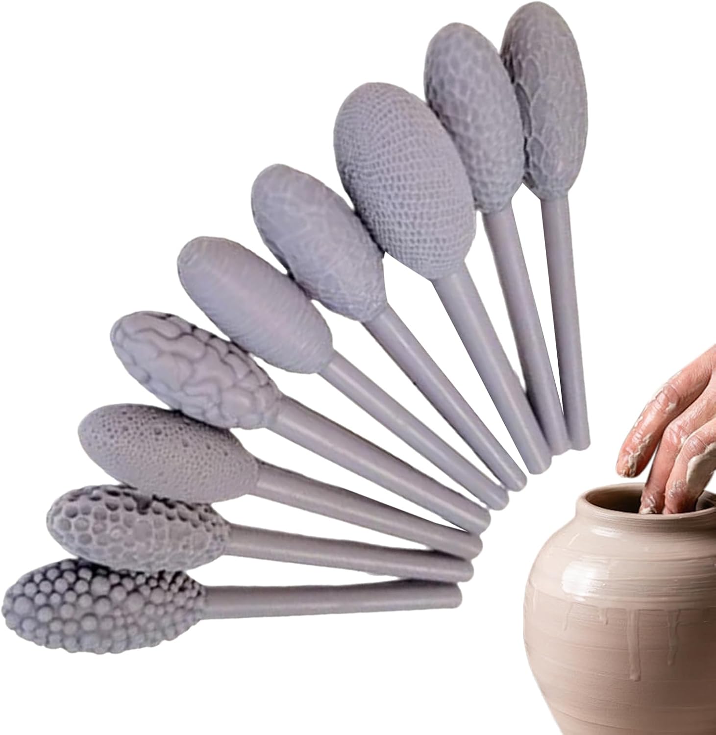 Versatile set di 9 rulli a testa singola per intricati motivi di argilla: questo set include una gamma di disegni di texture ovale per aggiungere varietà e profondità ai tuoi progetti di argilla, ideali per migliorare ceramica, ceramica e altro ancora. Impugnatura comoda per un controllo facile e preciso: ogni rullo è realizzato con un manico liscio ed ergonomico che offre comfort e controllo ottimale, consentendo di lavorare con precisione sulla tua arte in argilla. Perfetto per argilla, ceramica e altri progetti di artigianato: adatto per l'uso con una varietà di materiali tra cui argilla ceramica e persino metalli morbidi, offrendo versatilità per diverse espressioni creative. Ideale sia per principianti che per artisti esperti: che tu sia un principiante dell'argilla o un artista esperto, questo set di strumenti rende facile sperimentare le texture, offrendo risultati dall'aspetto professionale con facilità. Migliora i progetti artistici con texture belle e complesse: i motivi ovali prodotti da questi rulli aiutano a dare una finitura elegante e dettagliata ai tuoi progetti di argilla, facendoli risaltare in qualsiasi esposizione artistica.