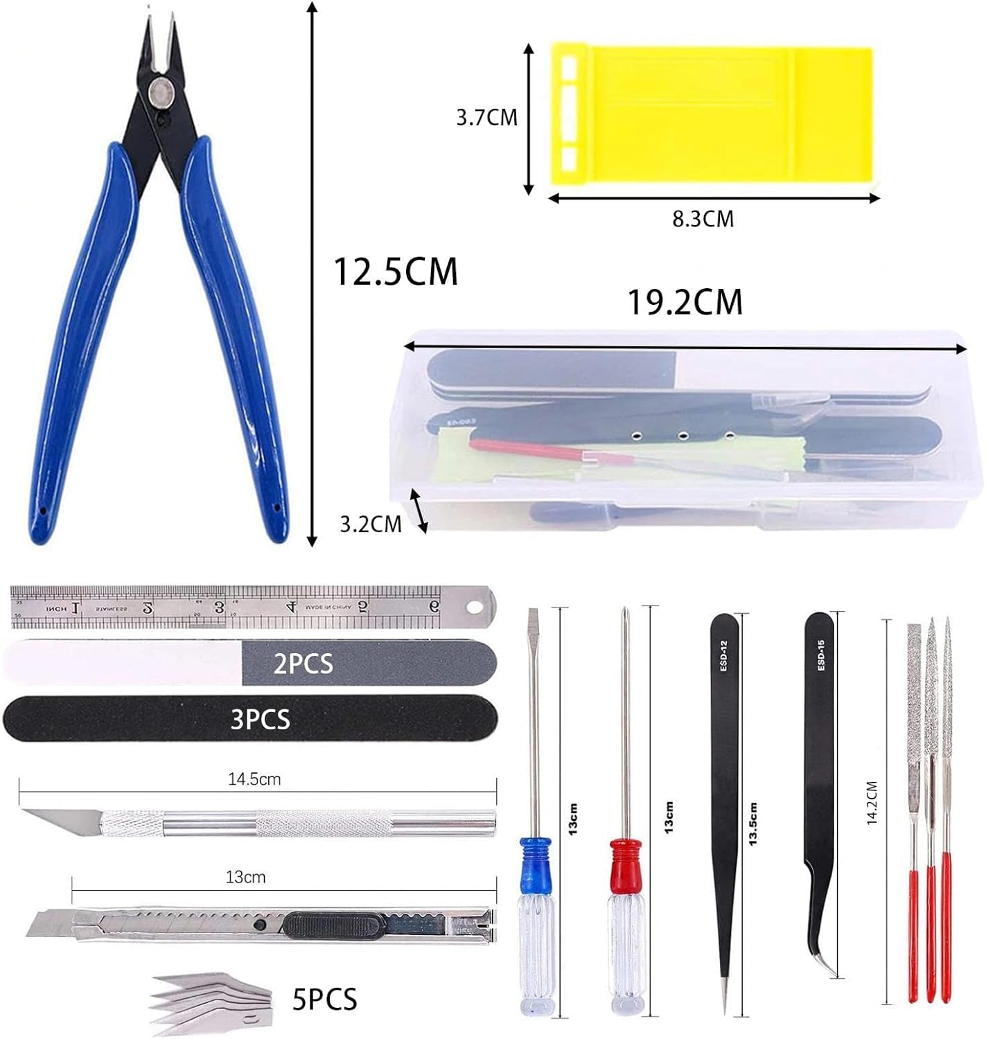 🛠️【Set di strumenti per modellismo】: 1 bisturi artigianale, 5 lame di ricambio, 1 coltello da taglio, 2 pinzette (1 dritta, 1 curva), 2 cacciaviti, 1 taglierina laterale, 1 righello in acciaio, 3 lime (diversi tipi), 5 bacchette per lucidare, 1 separatore giallo, 1 panno per lucidare e 1 scatola di conservazione. 💪 【Durevole e robusto】: le piccole taglierine laterali sono realizzate in acciaio inossidabile di alta qualità con elevata durezza ed estrema affilatura per una lunga durata. Le pinzette in acciaio inossidabile di alta qualità sono robuste e particolarmente durevoli. Possiedono proprietà antistatiche, resistenti agli acidi, resistenti alla corrosione e antimagnetiche. Altri strumenti sono realizzati in plastica e metallo. 🎯【Applicazioni multiple】: questo set di strumenti di costruzione di modelli di base è perfetto per principianti e modellisti professionisti. Strumento ampiamente utilizzato per la creazione di modelli nella realizzazione di giocattoli per automobili, robot, cartoni animati, edifici, aeroplani, ecc. Set di strumenti per modellismo adatto anche per piccoli progetti di artigianato e di elettronica. 🎒【Leggero e portatile】: il set di strumenti base per la costruzione di modelli si inserisce perfettamente nella pratica scatola di plastica trasparente, facile da trasportare e riporre. Si adatta comodamente alla borsa per il viaggio o per riporlo a casa. Il set di modellismo da 23 pezzi è un set versatile per tutte le esigenze dei tuoi progetti fai-da-te. 🎁【Strumenti per la costruzione di modelli】: gli strumenti di base del modellatore soddisfano tutti i requisiti di base per principianti e utenti avanzati, l'aiutante perfetto per il tuo lavoro su Gundam. Gli accessori per la costruzione di modelli sono il regalo ideale per familiari e amici che amano l'animazione, i cartoni animati o la costruzione di modelli.