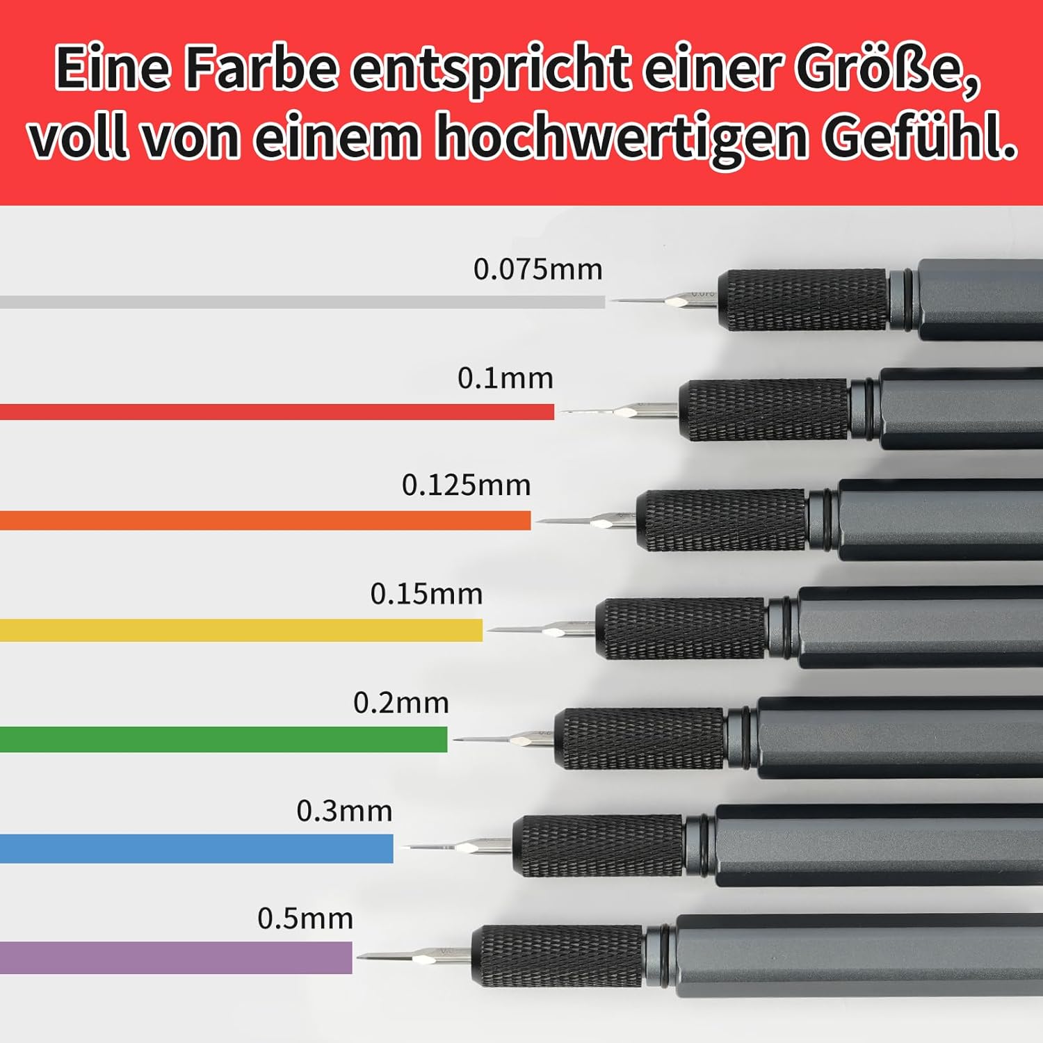 Set di strumenti per l'incisione: questo set contiene 7 strumenti per l'incisione con lame di diverse dimensioni (0,075/0,1/0,125/0,15/0,2/0,3/0,5 mm), ciascuno alloggiato in una custodia dal colore unico. Il supporto in legno a 7 scomparti offre stabilità e organizzazione, consentendoti di rendere più efficiente il tuo flusso di lavoro senza dover cambiare le lame mentre lavori. Estetico e pratico: questo set di strumenti non è solo estremamente pratico ma anche ben progettato. Tutte le 7 taglie sono disponibili in diversi colori. Gli strumenti del modello sono piccoli e leggeri. Puoi portarlo ovunque e usarlo in qualsiasi momento. Nota: seguire le istruzioni per l'uso per evitare lesioni e garantire la longevità degli strumenti. Lama affilata in acciaio al tungsteno: la lama da modellare è realizzata in acciaio al tungsteno di alta qualità con elevata durezza, elevata resistenza all'usura, che fornisce una linea diritta e liscia e un'eccellente nitidezza. La lama è macinata, levigata e lucidata con precisione da artigiani, vicino alla superficie dello specchio, maggiore nitidezza. Fornisce una sensazione eccellente per il tuo lavoro di modellazione. (Profondità della linea di scriba da leggera a pesante) Impugnatura ergonomica: l'impugnatura Panel Line Scriber è realizzata in alluminio aeronautico, struttura antiscivolo, sensazione di mano confortevole, molto leggera. Con il design a baricentro basso, non si stancherà nemmeno dopo un uso prolungato. Il design cilindrico a sei lati impedisce il rotolamento. Riposizionare il cappuccio protettivo quando non viene utilizzato. Ampia applicazione: le 7 diverse dimensioni della lama sono perfette per kit di auto e aerei, Gunpla real grade, hg, pg, mg, modelli in scala 1/144 e 1/100 e altre parti in plastica. Ci impegniamo a fornire prodotti e servizio clienti di alto livello. Se hai problemi con i nostri prodotti, non esitare a contattarci!