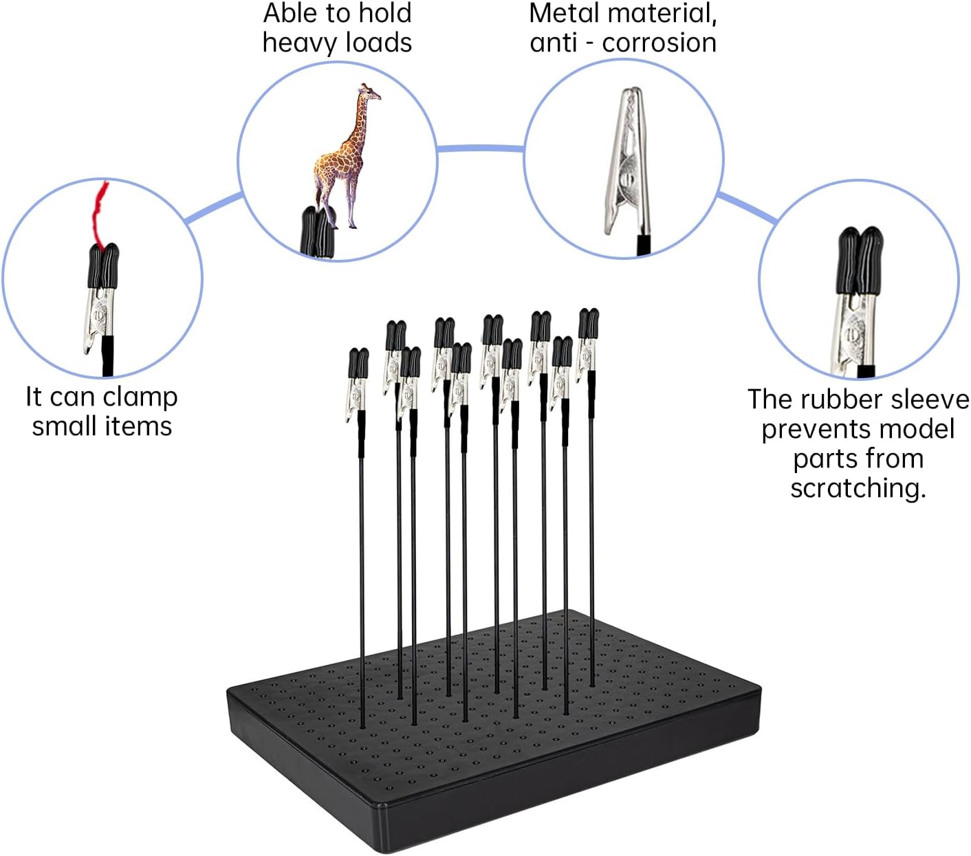 L'asta flessibile può aiutare a regolare le parti del modello a qualsiasi angolo, rendendo più facile dipingere piccole parti del modello per la verniciatura di piccoli pezzi di modello. Un ottimo strumento di modellazione È possibile posizionare comodamente i bastoncini sulla base della clip A per gli appassionati di piccoli modelli del mondo per dipingere o aerografare piccole parti di modelli Le clip sono ideali per contenere piccole parti da dipingere o airbrus
