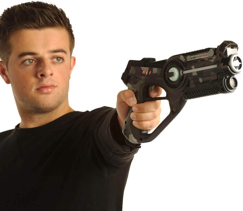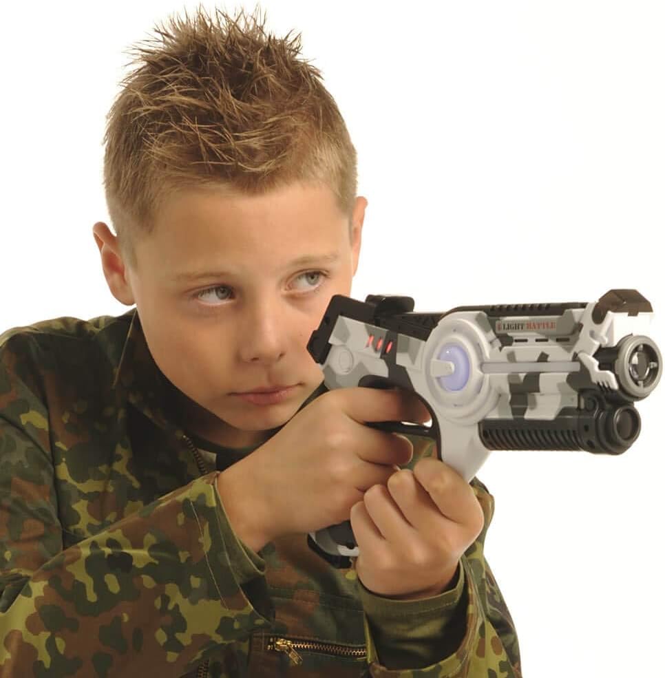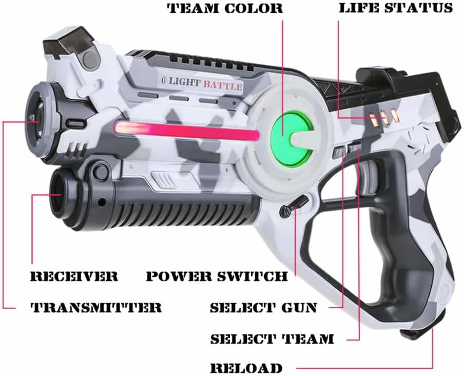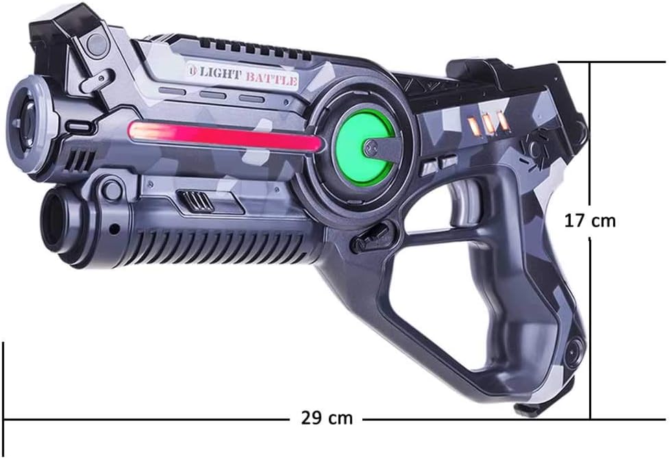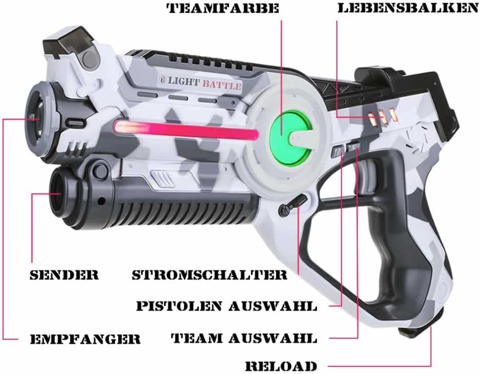 Divertimento per tutta la famiglia: una pistola laser Light Battle significa divertimento laser senza limiti per tutta la famiglia. Con questo gioco di laser tag puoi trasformare la tua casa o il tuo giardino in una vera arena di giochi laser. Gioco Laser Tag Light Battle: puoi giocare a Laser Tag con un numero illimitato di giocatori divisi in un massimo di 4 squadre. Il tuo avversario viene sconfitto quando tutte le vite sulla pistola laser tag del tuo avversario sono esaurite. Determina la tua tattica scegliendo uno dei 4 tipi di munizioni. Ogni tipo di munizione ha la propria potenza di fuoco. Pistola laser da battaglia leggera - La pistola laser ha 4 tipi di munizioni e 4 diversi colori della squadra. La pistola laser tag ha un trasmettitore e un ricevitore a infrarossi, quindi non è necessario un giubbotto per giocare ai giochi laser. Il numero delle vite viene indicato sulla pistola laser con 3 barre. Sicurezza e istruzioni - Le pistole Light Battle Active Laser Tag soddisfano i requisiti delle direttive UE applicabili (marcatura CE). Light Battle Active utilizza la tecnologia a infrarossi innocua e invisibile, simile al telecomando della TV. Consegniamo i nostri prodotti con istruzioni in tedesco, inglese, francese e olandese. Garanzia: offriamo una garanzia di rimborso di 30 giorni alle persone che non utilizzano i nostri prodotti a fini commerciali.