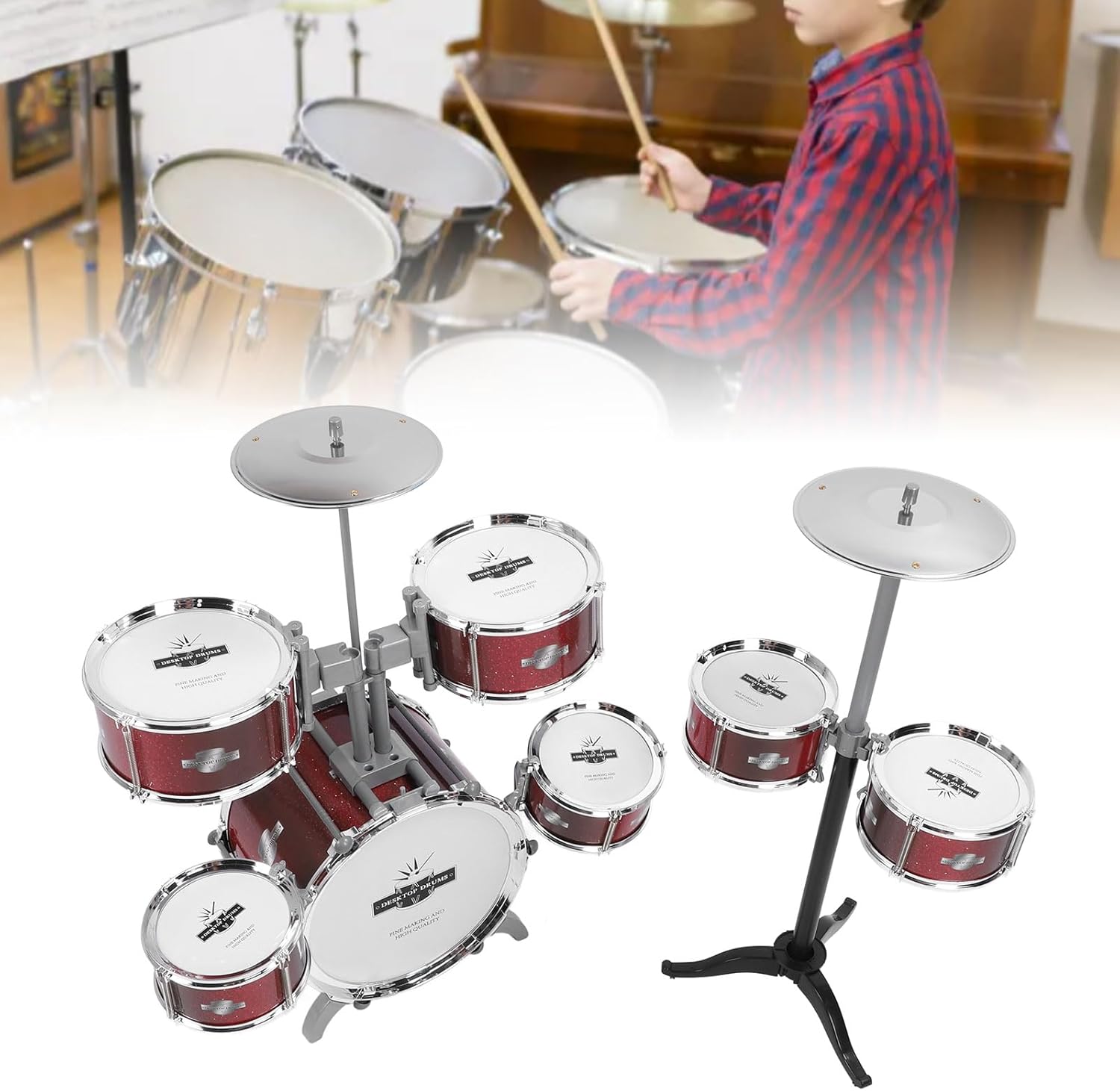 Funzione: stimola l'interesse dei bambini per la musica, aiuta a sviluppare talenti musicali e coordinamento. Scenario di utilizzo: ideale per i giovani bambini che iniziano a esplorare musica e ritmo. Funzione: il drum kit jazz promuove la comunicazione emotiva e la cooperazione tra i membri della famiglia, facilitando l'interazione tra genitori e bambini durante il gioco. Materiale: il drum kit musical a percussione è realizzato in materiale addominali sicuro, dando ai genitori tranquillità quando i bambini suonano. Caratteristiche: ha dettagli fini, è leggero ma robusto. Sound: produce un suono pulito e forte, consentendo ai bambini di suonare una bella musica. Funzione: questo strumento musicale a percussione è un giocattolo per bambini. Può coltivare il senso della musica e del ritmo dei bambini, offrendo tutto ciò di cui hanno bisogno per iniziare a suonare bene. Processo di elettroplazione: migliora la bellezza e la consistenza del giocattolo. Dimensioni compatte con un aspetto attraente. Leggero e facile da montare. ideale per i giovani giocatori per ispirare talento musicale.