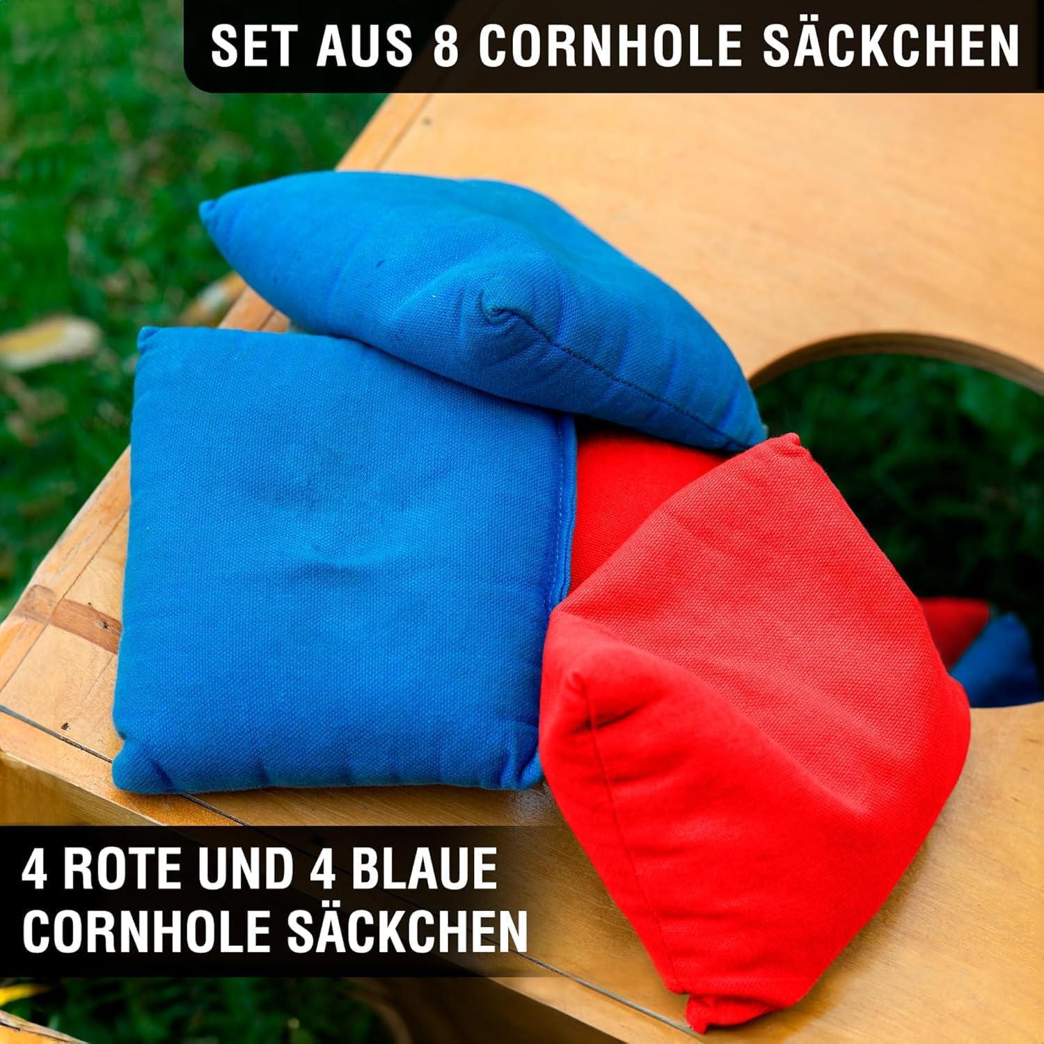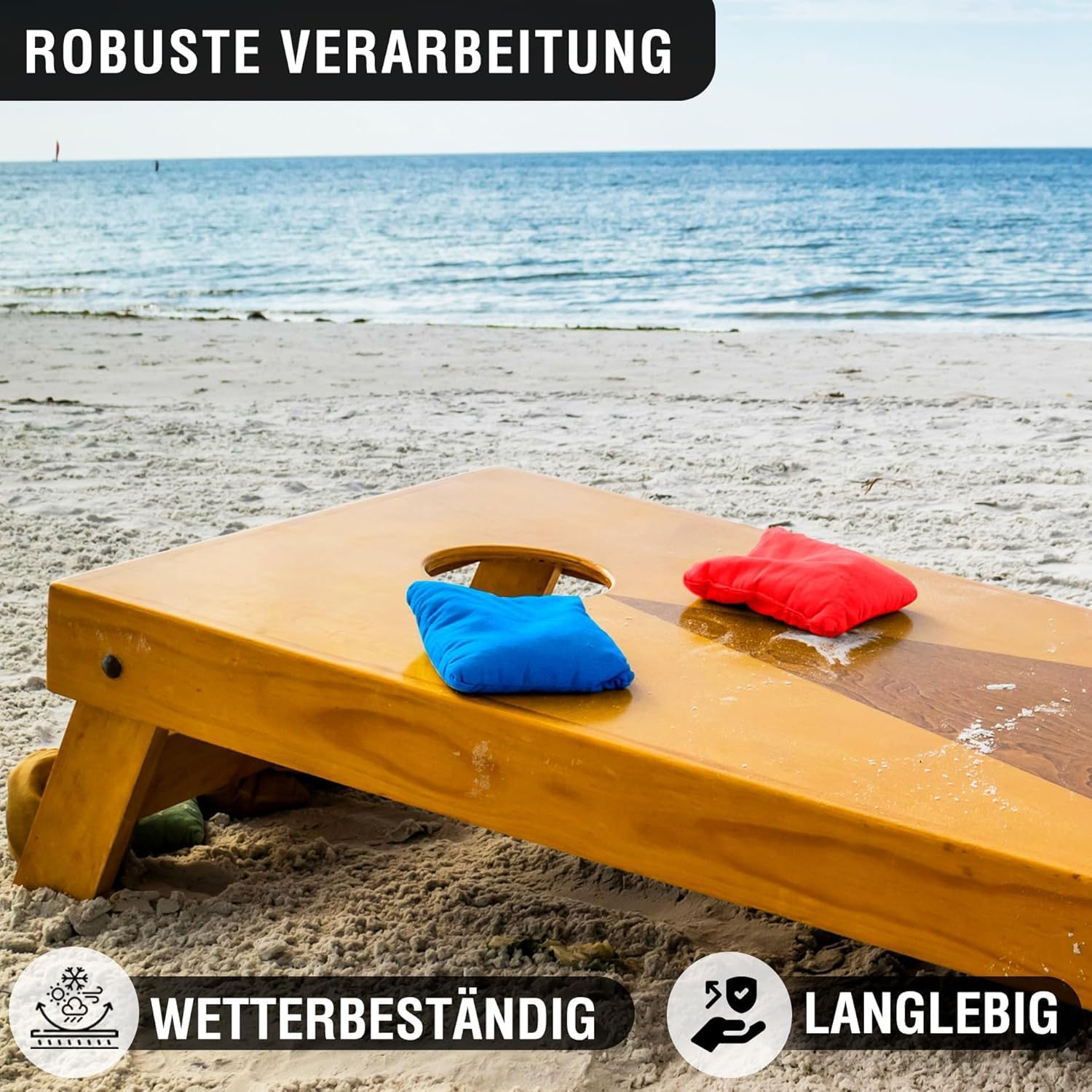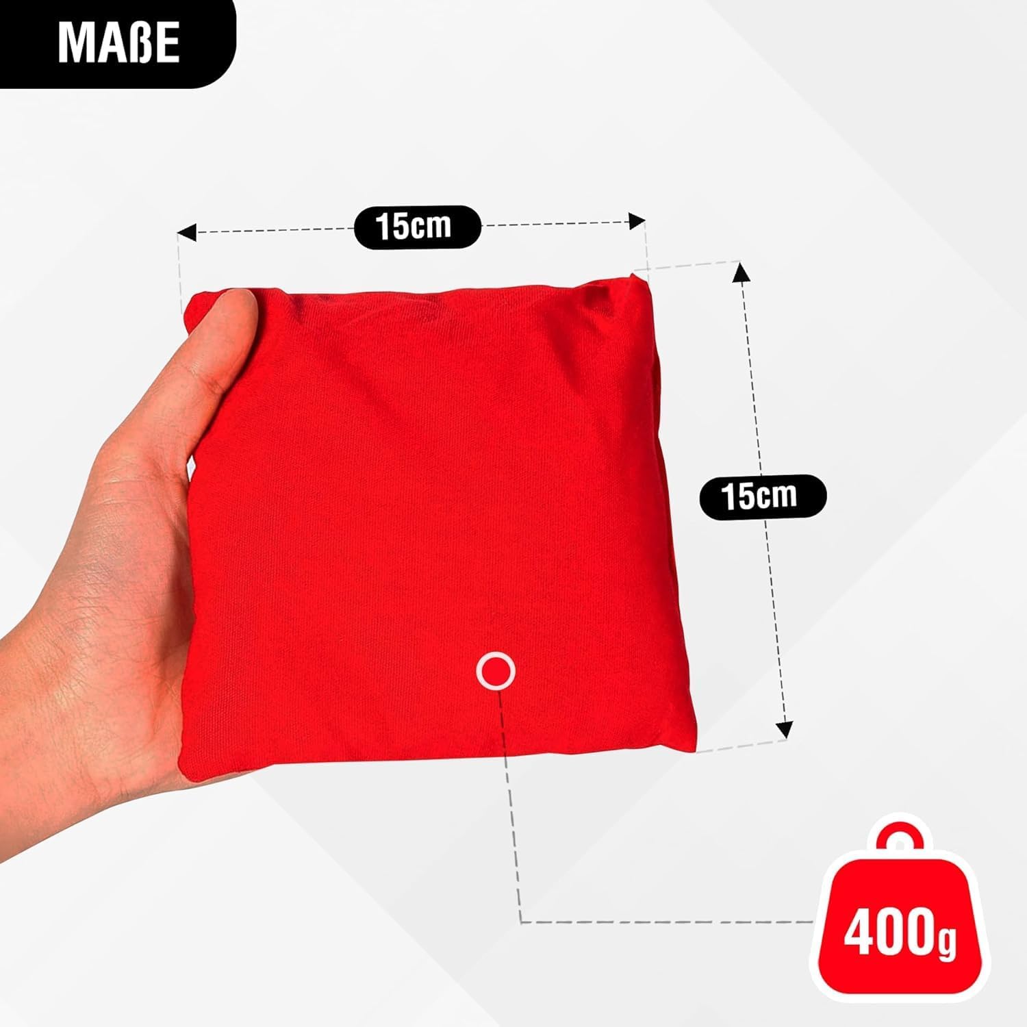 MOVIMENTO CON DIVERTIMENTO: incontro - questo è il principio di base del leggendario gioco Cornhole. Con i sacchetti Cornhole non solo puoi migliorare la tua tecnica di lancio, ma anche allenare la tua sicurezza e rimanere in movimento. Resistenti e colorati: con il set originale BeerCup Cornhole riceverete sacchetti originali in una versione molto resistente e migliore. I set sono progettati per 2 giocatori e contengono 4 sacchi in un colore colorato. Per la lancia perfetta: poiché i sacchi da lancio Cornhole sono riempiti con granulato di plastica, volano molto bene nell'aria e puoi lanciare perfettamente i sacchetti Cornhole. Inoltre, atterrano delicatamente senza essere danneggiati. Versatile: questo set Cornhole è adatto anche per molti altri giochi – i sacchetti sono spesso migliori delle palline in quanto sono più facili da catturare. Grazie al loro aspetto colorato a forma quadrata, sono due volte più divertenti. Cuciture resistenti. Grazie alle cuciture molto robuste e all'eccellente lavorazione, con questi sacchetti Cornhole puoi sperimentare innumerevoli giri di gioco e competizioni senza che si rompano già al primo lancio.
