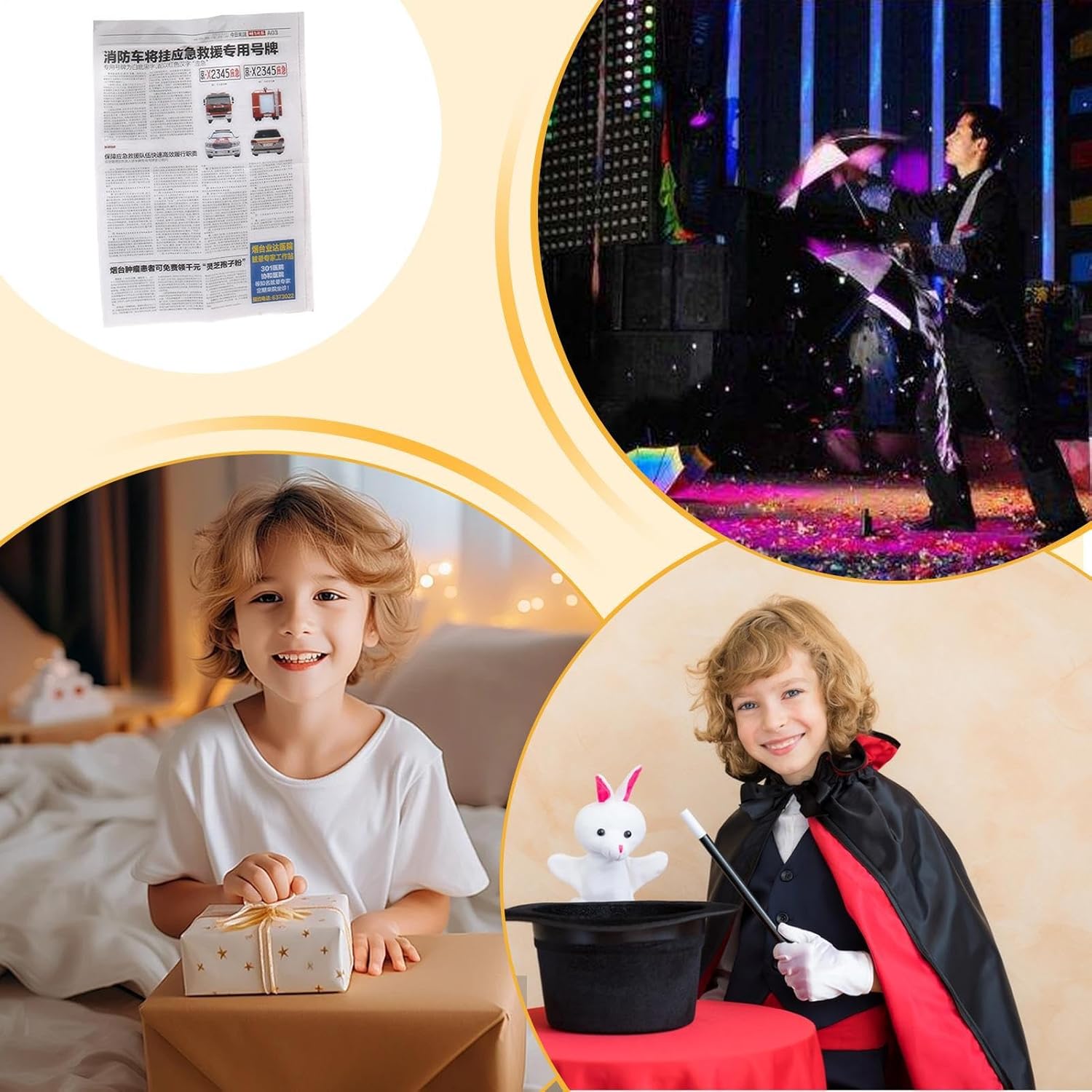 Grande durata: questa gamma riutilizzabile e indistruttibile di oggetti di scena per charm, realizzata con cura con tecnologia professionale. Stupisci il tuo pubblico senza sforzo, dai dilettanti ai livelli professionali Foster Magic Talent: ti divertirai a immaginarti come un vero mago e otterrai meravigliosi effetti di fascino - come trasformare un giornale in un bicchiere d'acqua - e trasformando spettatori incredibili in un bicchiere d'acqua Pratico e facile da viaggiare: con il nostro set Charm Toy i bambini possono fare uno spettacolo di fascino impressionante in qualsiasi momento e ovunque. Con semplici passaggi, questo set facile da usare e portatile non richiede esperienze esistenti in trucchi charm. Ideale per ispirare la creatività, aumentare la fiducia e offrire ai bambini più intrattenimento Design sicuro per bambini: realizzato con materiale sicuro e innocuo Scena adatta: il set di giocattoli Charm è un buon programma che consente ai giovani artisti di migliorare la loro presenza sul palcoscenico senza sforzo. Permette ai bambini di attirare più attenzione durante gli eventi scolastici e di dimostrarsi uno strumento ideale per dimostrare i loro talenti e abilità.