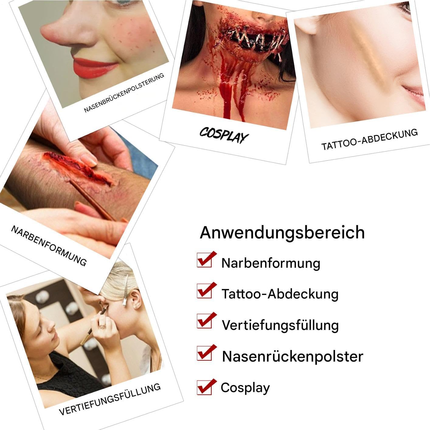 Uso multifunzionale: perfettamente adatto per spettacoli di Halloween e configurazioni creative di gioco di ruolo, fornisce un affidabile supporto teatrale FX per applicazioni versatili in contesti festosi-professionali con scenari interattivi in costume interattivo Dettagli della ferita: con dettagli realistici e texture velata, questo trucco per Halloween produce effetti drammatici grazie alla simulazione di lesioni accurate e all'impressionante finitura in gel di sangue Pratico effetto ferita cera: crea un trucco realistico per Halloween con cera morbida per una facile modellazione di protesi senza conoscenze preliminari, incluso design 3D per effetti di ferita rapidi Regalo fantastico: consente un'esperienza di costume coinvolgente con divertimento di trucco in comune e contiene una soluzione di archiviazione portatile per presentazioni creative di regali durante le feste festive Miglioramento del carattere clown: ottieni una vestibilità fantasia clown con una forma flessibile FX per la trasformazione del trucco e il contorno del viso, con modifica della struttura del naso e dettagli sulle protesi che coprono le sopracciglia per un look coinvolgente di Halloween