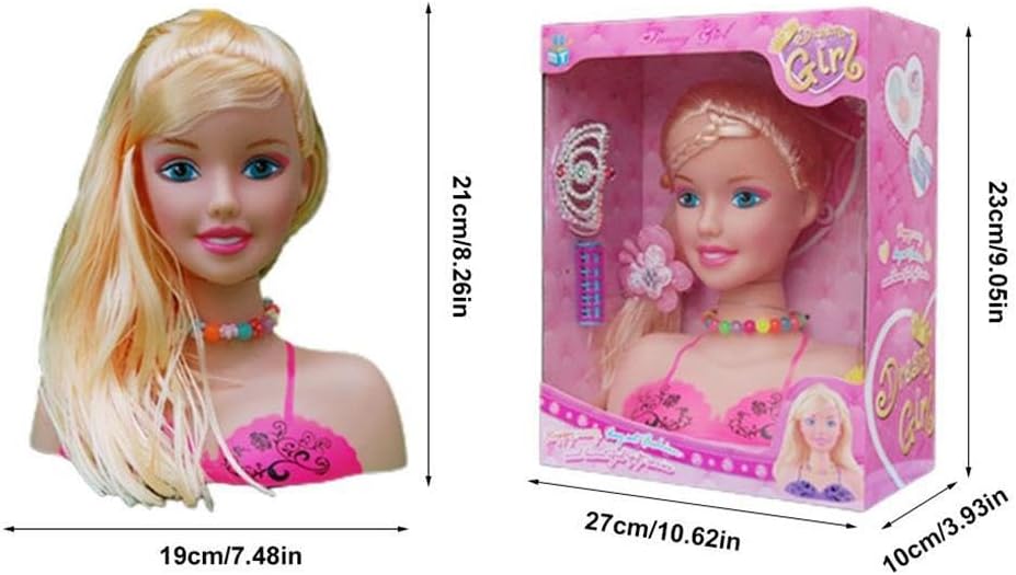 Materiale durevole: utilizzo di materiale plastico, pregevole fattura e buona consistenza, che può servirti per molti Design speciale: ragazze con la testa per l'acconciatura delle bambole che compongono un set da gioco con accessori di bellezza e moda Funzione utile: capelli morbidi e delicati, facili da pettinare, i bambini possono creare il proprio stile di capelli, ispirando la loro immaginazione Ottima fattura: bel design, dettagli raffinati e creatività individuale. Non puoi smettere di meravigliarti della sua pregevole fattura Strumento significativo: grandi regali per ragazze compleanno o regali di festa; Esercita l'abilità indipendente e l'abilità pratica dei bambini