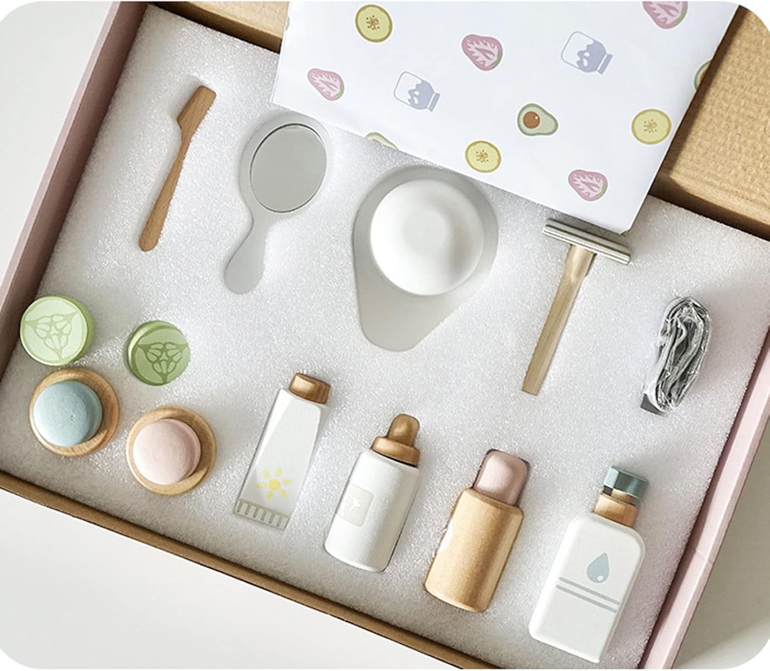 ▶ Design realistico per un gioco autentico: questo set di giocattoli per il trucco in legno è realizzato per imitare i veri articoli per la cura della pelle, con rappresentazioni realistiche di maschere, sieri, lozioni e creme. I bambini potranno godersi ore di gioco fantasioso mentre interagiscono con questi prodotti realistici, aiutandoli a comprendere la cura in modo divertente e interattivo. L'attenzione ai dettagli nel design li incoraggia a ricreare scenari di spa e bellezza con amici o fr ▶Migliora le capacità cognitive e motorie: progettato per l'apprendimento pratico, questo set di cosmetici di simulazione consente ai bambini di sviluppare il pensiero essenziale e le capacità motorie attraverso giochi di ruolo coinvolgenti. Mentre si esercitano ad applicare il trucco in vari scenari, miglioreranno la loro destrezza e coordinazione. Questo gioco elettronico incoraggia la creatività introducendo in modo sottile concetti relativi alla cura e alla cura del corpo. ▶ I colori vivaci stimolano il coinvolgimento: il set di giocattoli per il trucco è decorato con colori luminosi e caldi appositamente pensati per attirare l'attenzione dei bambini. Queste tonalità vivaci non rendono emozionante il momento del gioco, ma aiutano anche ad allenare le capacità di percezione dei colori, consentendo ai bambini di esplorare diverse combinazioni di colori mentre fingono di mescolare e abbinare i loro cosmetici. Questo aspetto del set da gioco promuove l'apprendime ▶ Materiali sicuri e adatti ai bambini: realizzato in legno di faggio di prima qualità, questo set per il trucco per bambini presenta una superficie liscia e priva di sbavature, garantendo un ambiente di gioco sicuro per i tuoi bambini. Ogni pezzo è progettato per resistere al gioco attivo mantenendo la sicurezza, così puoi stare tranquillo mentre tuo figlio si impegna in giochi di finzione. I materiali ecologici lo rendono una scelta sostenibile per le famiglie. ▶Ideale per travestirsi e giocare con fantasia: questo set di cosmetici in legno è una meravigliosa aggiunta alla collezione di giocattoli di ogni bambino, in particolare per coloro che amano travestirsi ed esplorare identità diverse. Il suo vasto assortimento incoraggia il gioco collaborativo, consentendo ad amici o fratelli di unirsi al divertimento. Questo aspetto interattivo potenzia le abilità sociali e promuove il lavoro di squadra, rendendolo non un giocattolo, ma un'esperienza arric