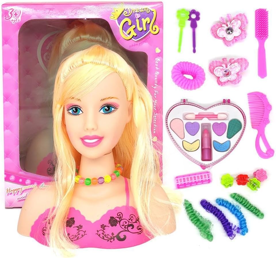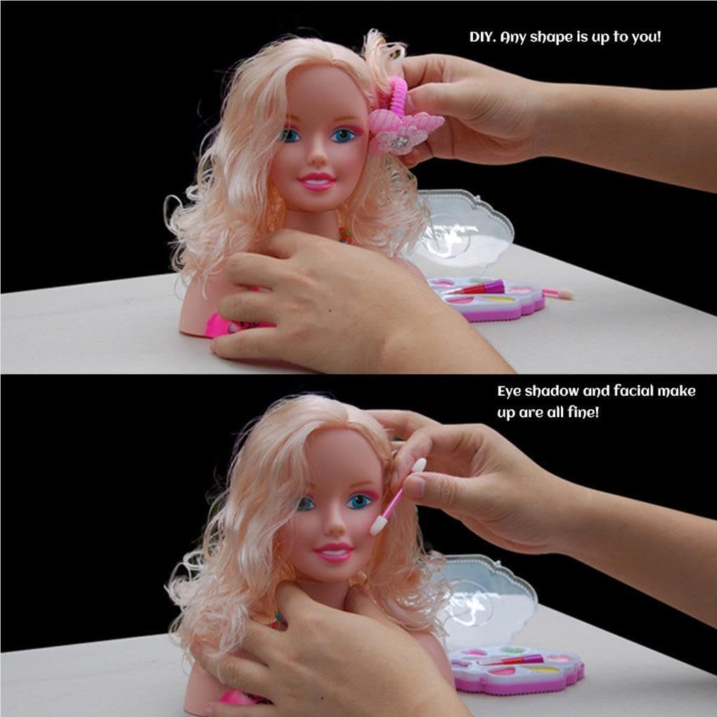 Materiale durevole: utilizzo di materiale plastico, pregevole fattura e buona consistenza, che può servirti per molti Design speciale: ragazze con la testa per l'acconciatura delle bambole che compongono un set da gioco con accessori di bellezza e moda Funzione utile: capelli morbidi e delicati, facili da pettinare, i bambini possono creare il proprio stile di capelli, ispirando la loro immaginazione Ottima fattura: bel design, dettagli raffinati e creatività individuale. Non puoi smettere di meravigliarti della sua pregevole fattura Strumento significativo: grandi regali per ragazze compleanno o regali di festa; Esercita l'abilità indipendente e l'abilità pratica dei bambini