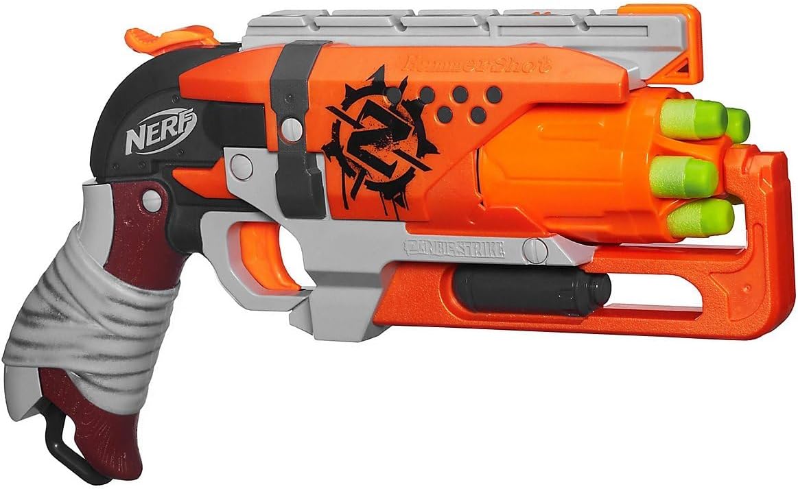 L'irresistibile set completo con 2 blaster e tutto il necessario per il montaggio a doppio filo Fullmetal. Questo fantastico set di tuning porta tutto il doppio per iniziare subito: blaster, molla, rubinetto in metallo e grilletto Mega bundle completo con 2 blaster, 2 molle tuning, 2 rubinetti a torretta e grilletto in metallo Il popolare classico NERF con funzionamento con una sola mano – Revolverblaster con tamburo rotante a 5 freccette e elegante meccanismo a martello 2 volte Elegante rubinetto per revolver e grilletto in metallo da montare nel Hammershot garantiscono una sensazione di torretta senza precedenti – più di una porzione extra di stile per il vostro blaster – variante di colore più brillante rispetto al set in metallo da pistola Aumento delle prestazioni fino al 70% grazie alle molle più forti. Montaggio semplice, con istruzioni di montaggio e grasso lubrificante