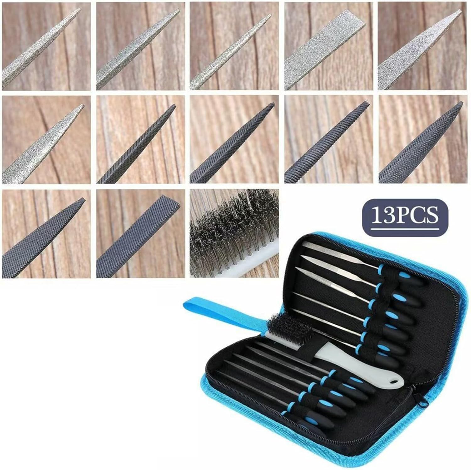 Scopri precisione e versatilità con il nostro set di lime da 13 pezzi, dotato di lime in acciaio e una spazzola per la pulizia inclusa per le tue esigenze di modellatura Questo set di strumenti portatili offre diverse dimensioni e forma, rendendolo un'aggiunta essenziale a qualsiasi cassetta degli attrezzi per coloro che cercano una lavorazione artigianale dettagliata Ideale per artigiani professionisti, appassionati di artigianato, modellisti e chiunque richieda un lavoro di finitura delicato Per la lavorazione del legno, la lavorazione dei metalli, la creazione di gioielli, la rifilatura e altre complesse attività Ogni lima è realizzata in metallo robusto con manici antiscivolo, garantendo una macinazione precisa e una presa comoda durante l'uso prolungato