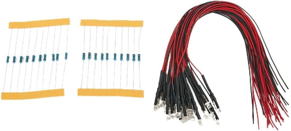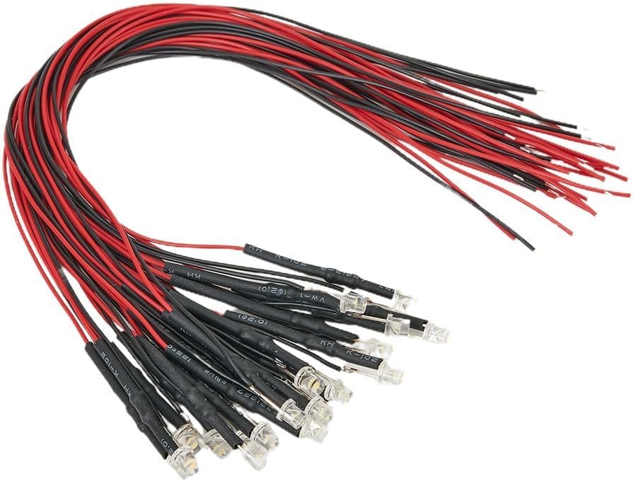 【Set di luci LED bianche calde cablate da 3 mm】 Set di luci LED da 20 pezzi con colore bianco caldo. Ogni luce viene fornita con un cavo da 20 cm, che la rende comoda per l'installazione. 【Perfetto per layout ferroviari ed edifici】 Ideale per illuminare layout di treni, case delle bambole, stanze in miniatura o accessori laterali per modellini di binari ferroviari. Migliora il realismo generale e l'atmosfera del diorama. 【Illuminazione uniforme con ampio angolo di visione】 L'angolo di visione di 120° per un'illuminazione uniforme e ampia dell'area, garantisce una distribuzione uniforme della luce su tutto il display. Compatibile con 12 V ~ 18 V CA/CC: progettato per funzionare con un intervallo di tensione di 12 V ~ 18 V, compatibile con fonti di alimentazione CA e CC. Richiede una resistenza da 1000 ohm durante il collegamento per il corretto funzionamento. 【Dimensioni compatte e installazione semplice】 Con una dimensione compatta di 3 mm, queste luci a LED possono essere facilmente installate in diverse impostazioni. La confezione include 20 strisce luminose LED e 20 resistori per una comoda configurazione.