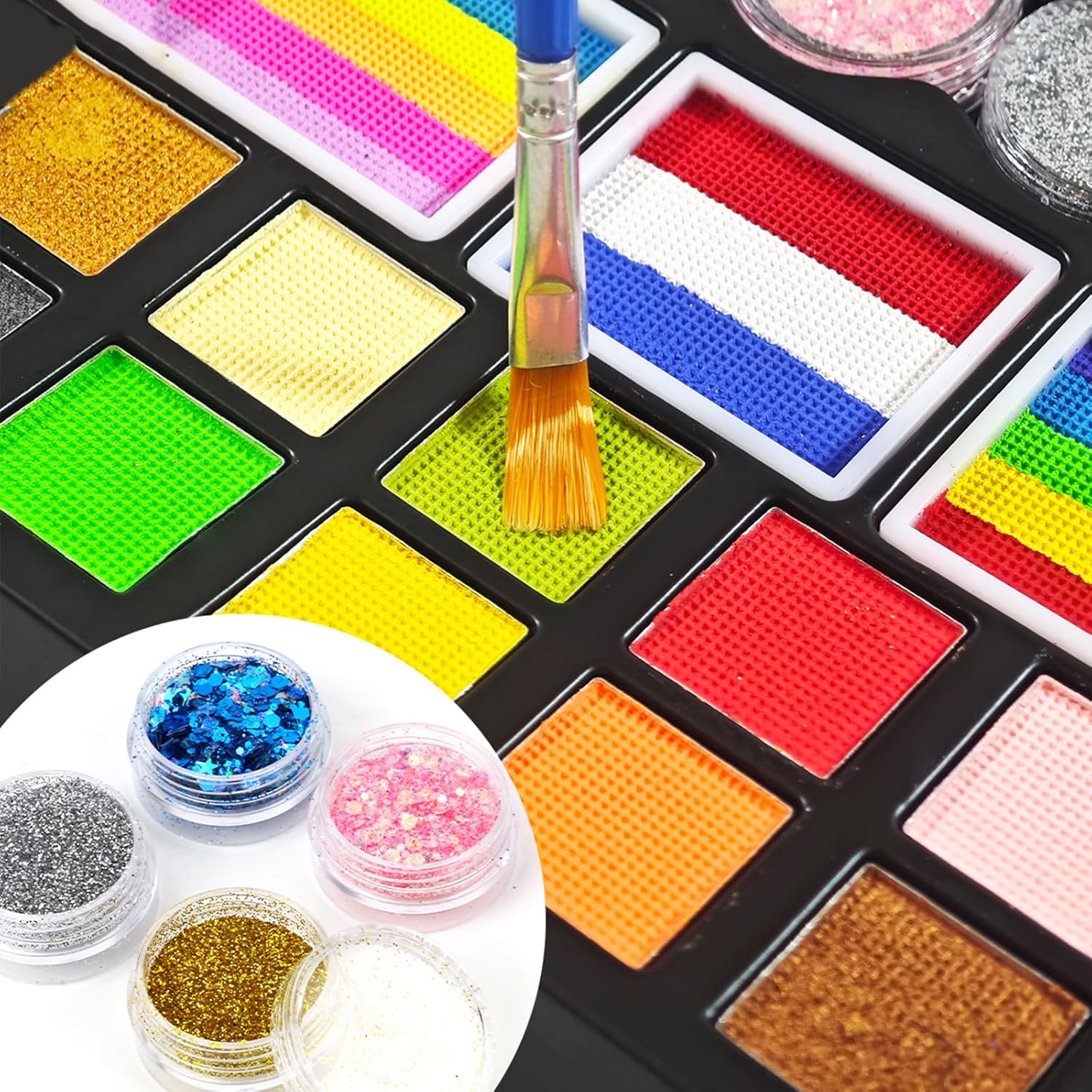 Facile da usare: il nostro kit di pittura per il viso deve essere miscelato con acqua prima dell'uso, aggiungere alcune gocce d'acqua al colore desiderato per rendere la superficie una pasta, quindi applicarla uniformemente sulla superficie della pelle con un pennello. Dopo che la festa è finita, puoi pulirla con asciugamani di carta bagnati o asciugamani di sapone Materiali sicuri: il nostro kit di pittura per il viso è realizzato con ingredienti di alta qualità, quindi le nostre vernici per il viso sono sicure anche per le pelli più sensibili Fornisce idee e modelli: oltre a fornire 24 colori vivaci per il viso, forniamo anche diversi modelli di disegno a colori del viso. Il libro guida per la pittura del viso fornisce disegni e idee per la pittura del viso, rendendo la pittura facile con istruzioni passo passo Il regalo definitivo per i bambini: questa vernice professionale per il corpo è un regalo emozionante e memorabile per i bambini e i loro amici. Ricco di tutto il necessario per ore di divertimento creativo, ideale per feste di compleanno, cosplay, Pasqua, carnevale, Halloween, Natale e altri giorni di celebrazione Ampio utilizzo: questo vestito per pittura del viso è molto adatto per feste di compleanno, decorazioni di Halloween in interni, vernici per il viso in maschera, Natale, modellazione del trucco da sposa, insegnamento del trucco e molto altro ancora