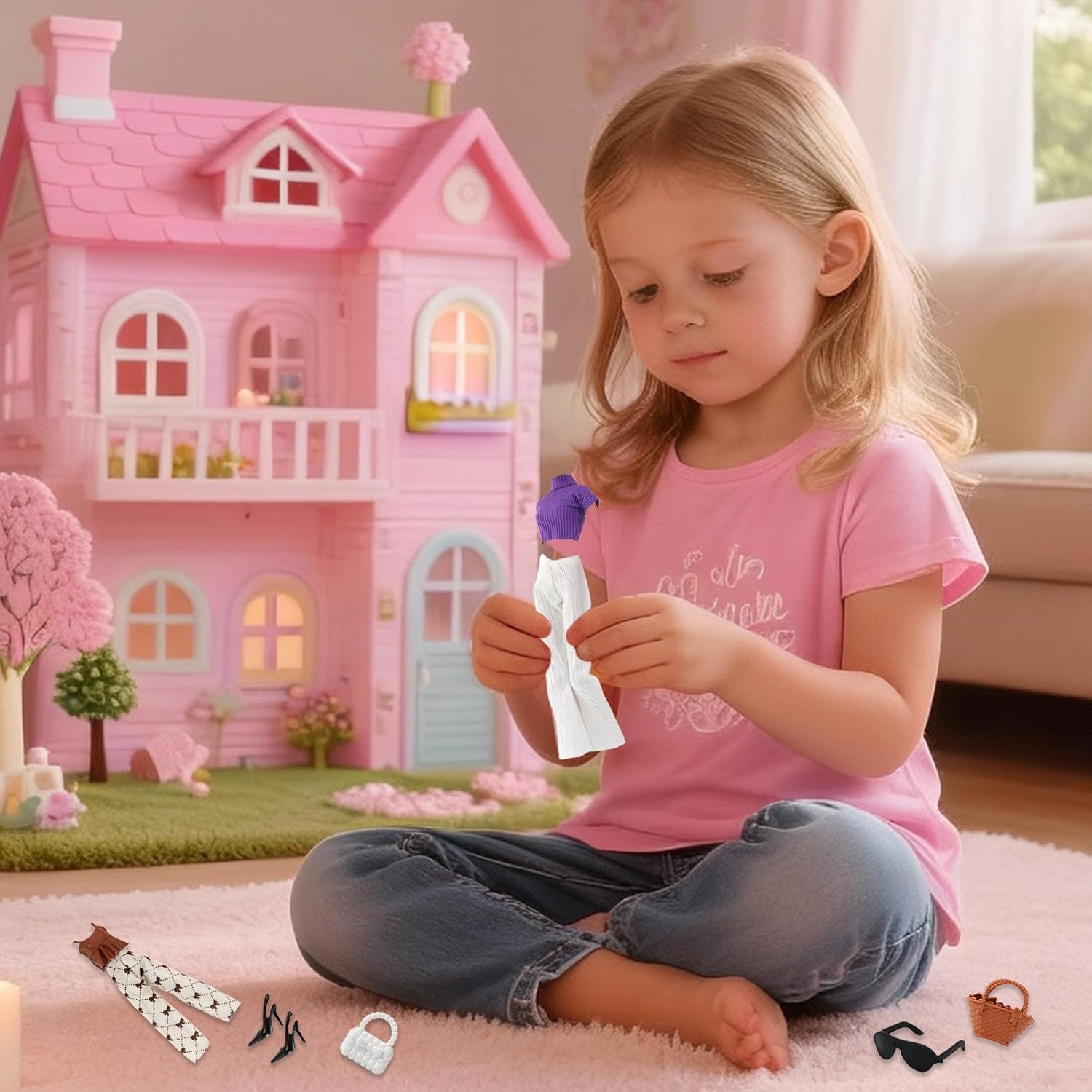La confezione include: Questo vestito per bambole da 11,8 pollici comprende 4 top eleganti e 4 pantaloni abbinati, 2 bellissimi abiti da principessa, 4 borse abbinate, 6 tacchi alti, 1 paio di occhiali da sole, 1 corona, 1 collana. Adatto per bambole da 11,5 pollici: i nostri vestiti per bambole sono adatti per bambole da 11,5 pollici e possono adattarsi perfettamente sia seduti che in piedi. Nota: vendiamo solo vestiti e accessori, la bambola è solo un modello e non è inclusa nella confezione. Materiali di alta qualità: gli accessori per vestiti per bambole sono realizzati con cura a mano con tessuti di alta qualità. Morbido e resistente, comodo ed elegante, dai tagli netti, può essere utilizzato ed esposto a lungo. L'abbigliamento e gli accessori sono progettati con cura e resistenti allo sbiadimento. Sono adatti per l'uso quotidiano. Facile da indossare e da togliere: questi vestiti per bambole alla moda adottano un design pratico. La parte posteriore dei vestiti ha un design adesivo, che è comodo da indossare e da togliere per i bambini, consentendo loro di tenere, indossare e togliere comodamente la bambola. I bambini potranno facilmente abbinare il prodotto in base alle loro preferenze. Anche la dimensione degli altri accessori è molto adatta per le bambole e facile da indossare. Il regalo perfetto: questi vestiti per bambole da 30 cm non sono solo un regalo perfetto per bambini di tutte le età e collezionisti di bambole, ma anche un regalo ideale per le festività natalizie, adatto per compleanni, Ringraziamento, Natale, Halloween e riunioni di famiglia.