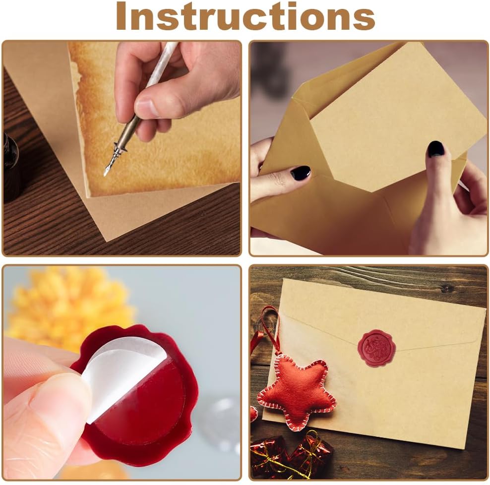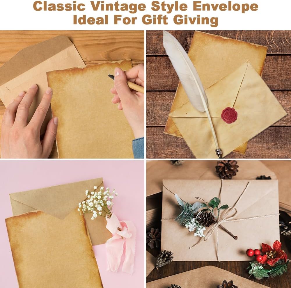 【Set di Buste Vintage】 Carta vintage Set include 10 fogli di buste vintage, 16 fogli di carta intestata vintage, 10 adesivi con sigillo in ceralacca "per voi"; un set completo di buste dal design vintage può soddisfare le vostre diverse esigenze. 【Materiale di Alta Qualità】 Carta da lettere vintage in carta kraft di alta qualità, con texture vintage; scrittura scorrevole, raccolta a lungo termine senza preoccupazioni; l'inchiostro viene assorbito in modo uniforme, liscio e durevole, i motivi e i colori vintage conferiscono alle buste e alla carta intestata un'atmosfera più vintage ed elegante. 【Ridurre L'affaticamento Visivo】 Carta da lettere vintage con busta Modelli vintage, colori caldi, fascino storico. Il colore marrone antico riduce i riflessi e l'affaticamento visivo della scrittura. 【Design Vintage Degli Adesivi per Sigilli】 Carta vintage con buste Viene fornito con un adesivo di chiusura rotondo, ideale per proteggere la privacy. Adotta un design in stile vintage. Questo particolare colore ha un fascino storico, un design elegante e si abbina alla classica carta da lettere in pelle di mucca per riempire le lettere. 【Carta da Lettera Vintage A5】 Utilizzo buste di cancelleria vintage Può essere utilizzata per lettere di ringraziamento a parenti o amici, inviti misteriosi, vecchi menu, decorazioni vintage, finte lettere antiche, lettere d'amore vintage, mappe del tesoro, dipinti classici, lettere di anniversario o di laurea.