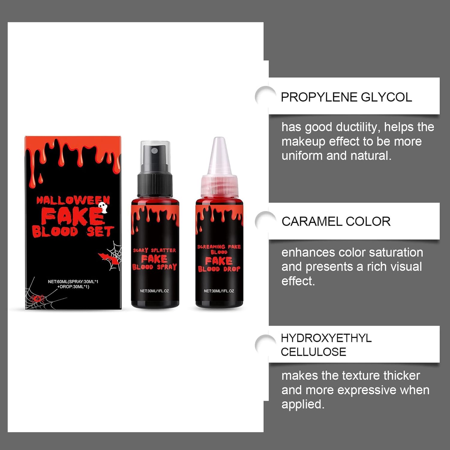 Ampia compatibilità: offre versatilità da abbinare a maschere e costumi, ideale per migliorare le performance a tema nelle escape room di Halloween, creando un'atmosfera coinvolgente sia nell'uso individuale che di squadra Rimozione senza sforzo: rimozione facile e sicura con formula a base d'acqua non irritante, ideale per l'uso temporaneo sui tessuti senza lasciare residui o causare irritazioni alla pelle durante il processo Design realistico del sangue antico: crea un aspetto autentico del sangue invecchiato attraverso un design versatile che combina texture spesse e fini, adatto per costumi da zombie, vampiri e altre esigenze di trucco a tema. Facilità di applicazione: sperimenta una facile applicazione di sangue finto con particolare attenzione alla facilità d'uso, incluso un applicatore spray che consente regolazioni di copertura e confezionamento adatte a gruppi che supportano più utenti in eventi a tema o spettacoli creativi con controllo completo del flusso e dettagli Realistic Splash Design: crea un impatto visivo con un effetto gocciolamento e schizzi sul tuo trucco horror utilizzando sangue finto delicato sulla pelle che offre texture di coagulazione accuratamente realizzate per un effetto sangue altamente realistico