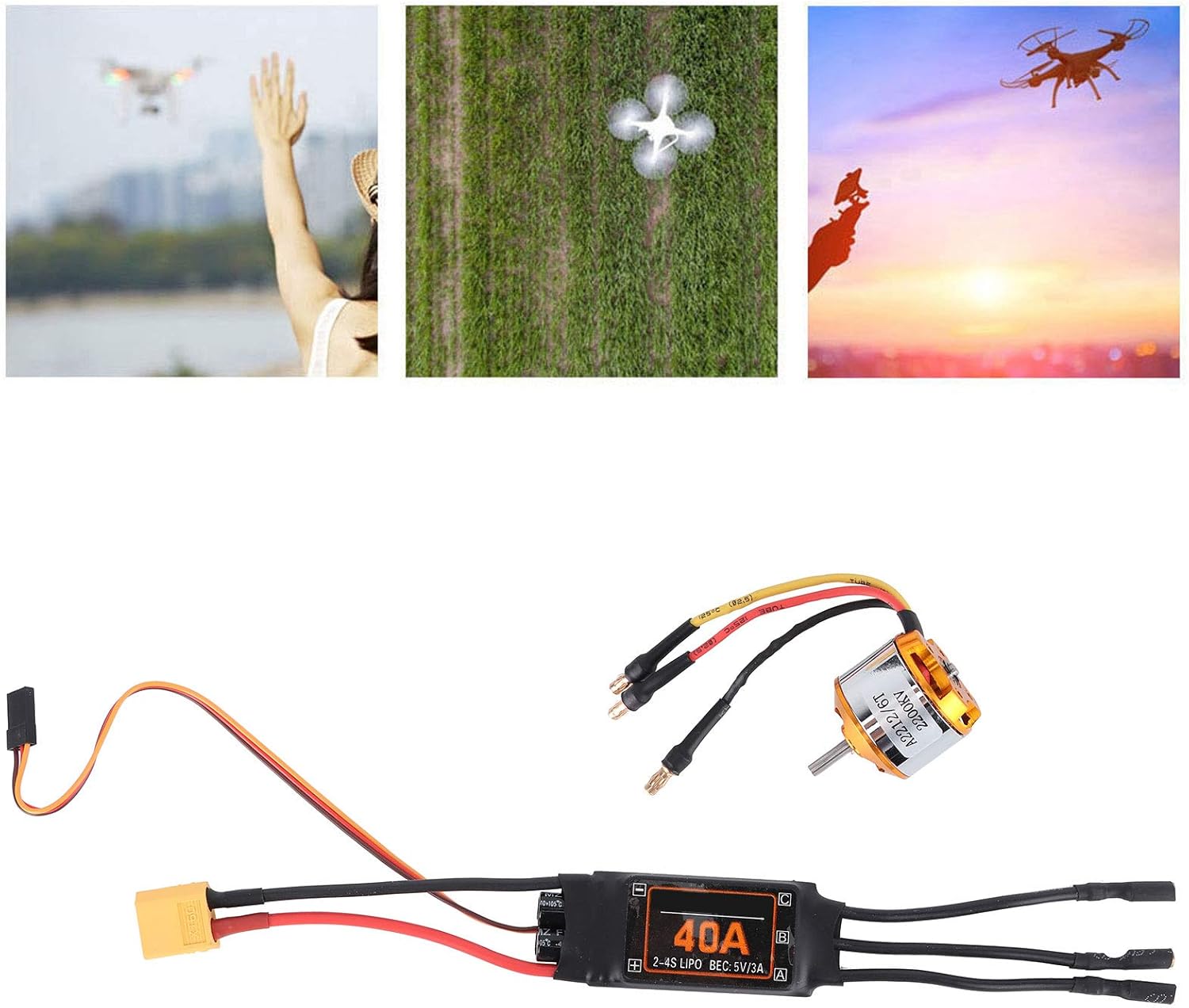 Materiale in PVC: il set ESC del motore RC è realizzato in materiale PVC di alta qualità, resistente all'usura, allo strappo, durevole e di lunga durata. Protezione completa: il kit ESC Motor RC fornisce una protezione completa per la tua auto RC, ad es. B. Protezione da interruzione di corrente a bassa tensione, protezione da surriscaldamento, protezione da perdita di segnale dell'acceleratore, ecc. Prestazioni eccellenti: il kit ESC del motore per auto RC ha prestazioni eccellenti, leggerezza, funzionamento stabile, basso rumore, funzionamento facile e può migliorare le prestazioni generali. Facile da usare: il kit ESC per motore per auto RC è facile da usare. Dopo aver collegato la batteria, il motore non ruoterà indipendentemente dalla posizione in cui si trova la leva dell'acceleratore. Applicazione: il controller brushless da 40 A è compatibile con batterie al litio e batterie all'idruro metallico, adatto per droni RC, elicotteri, ecc.