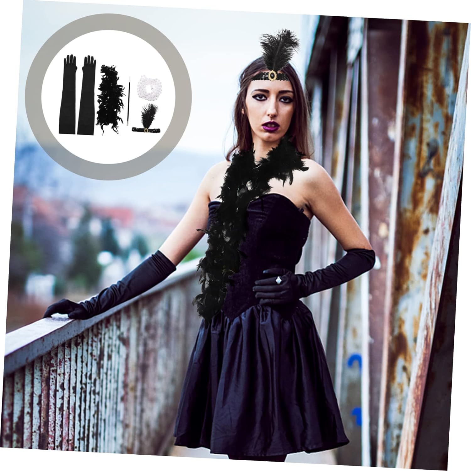 dei pacchetti 1 paio di guanti, 1 collana, 1 supporto, 1 fascia per , 1 sciarpa Caratteristiche - Dimensioni dei guanti: circa 52,00X10,00X0,50 cm/20,44X3,93X0,20 pollici fasce per - Materiale: poliestere, accessori per per feste in maschera in ABS - Dimensioni del supporto: circa 22,00X1,00X1,00 cm/8,65X0,39X0,39 pollici accessori per in stile vintage - Il design in stile flapper anni '20 può mettere in risalto il tuo aspetto e catturare l'attenzione di tutti tra i cerchietti per in stile flapper per le donne. - Adatto a molteplici occasioni, offre un'ottima protezione e conferisce un aspetto meraviglioso ai cerchietti dei costumi delle tue bambine. - Accessori per costumi da adulti ColorBlack - È il momento di creare tu stesso i tuoi cerchietti vintage per la festa in maschera, che ti lasceranno un indimenticabile: cerchietti vintage per donna. - Design modellante a tema flapper per copricapo, aggiungerà un'atmosfera più ai tuoi cerchietti di Halloween. - Sono adatti per feste in maschera, feste di carnevale e alcuni festival, con l'uso decorativo di cerchietti e guanti. Descrizione della merce fascia e guanti Questi accessori degli anni '20 sono realizzati con buoni materiali per fasce leggere e vintage per le donne Il design in stile vintage con una consistenza confortevole e un design unico garantirà la sua praticabilità e popolarità come costumi per feste o feste cosplay