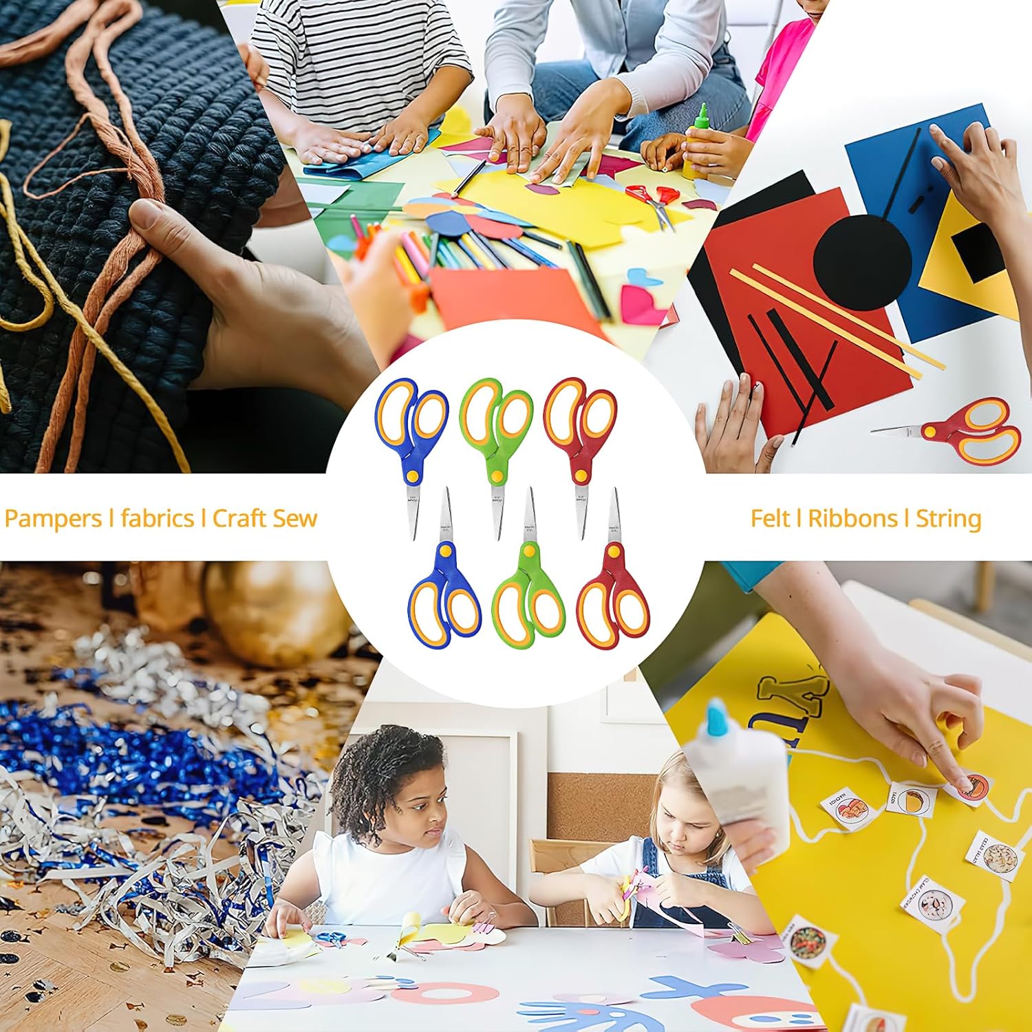 Perfetto per scuole e gruppi: questo set di forbici per bambini da 60 pezzi nei colori rosso, blu e verde è ideale per scuole, asili e gruppi di artigianato. Qualità durevole: perfetta per l'artigianato quotidiano e le attività in classe. Taglio sicuro grazie alla punta arrotondata: le forbici di sicurezza per bambini hanno una lama smussata in acciaio inossidabile con punta arrotondata. Tagliano in modo pulito carta, cartone o materiali artigianali, senza rischio di lesioni alle mani dei bambini piccoli. Design ergonomico per le mani dei bambini: le forbici artigianali per bambini hanno due fori per le dita di diverse dimensioni per una presa sicura e antiscivolo. Leggero e comodo da tenere in mano, perfetto per le mani dei più piccoli durante la lavorazione o l'apprendimento. Pratica dimensione universale: con una lunghezza di 13 cm, le colorate forbici per bambini sono adatte alla maggior parte delle mani dei bambini. Comodo da maneggiare, ideale per l'uso in classe o a casa. MULTIUSO - Perfetto per carta, cartoncino, schiuma, poster o progetti fai-da-te. Queste forbici di sicurezza per bambini sono essenziali per lezioni d'arte, lezioni di artigianato e progetti scolastici creativi.