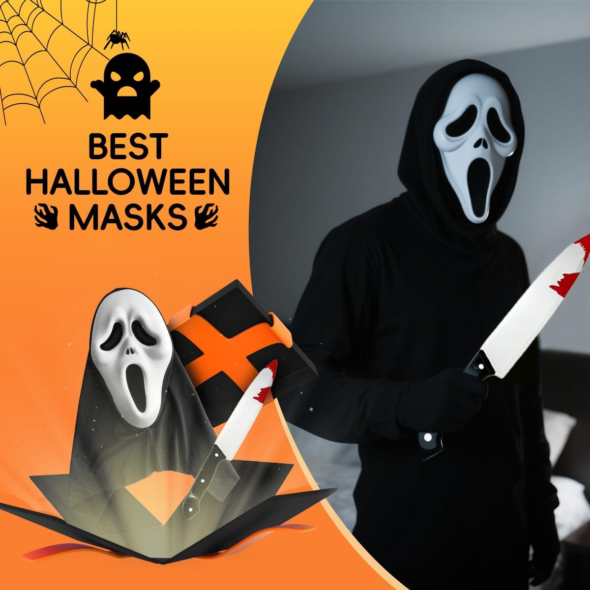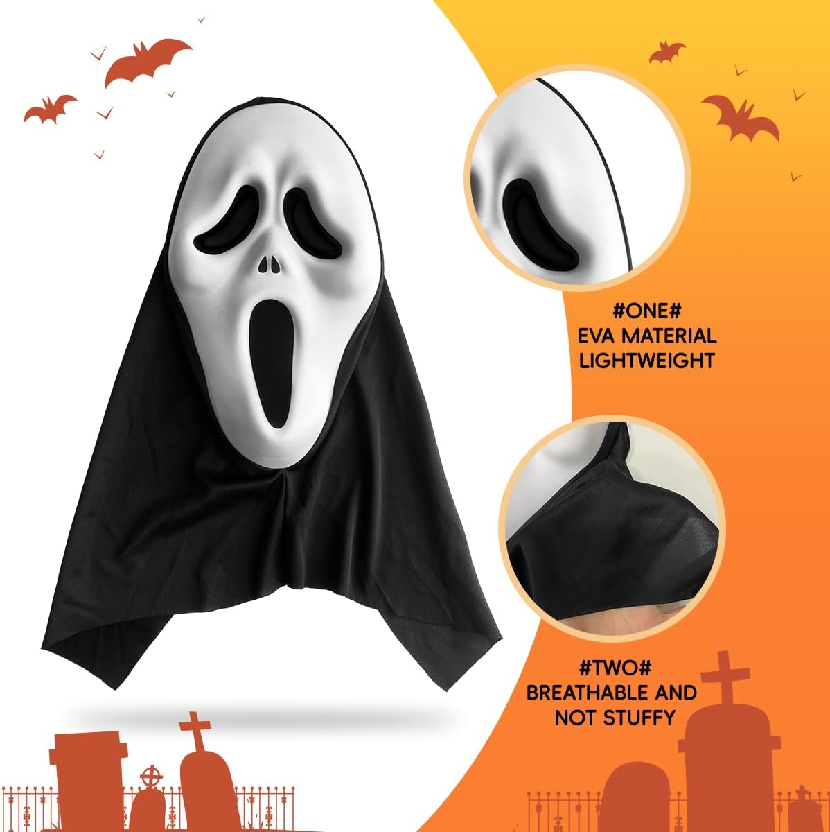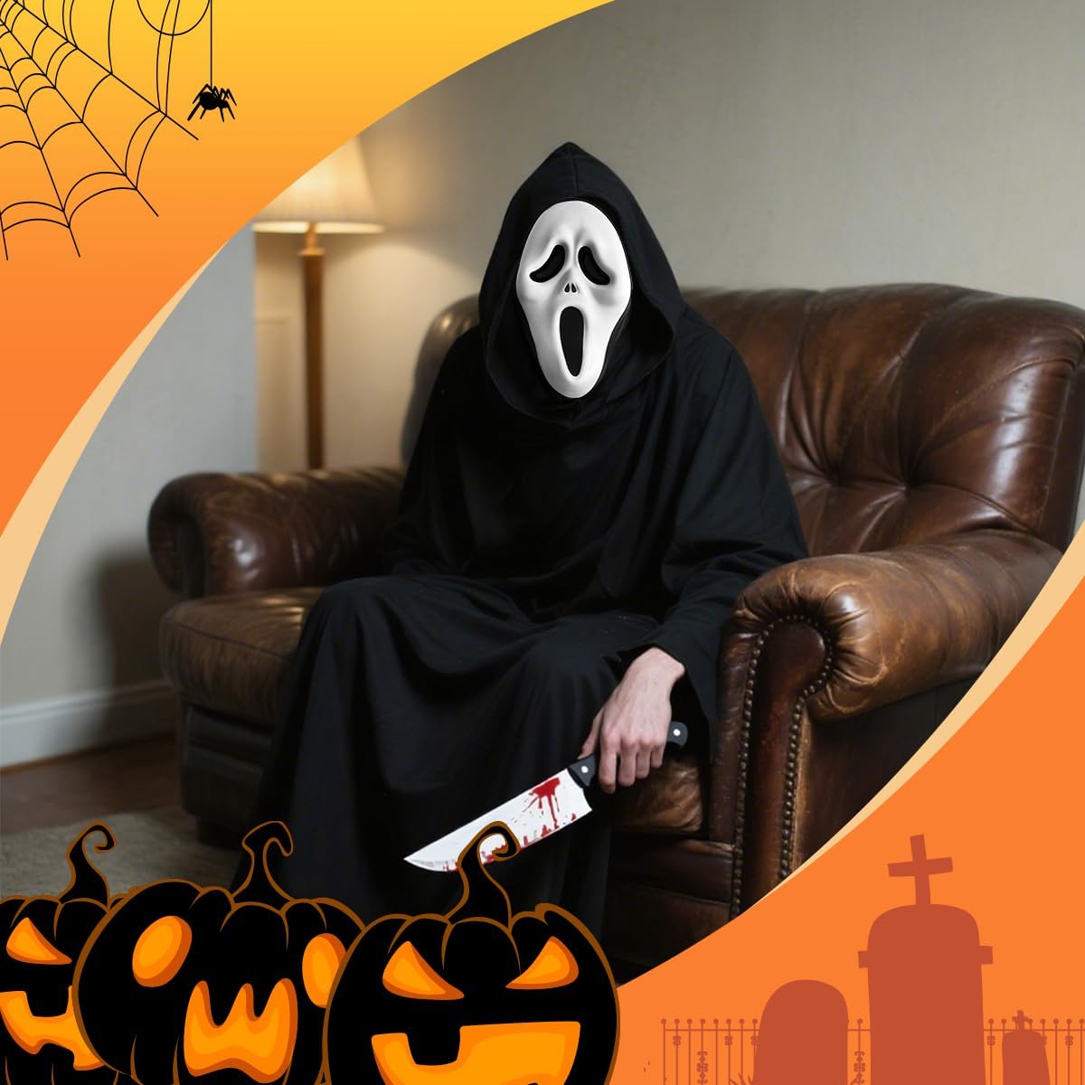 Descrizione prodotto Rehecher Set Maschera Halloween: 1 maschera ghostface (maschera scream/maschera horror) + 1 finto coltello in plastica insanguinata. In EVA ecologico – leggera, inodore, traspirante e sicura. Ideale per maschera halloween adulti, cosplay, feste in maschera. Regalo perfetto per Halloween, garantendo effetto terrificante e comfort prolungato. Avviso di sicurezza Adatto per feste in maschera per bambini di età superiore ai 10 anni