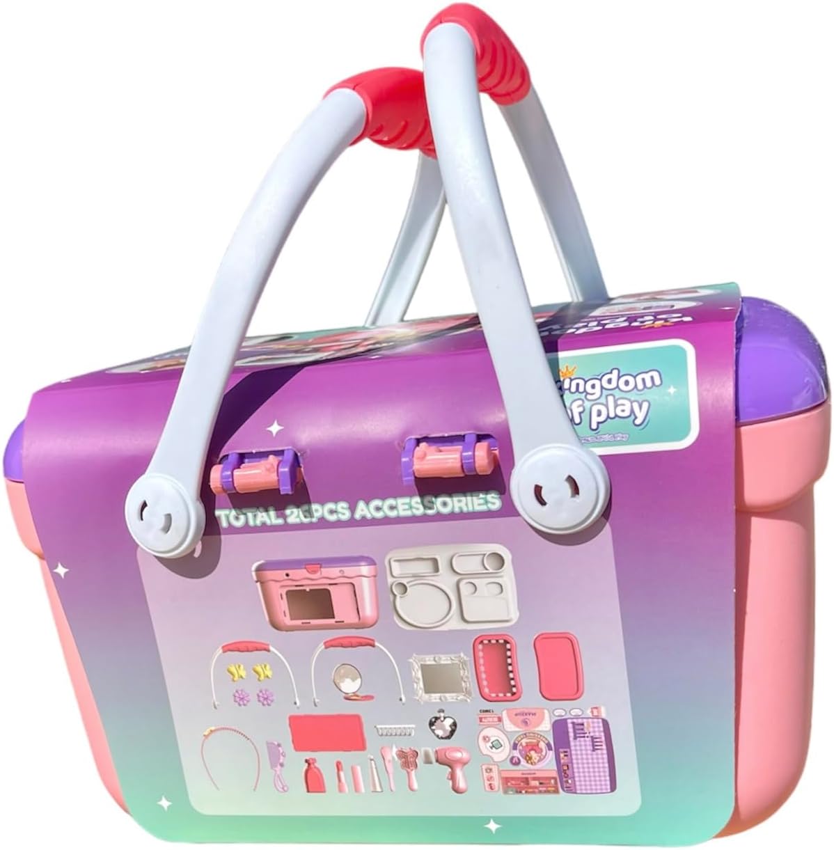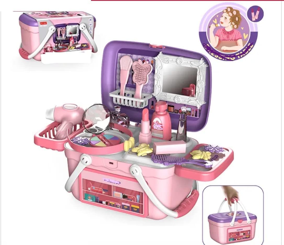 Set giochi di ruolo di bellezza 26 pezzi Comò Toeletta Cestino per il trasporto del trucco per ragazze Bambini 2 in 1