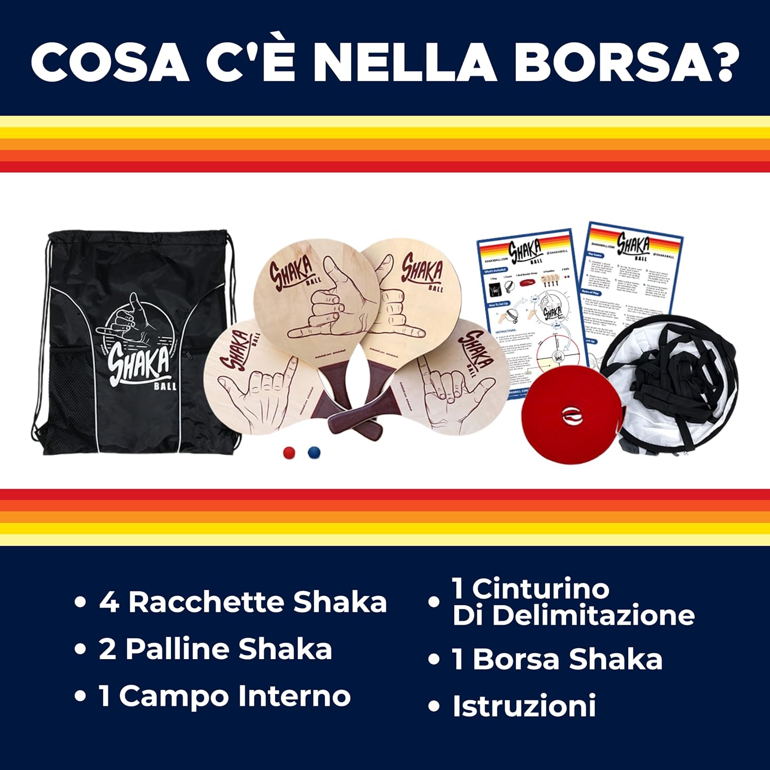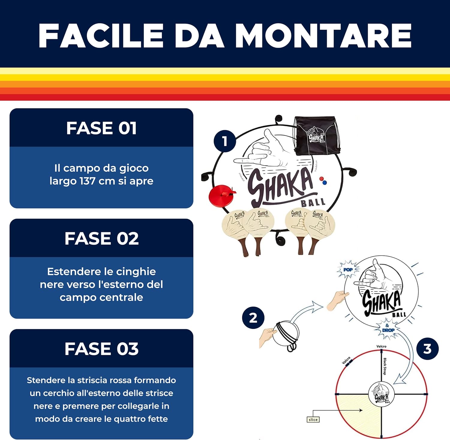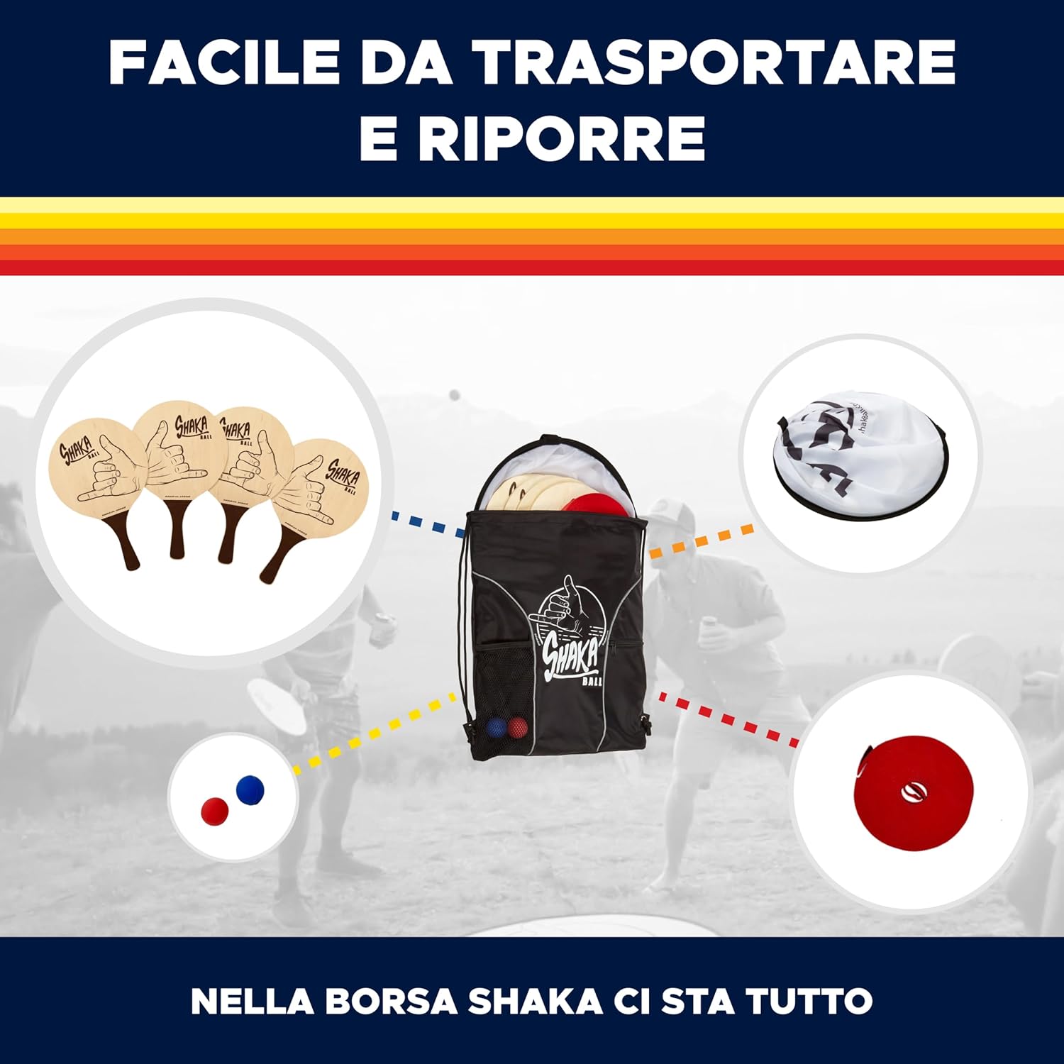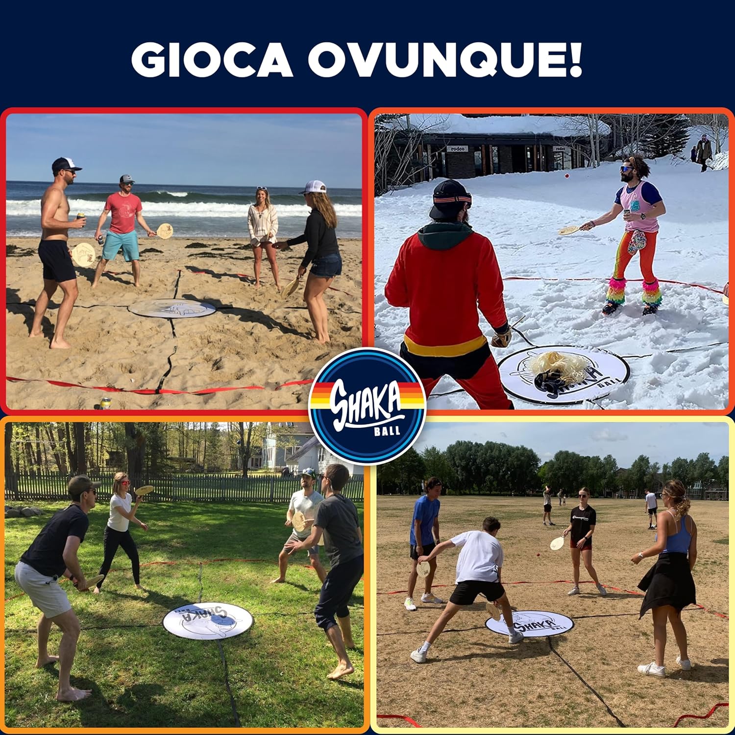 Divertimento per tutte le stagioni: Shaka Ball è perfetto per giocare in spiaggia, sulla neve, al parco o in giardino. Goditelo in inverno o in estate, durante vacanze, barbecue, picnic e feste. Divertimento garantito in ogni stagione e luogo! Facile trasporto e configurazione rapida: porta il tuo Shaka Ball in qualsiasi avventura. Si monta in meno di un minuto e si ripone facilmente nel suo zaino portatile. Ideale per bagagliaio, armadio o garage 💎 GAMEPLAY SEMPLICE E COMPETITIVO: inizia con 4 giocatori in diverse aree di campo. Azione veloce e strategica per proteggere la tua zona. Perfetto per giocatori dai 7 anni in su, promuovendo attività e divertimento Regalo ideale per tutte le età: Shaka Ball è un regalo a sorpresa per amici e familiari. Ideale per gli appassionati di giochi all'aperto, educazione fisica e divertimento in tutte le stagioni 🛡️ GARANZIA SHAKA BALL: Impegnati per la qualità. Se riscontri problemi, siamo qui per rimediare. La vostra soddisfazione è la nostra garanzia