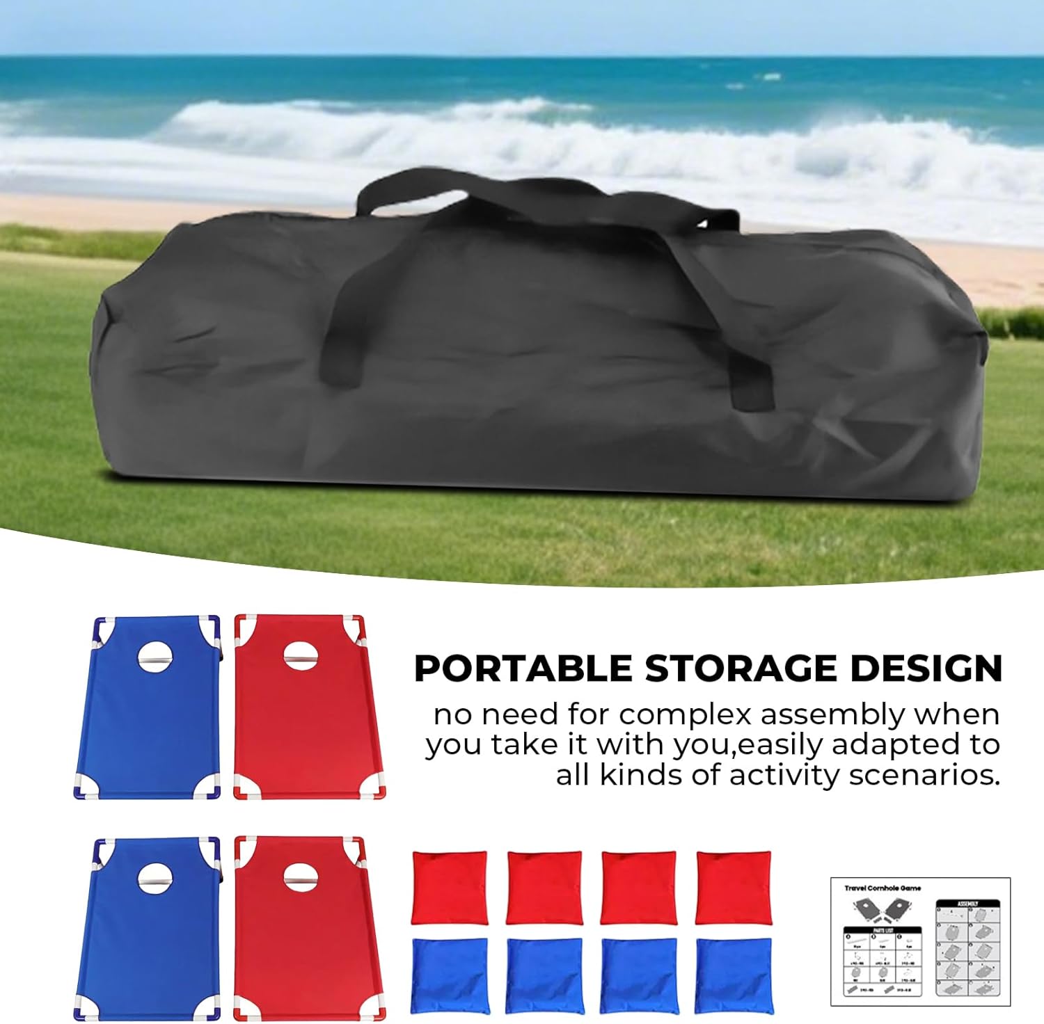 Polivalenza D'Uso: Con prestazioni ottimali in qualsiasi location, eccelle in prati residenziali, aree per famiglie, stanze ricreative coperte e patii , per un'esperienza ludica sempre coinvolgente Sicurezza Antiscivolo: Texture antiscivolo integrata nella struttura rinforzata a strati compositi previene scivolamenti durante l'uso, assicurando stabilità e resistenza all'usura nel Esperienza Coinvolgente: Offre un gioco collaborativo appassionante con varianti flessibili, completo di sacchetti sufficienti, kit di precisione e manuale illustrato per praticità. Set completo per giochi in famiglia e momenti di condivisione all'aria aperta. Trasporto semplice: Dotato di borsa leggera ed elementi pieghevoli, assicura preparazione veloce e movimentazione agevole, con design pratico di archiviazione portatile pensato per appassionati di attività esterne. Gioco di : Pannelli bicolori vivaci stimolano il lavoro di e migliorano la coordinazione occhio-mano, creando un'esperienza visiva coinvolgente che rende questo set da cornhole la scelta ideale per giochi attivi all'aperto