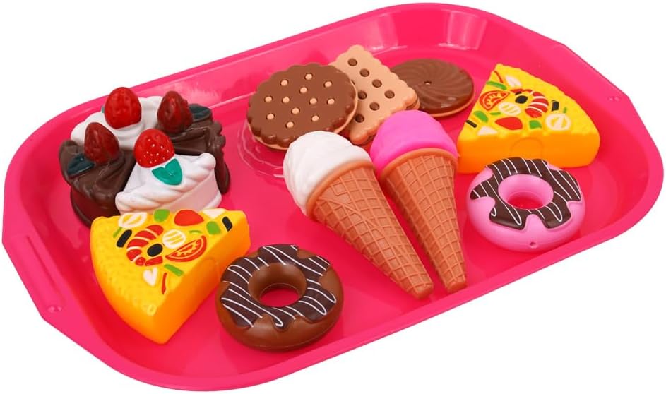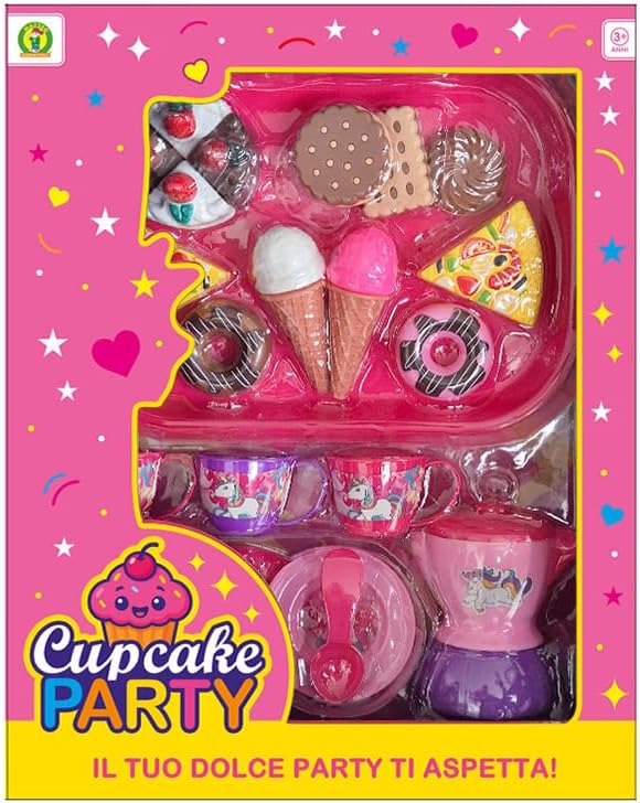 Tipo di prodotti: giochi cucina ed elettrodomestici Dimensioni: 43x8x34 cm (dimensione prodotto) Funzionamento: manuale Contenuto confezione: torte giocattolo, biscotti giocattolo, gelati giocattolo, ciambelle giocattolo, tazzine, macchinetta Età: 3+