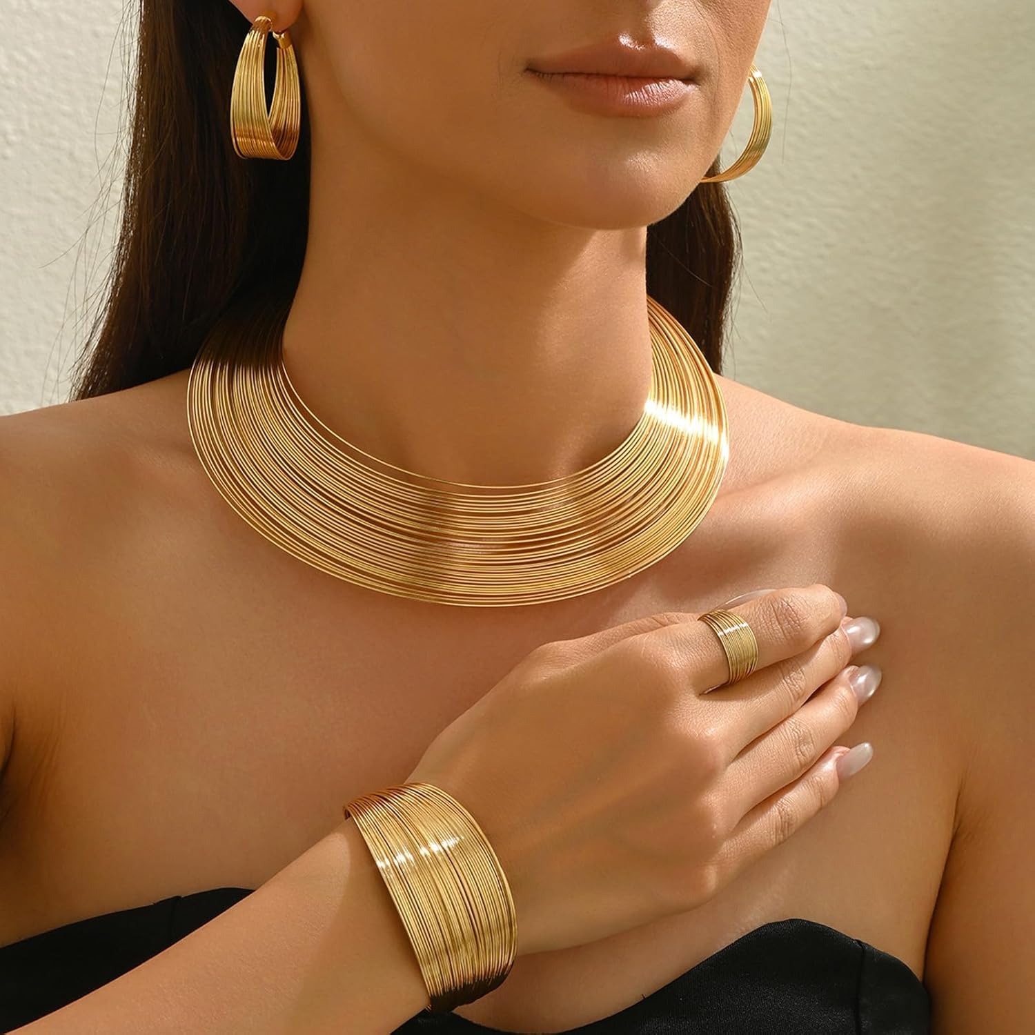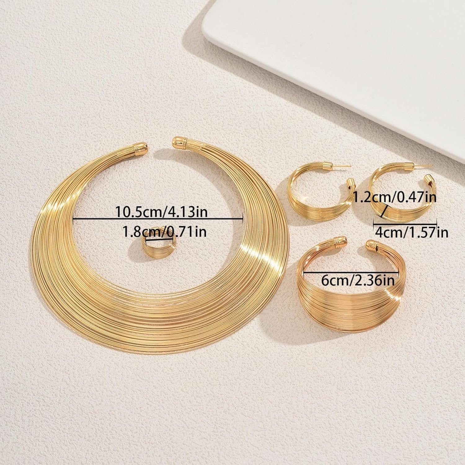 Set gioielli con apertura artistica Bracciale regolabile geometrico Collana a catena moderna Orecchini rotondi per abbinare qualsiasi outfit Caratteristiche: moderno set gioielli geometrici con design aperto regolabile offre un tocco versatile e artistico a qualsiasi outfit, perfetto per sovrapposizioni o tendenza indipendenti. Realizzato in lega leggera, questo set multistrato con collana, bracciale e presenta taglie flessibili vestibilità personalizzata e un comfort che dura tutto giorno. Ideale per le persone alla che cercano accessori minimalisti audaci per elevare proprio stile senza sforzo. Passa senza soluzione continuità dai completi casual da giorno agli abiti formali da con questa collezione gioielli impilabili e ispirazione geometrica. Un regalo premuroso per compleanni o anniversari, questo set gioielli alla unisce praticità eleganza contemporanea in ogni pezzo regolabile. Specifiche: Componente: lega Dimensioni: come mostra l'immagine La confezione include: 1x collana 1 paio orecchini 1x 1x braccialetto Nota: prega consentire errori 1-2 cm dovuti alla misurazione manuale. A causa delle differenze tra i diversi monitor, l'immagine potrebbe non riflettere colore effettivo articolo