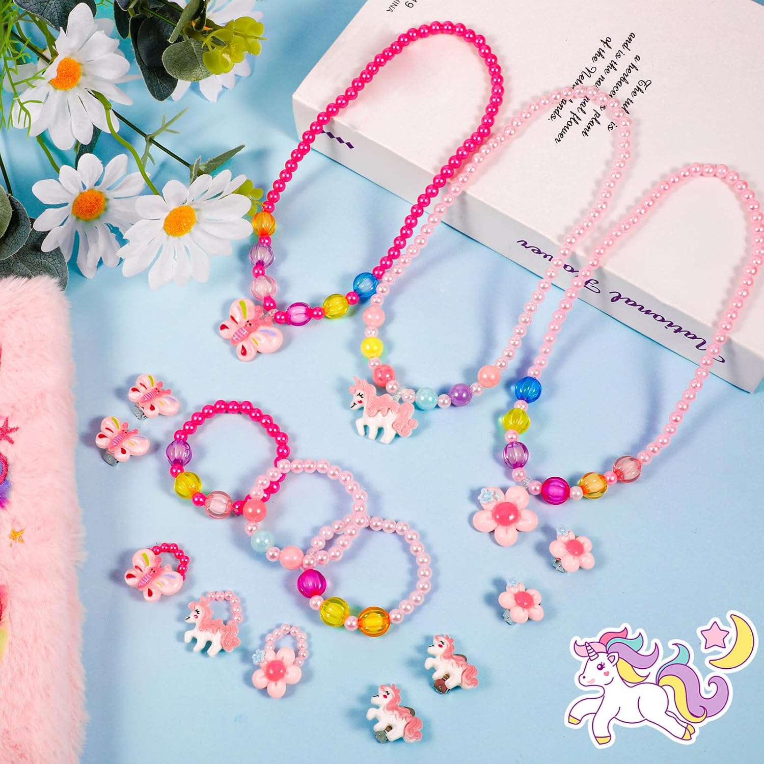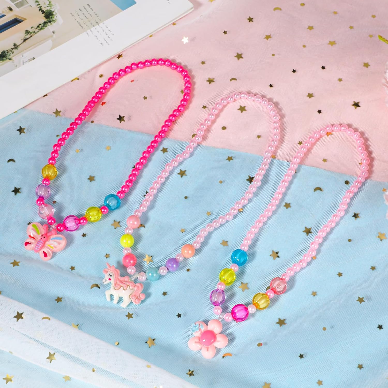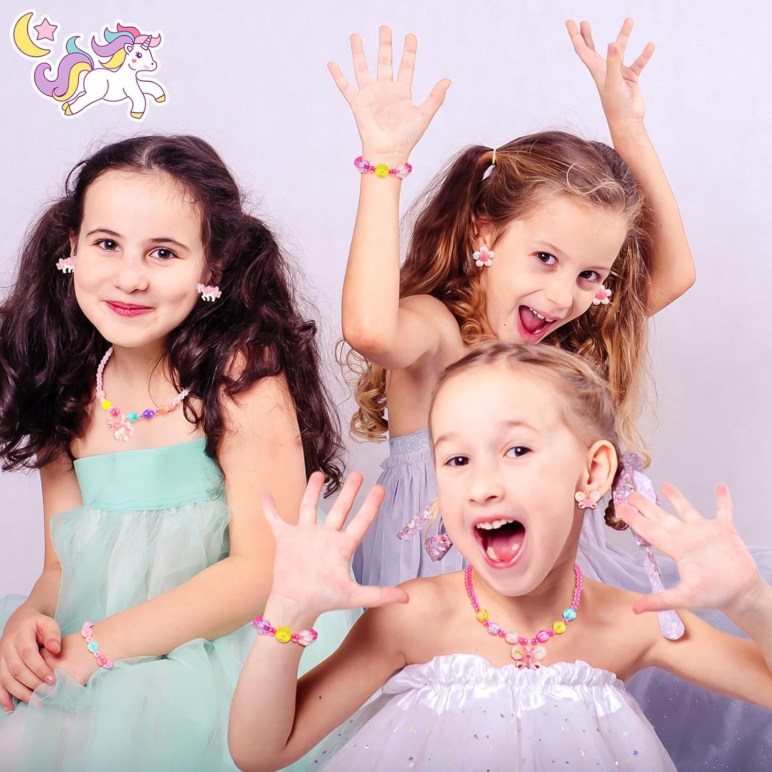 Il pacchetto include 3 x set di gioielli principessa con perline Specifiche: Colore: come mostrato nell'immagine Materiale principale: resina e perline Regala alla tua piccola principessa questa colorata selezione di gioielli da travestimento per bambine! Ogni confezione include quattro esclusivi set di gioielli in resina e perline in colori vivaci e brillanti. Per le bambine che vogliono giocare a travestirsi o semplicemente aggiungere accessori ai loro abiti quotidiani, questo set di gioielli per bambini è una buona idea regalo che porterà loro molta gioia. Le tue bambine saranno molto felici di ricevere questo dolce regalo per compleanni, festività, sorprese quotidiane, Natale, Festa dei bambini e così via.