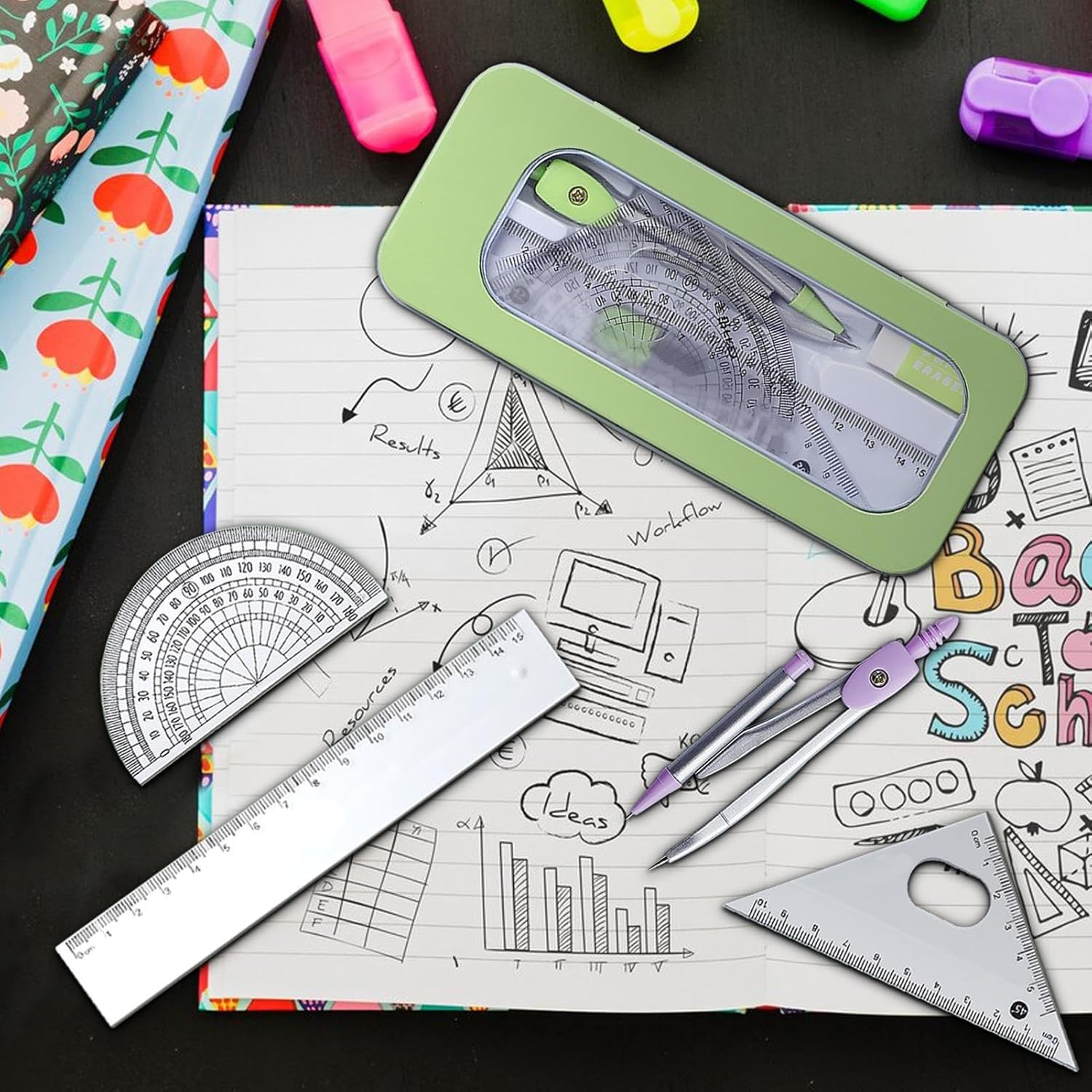 Strumenti professionali: scopri strumenti di creazione geometrica di alta qualità progettati per studenti e professionisti che desiderano migliorare le loro abilità di disegno con precisione e affidabilità Multifunzionale: il kit include bussola, strumenti multifunzionali e altri strumenti di disegno, rendendolo comodo e pratico per soddisfare le diverse esigenze di utilizzo Materiale resistente: realizzato con materiali di ottima qualità, questo set di geometrie garantisce una struttura solida e affidabile in grado di resistere all'usura a lungo, garantendo un uso a lungo termine e prestazioni facili Facile da trasportare: tieni i tuoi strumenti geometrici organizzati e a portata di mano durante le lezioni o lavora con il nostro set geometrico facile da trasportare. Dì addio a strumenti smarriti o mal posizionati e saluta comodità e sicurezza Perfetto per l'apprendimento: il nostro kit geometrico è essenziale per gli studenti che imparano la geometria e aiutano a sviluppare le competenze necessarie. Scelta perfetta per il ritorno a scuola e la necessità di migliorare le tue abilità matematiche