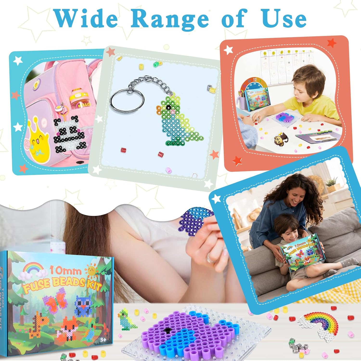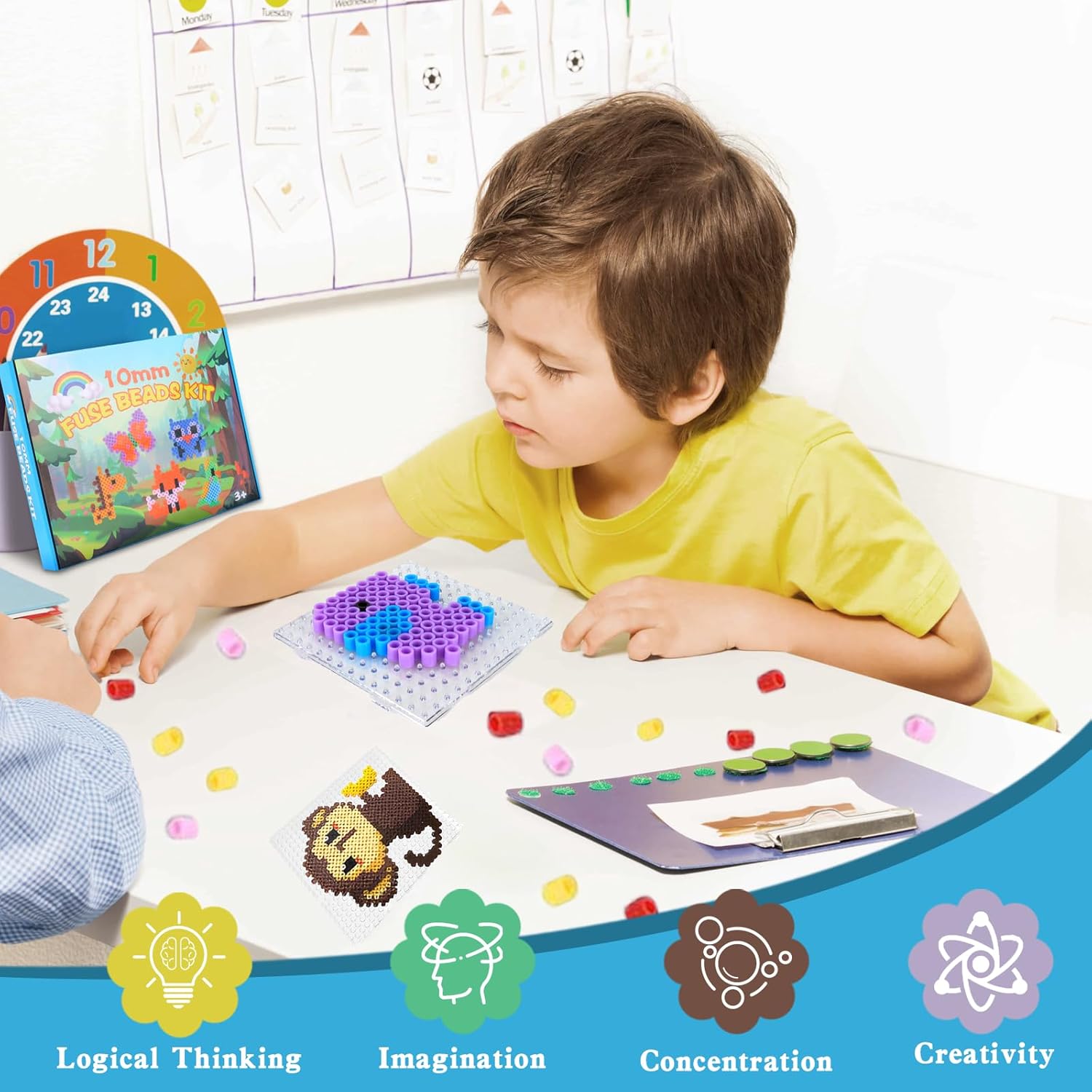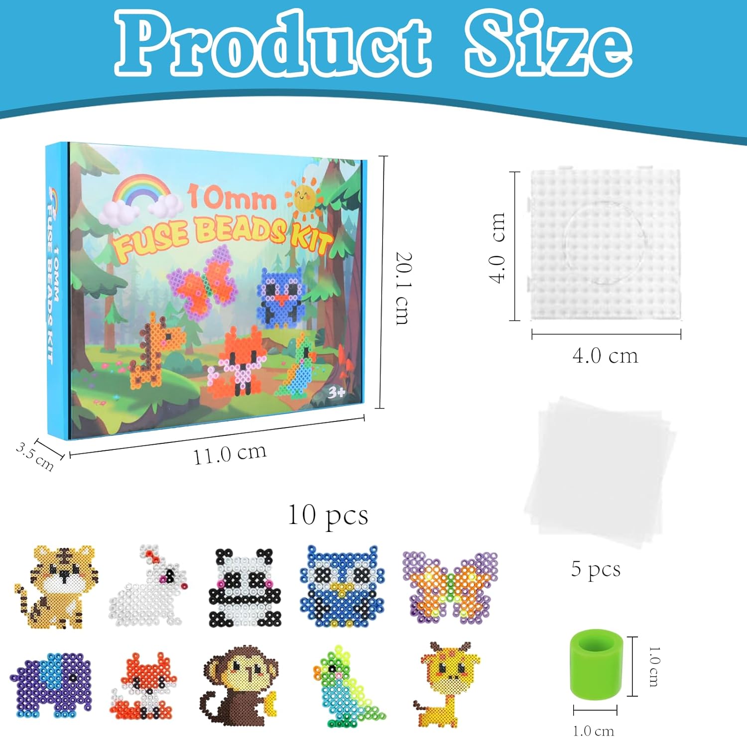 🐾【Set Grande di Perline da Stirare 10mm】 Un kit completo con circa 1000 maxi perline da stirare (10mm) in 12 colori, 10 modelli di animali, 1 base trasparente e 5 fogli di carta da stiro. Perfetto per il divertimento creativo dai 3 anni in su. 🐵【10 Adorabili Modelli di Animali】 Crea i tuoi animali con le perline da stirare: scimmia, giraffa, elefante, farfalla, pappagallo, coniglio, panda, gufo, volpe e tigre. Ideale per i piccoli amanti degli animali! 🧩【Materiali di Alta Qualità】 Le perline e la base sono realizzate in plastica di alta qualità, resistente e sicura. Non si sciolgono né si deformano durante la stiratura. Il numero di perline varia a seconda del modello. 🧠【Stimola la Creatività e la Motricità】 Questo set aiuta i bambini a riconoscere i colori e a migliorare la coordinazione occhio-mano. Stimola la loro immaginazione e li aiuta a sviluppare abilità manuali. Adatto anche agli adulti! 🎁【Regalo Perfetto per Ogni Occasione】 Questo set di perline da stirare 10mm è ideale per bambini dai 3 anni – perfetto per compleanni, Pasqua, feste per bambini o semplicemente per momenti creativi. Bambini e bambine lo adoreranno!