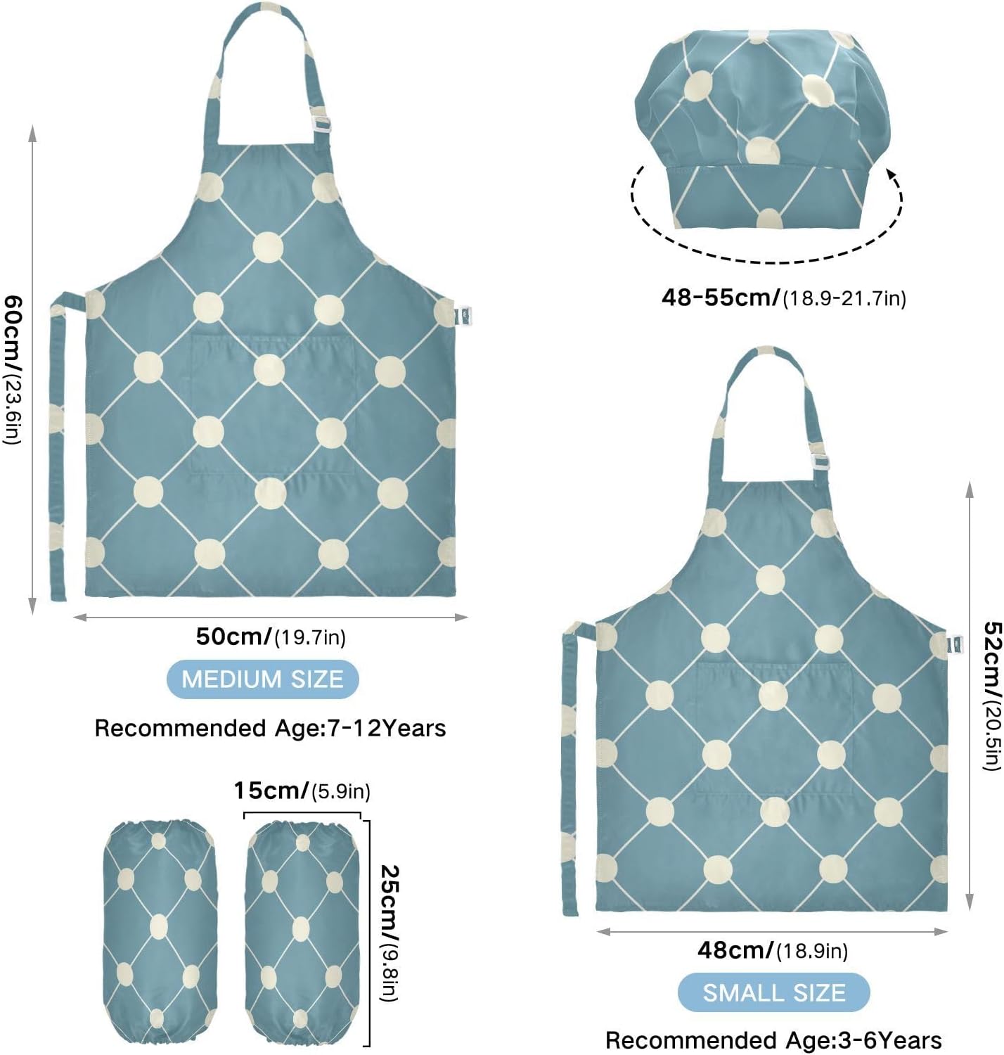 Dettagli del prodotto: Materiale: poliestere. La confezione include: 1 grembiule per bambini + 1 cappello da chef abbinato + 1 paio di maniche Dimensioni grembiule: S - 48 x 52,1 cm (età 3-5 anni), L - 19,7 x 59,7 cm (età 6-12 anni) Istruzioni per il lavaggio: Lavabile in lavatrice o a mano con acqua fredda. Perché sceglierci? Il nostro set di cappelli con grembiule per bambini è realizzato in poliestere di alta qualità, morbido al tatto e privo di sostanze chimiche, cinturino regolabile con lacci neri, morbido e confortevole, le cravatte lunghe possono essere facilmente modificate per adattarsi alla maggior parte delle dimensioni, adatte a diverse forme del corpo, sia un ragazzo che una ragazza, grasso o magro. I nostri simpatici grembiuli funzionali personalizzati con motivo vigoroso e design unico sono perfetti per tutti i tipi di occasioni, possono essere utilizzati per proteggere i vestiti durante la cottura, la cottura, l'artigianato, la pittura, il giardinaggio, il barbecue o qualsiasi altra cosa che potrebbe creare disordine. Questi set da cucina splendidamente progettati e confezionati sono anche un regalo perfetto per la cucina dei bambini, regalo per le vacanze e un regalo premuroso per i tuoi bambini che si divertono nella cottura e nella cucina.