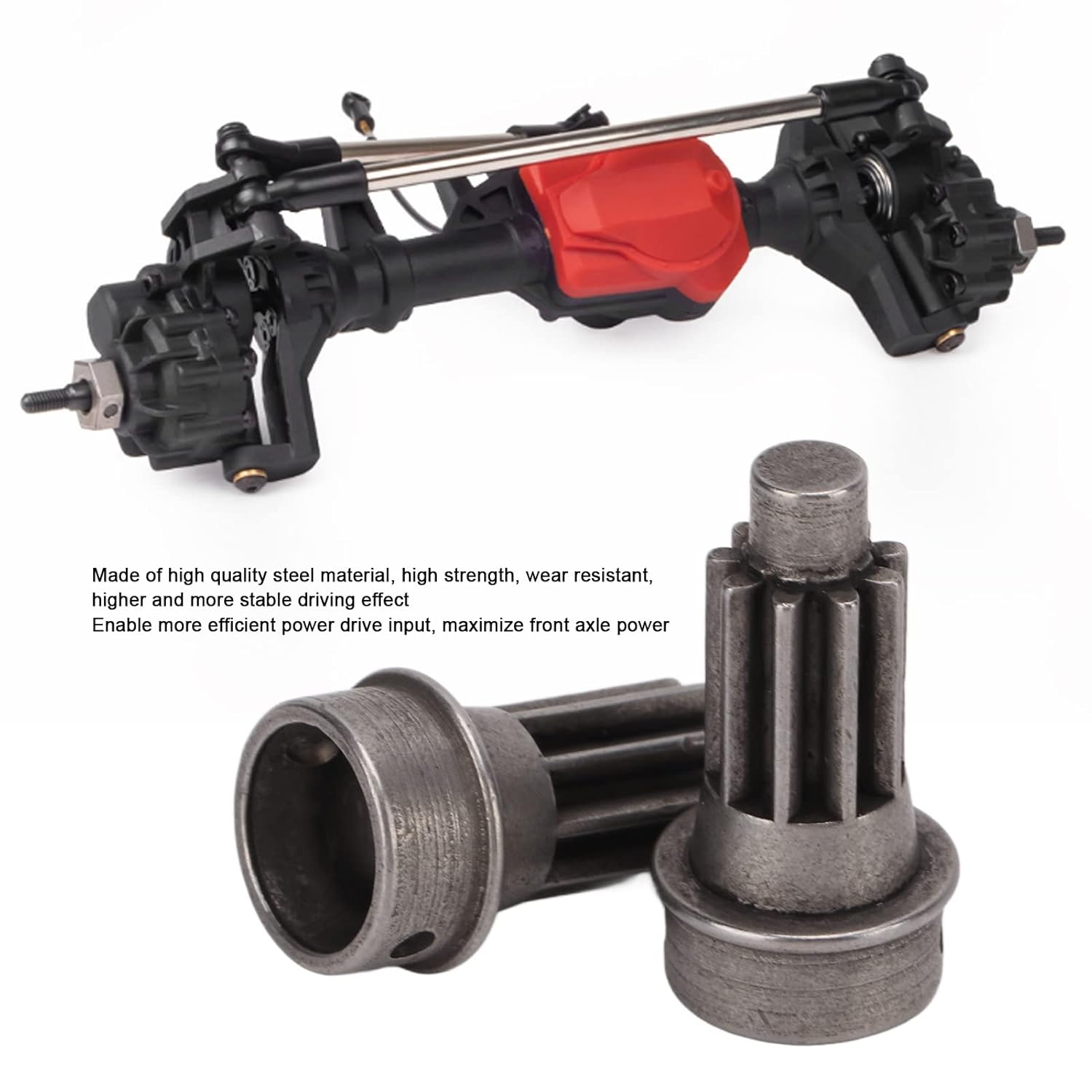 1. Costruzione in acciaio ad alta resistenza: forgiato con materiale in acciaio di alta qualità per resistenza eccezionale, resistenza all'usura e lunga durata nelle applicazioni impegnative delle auto RC. 2. Miglioramento dell'efficienza della trasmissione di potenza: presenta un design dell'ingranaggio di ingresso della trasmissione a portale anteriore che massimizza l'erogazione di potenza all'asse anteriore e migliora le prestazioni complessive della trasmissione. 3. Funzionamento regolare e progettato con precisione: gli ingranaggi sapientemente realizzati garantiscono un movimento di rotolamento fluido e un'elevata tolleranza alla forza, garantendo una dinamica di guida affidabile e coerente. 4. Design compatto e leggero: le dimensioni ridotte e il peso ridotto consentono un'integrazione ottimale della potenza, aumentando le prestazioni dell'asse anteriore e migliorando le prestazioni complessive del veicolo. 5. Sostituzione diretta: progettato per un montaggio e uno smontaggio senza problemi, consente un facile aggiornamento da parti vecchie o danneggiate a componenti più resistenti.