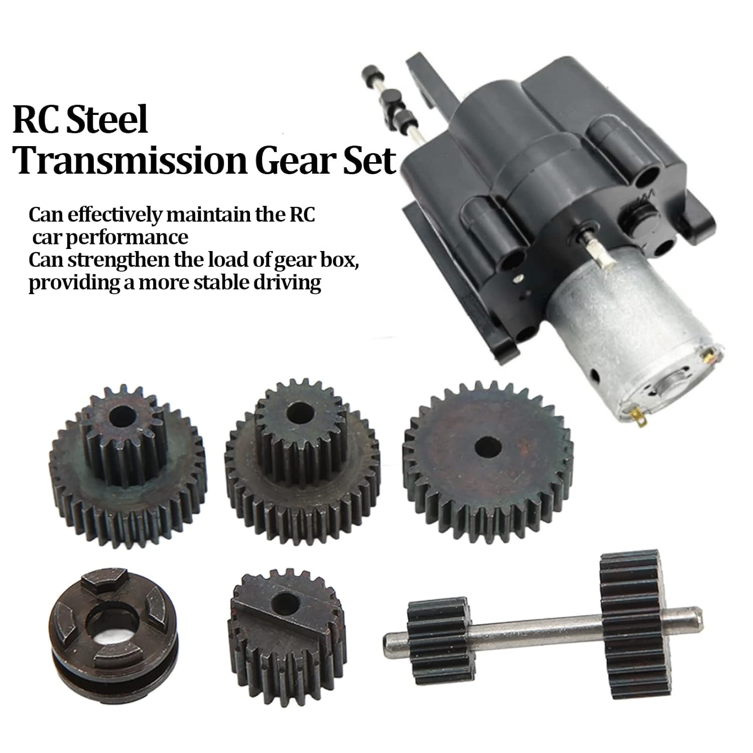 COSTRUZIONE INTERAMENTE IN METALLO: questo set di ingranaggi di trasmissione RC è realizzato in acciaio ad alta resistenza e lega di alluminio, garantendo prestazioni di lunga durata e usura minima in caso di uso intensivo PRESTAZIONI MIGLIORATE: Progettato per mantenere l'efficienza della tua auto telecomandata, questo set di ingranaggi supporta un funzionamento fluido e coerente, mantenendo il tuo veicolo in funzione in modo ottimale STABILITÀ MIGLIORATA: Rinforzando il carico del cambio, questo set di ingranaggi della trasmissione migliora la stabilità, fornendo un'esperienza di guida più equilibrata e controllata per la tua auto RC COMPATIBILITÀ VERSATILE: questo set di ingranaggi è compatibile con il cambio a doppia velocità originale WPL, rendendolo ideale per aggiornamenti o conversioni fai-da-te personalizzate per migliorare le prestazioni del tuo veicolo RC CONTENUTO DELLA CONFEZIONE: Il set include 6 ingranaggi di trasmissione, con accessori e strumenti aggiuntivi richiesti separatamente per l'installazione completa e la personalizzazione del cambio della tua auto RC