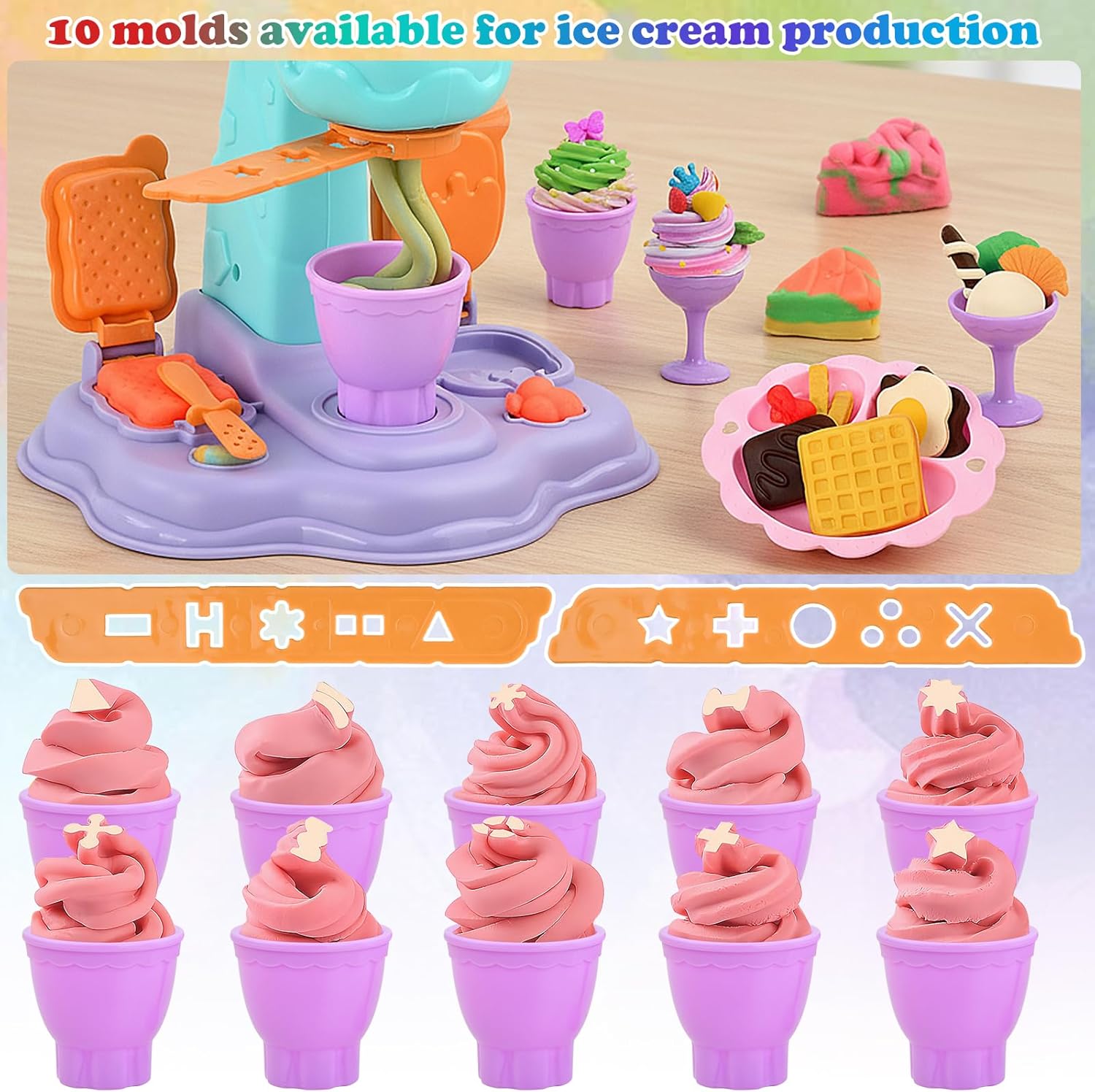 Mondi di gelato creativi: questo ampio set di pasta modellabile contiene oltre 30 accessori tra cui una gelatiera, 12 barattoli di vernice di pasta modellabile, stampi versatili per gelato e torte, strumenti pratici e contenitori per dessert apparentemente reali. Perfetto per infinite avventure di gioco di ruolo e per creare prelibatezze ingannevolmente reali! Plastilina colorata e non tossica: contiene 12 barattoli di plastilina a base di grano dai colori vivaci. Estremamente flessibile, non appiccicoso e può essere utilizzato più e più volte. I colori possono essere miscelati a piacere. Consiglio per la conservazione: chiudete sempre l'impasto nei barattoli per mantenerlo morbido più a lungo. Gelatiera semplice: basta versare l'impasto, girare la maniglia e nascono divertenti creazioni di gelato! La macchina è appositamente progettata per le mani piccole e incoraggia il gioco indipendente. Impara attraverso il gioco: questo set da cucina promuove le capacità motorie, la creatività e l'immaginazione. Ideale per ricostruire situazioni quotidiane e per le prime “esperienze di preparazione” – senza alcun disordine! Regalo perfetto: un set creativo affascinante e di valore educativo per ragazzi e ragazze dai 3 anni in su. Perfetto come regalo di compleanno, per Natale o come souvenir per i piccoli chef e appassionati del gelato!